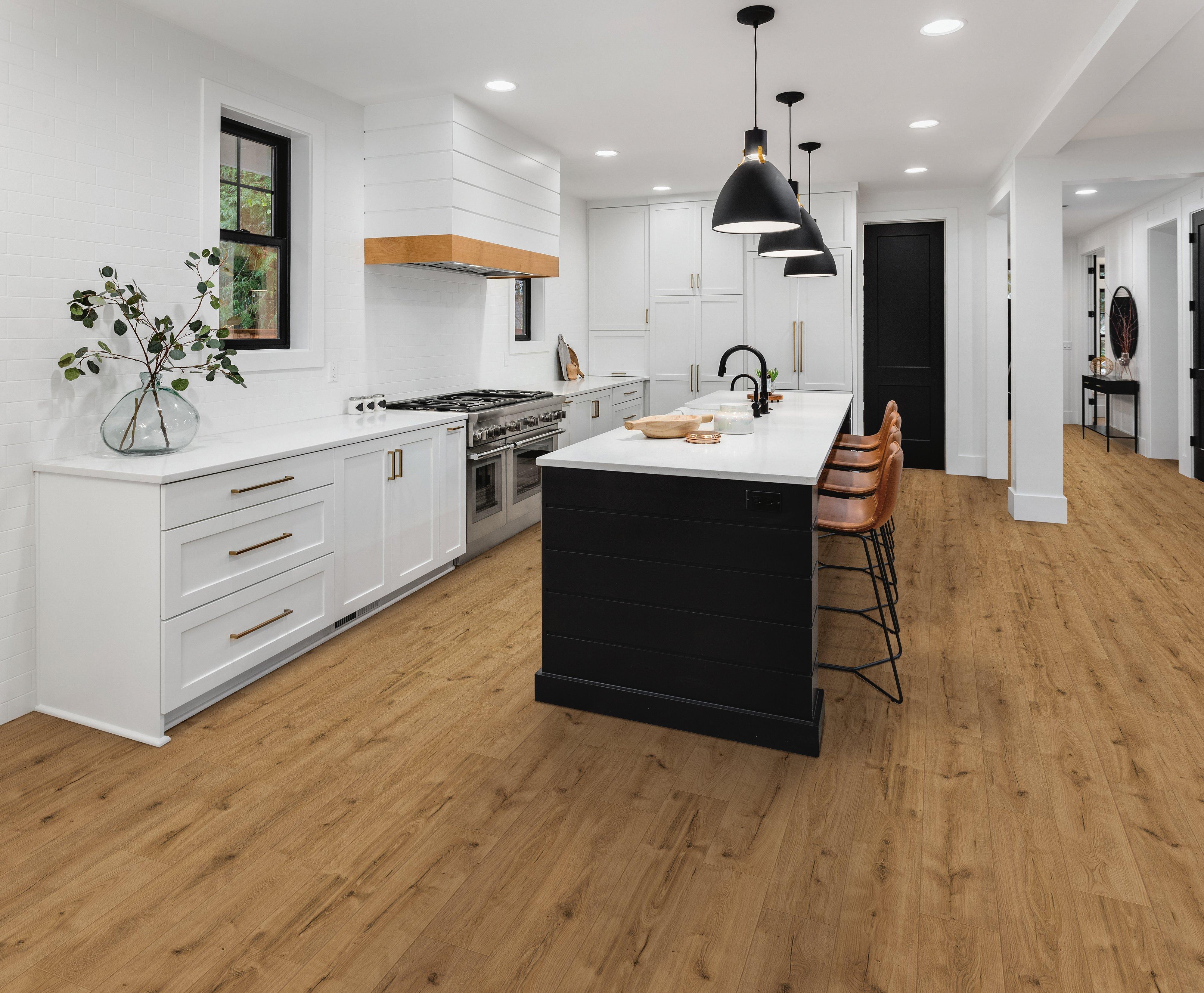 - Install up to 6,400 square feet without the need for transition moldings. No transitions needed in doorways unless the transition is to another type of flooring.