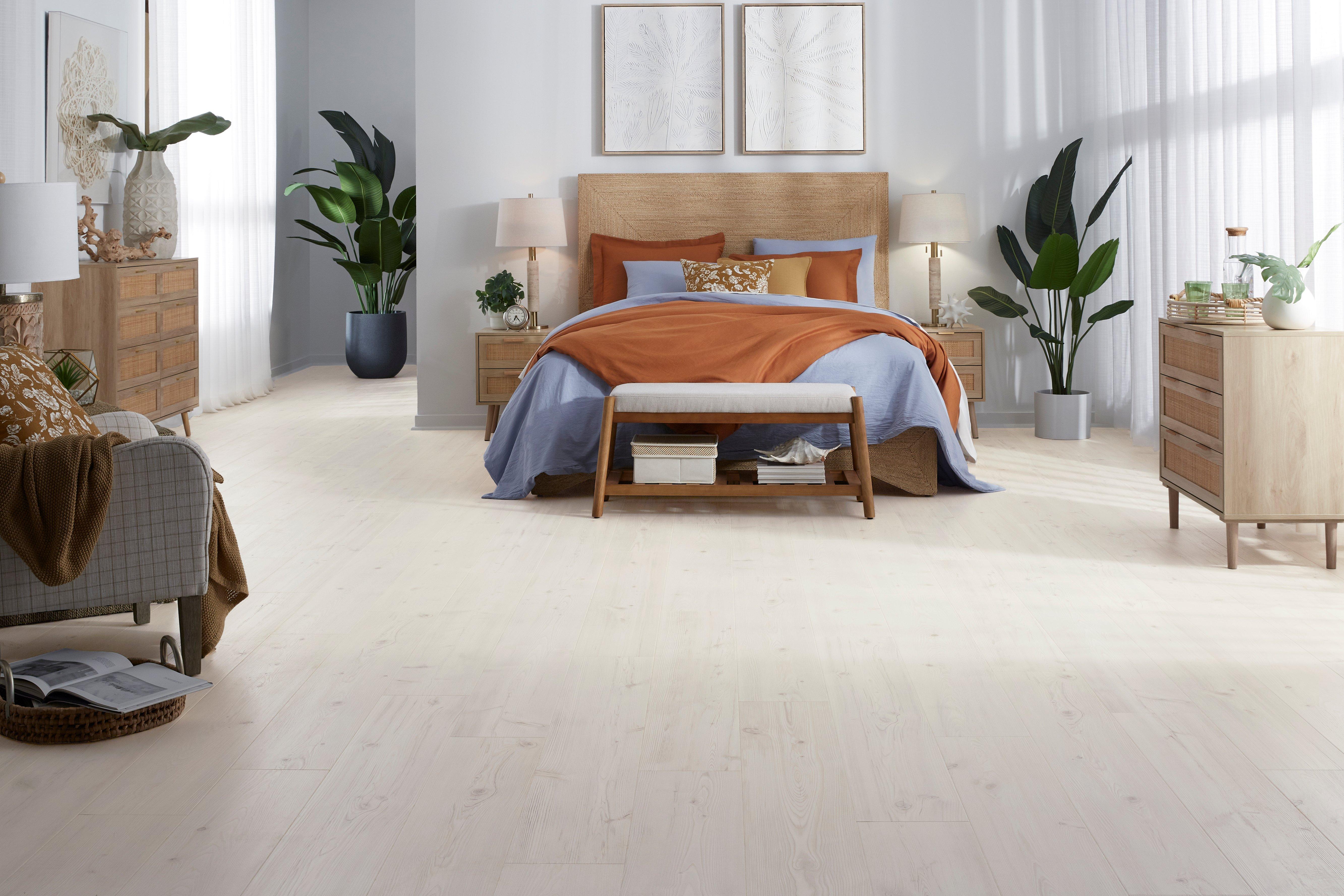 Exclusive to Floor & Decor, 12mm x 8in x 54in AquaGuard Performance Sea Glass Beach Waterproof Laminate Plank looks and feels like authentic hardwood. AquaGuard Performance is waterproof and provides lifetime protection against household spills, splashes and pet accidents. It can be wet mopped or even steam mopped, so you can install it in any room of the house, including full bathrooms, kitchens and basements. The unique waterproof core on AquaGuard Performance is so stable, the product is backed with the best warranty in the industry, lifetime residential and 20-year commercial.