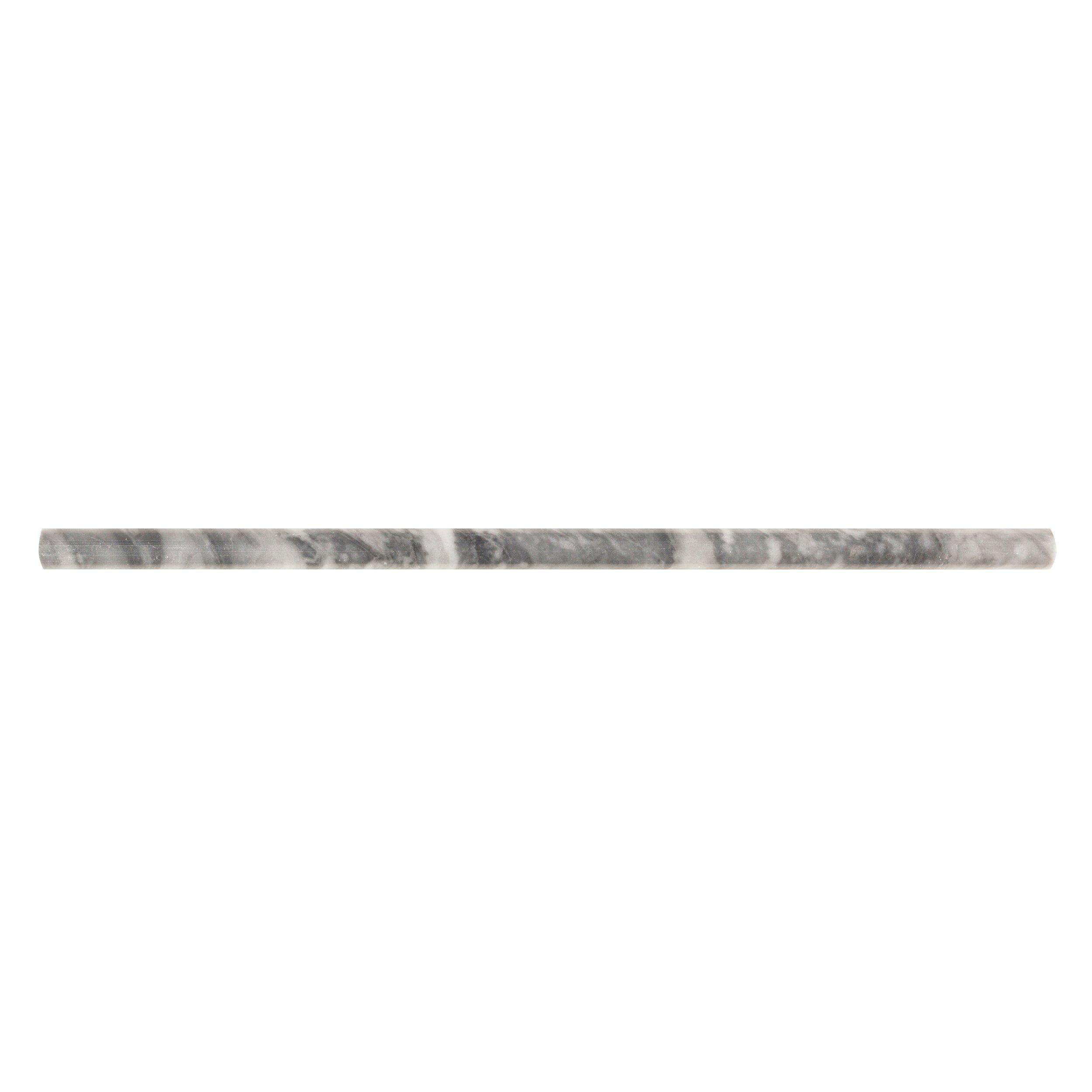 This 1/2 x 12 Bardiglio Marble Pencil in gray reflects light and adds depth, and has a polished or high gloss finish.