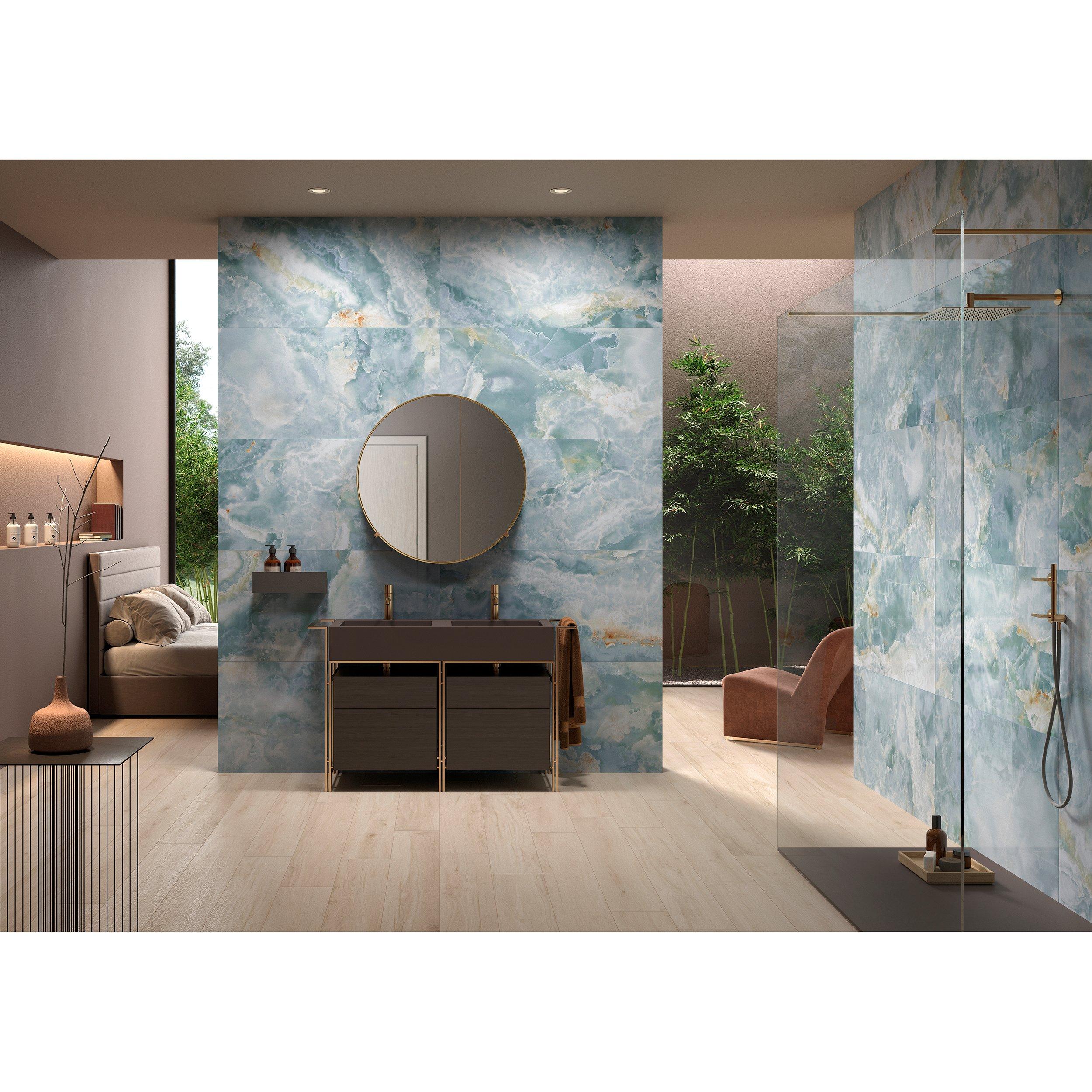 Create a whole new look or enhance your existing style with the easy-to-install Aurelio Azul Porcelain Tile from Floor & Decor’s exclusive Maximo tile. There’s no need to demolish your old tile with this thin tile, you can save time, stress, and mess! Simply install this over your existing tile (or the existing subfloors, too) for a quick update. It’s easy to clean and perfect in areaslike sunrooms, mudrooms, kitchens, or bathrooms!  Not only does it eliminate the time, stress, and mess of traditional tile installation, it offers a stylish and durable solution for any space.