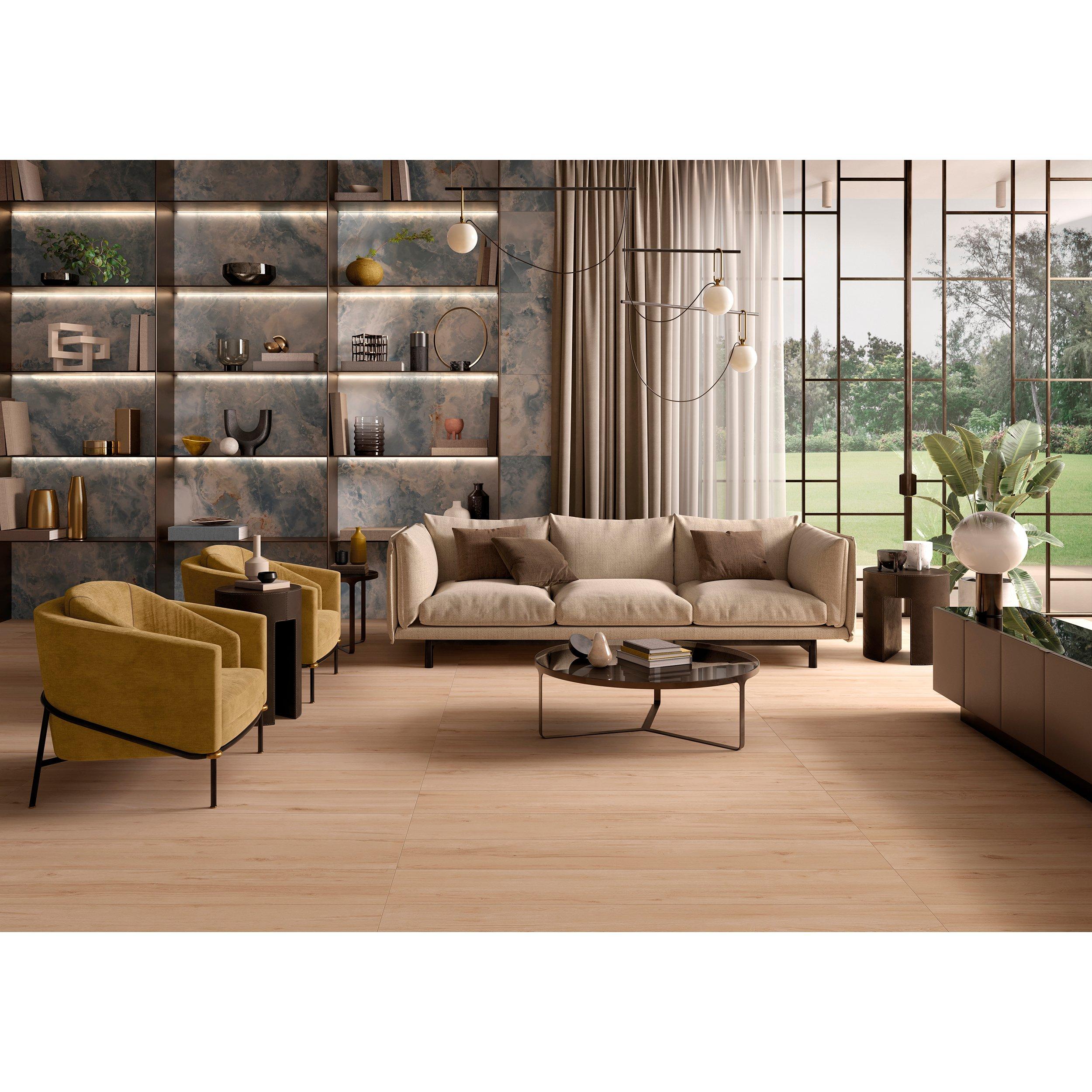 Liven up any room with the Aurelio Azul Porcelain Tile. This 24 x 48 tile features a matte finish. Durable stone-look tile is an affordable alternative to natural stone, and it looks great throughout the house. Plus, you can get the authentic look of stone with an easy-to-maintain surface, as stone-look tile is waterproof and doesn’t require sealing.