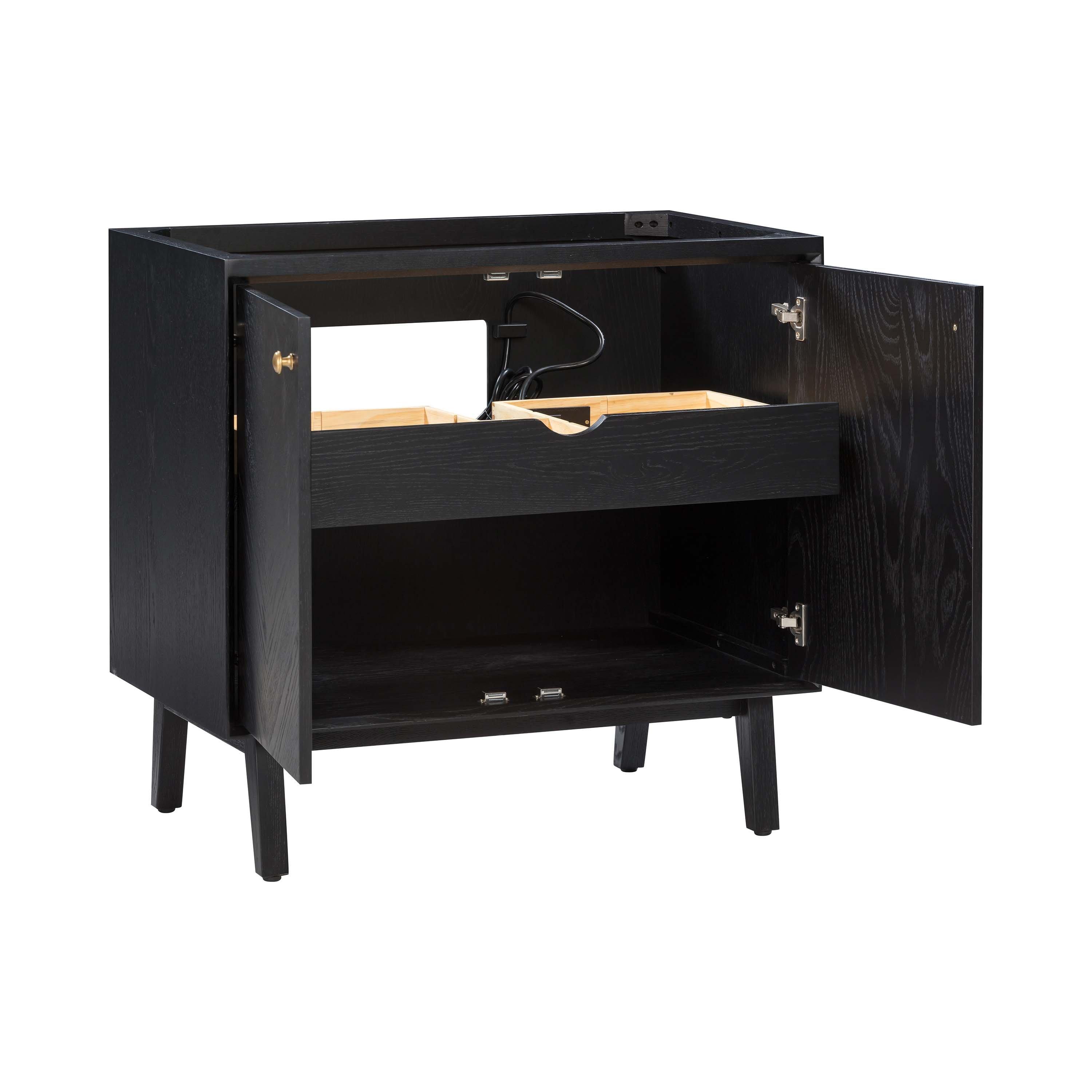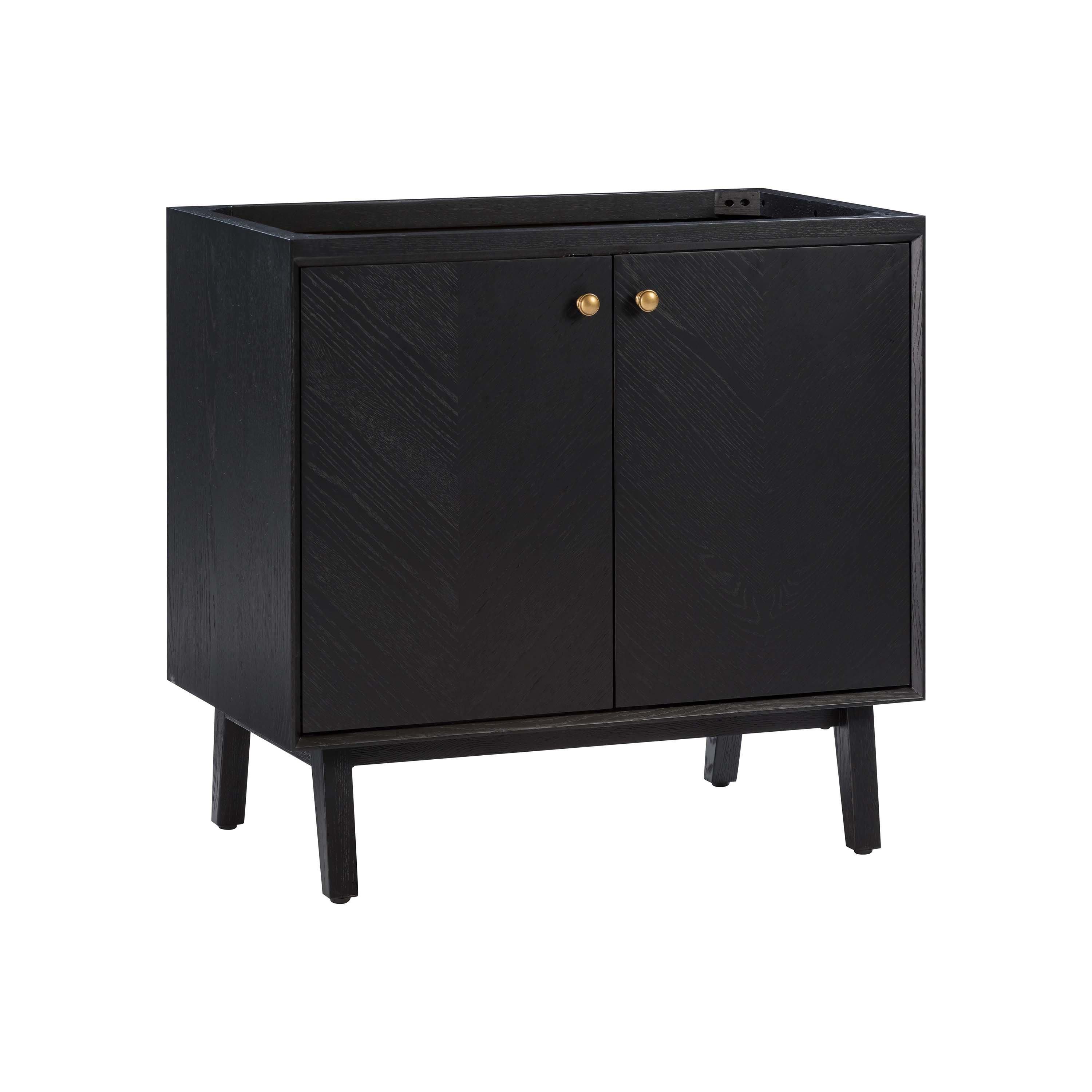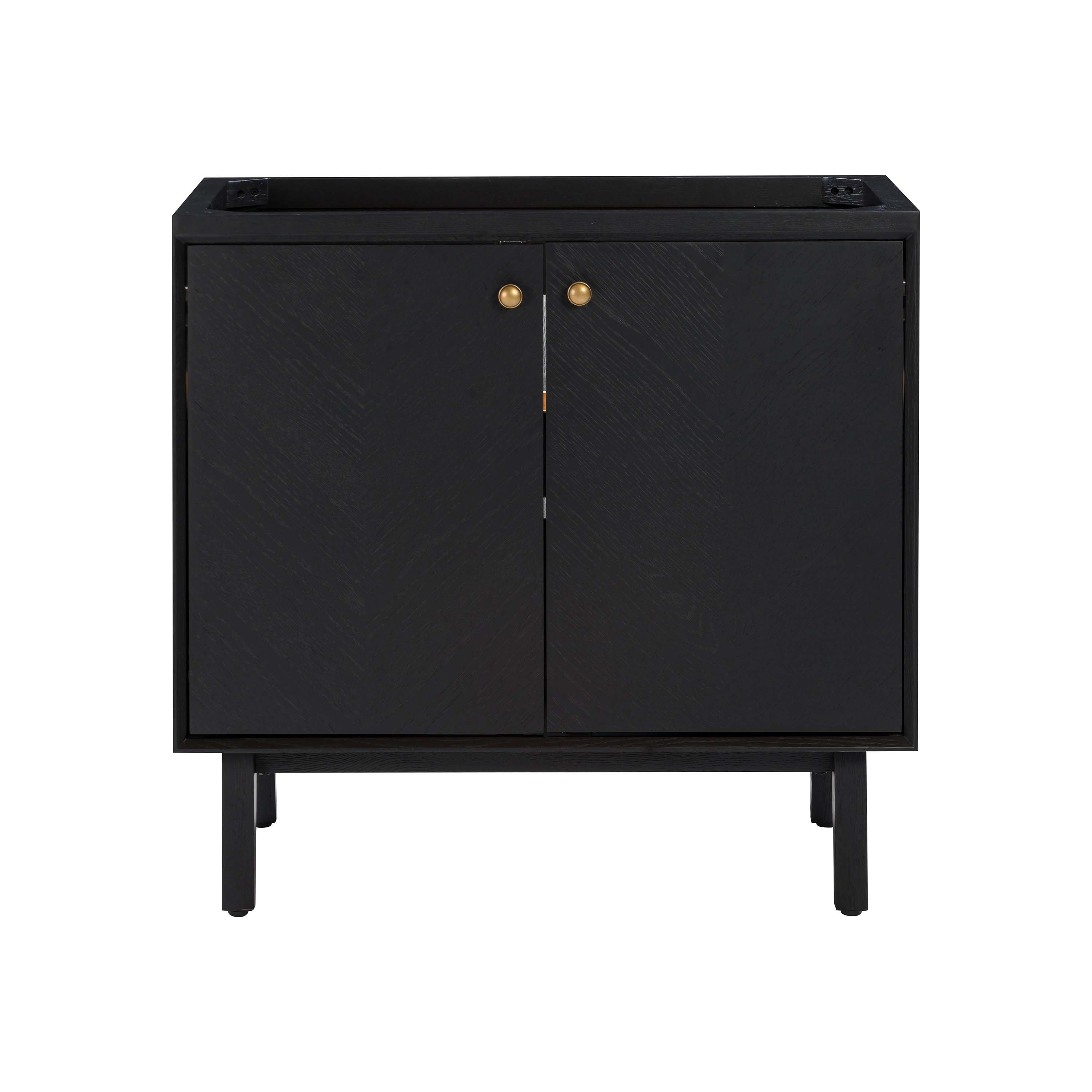 Complete your bathroom with the beautiful Adrian 36 in. Black Oak Single Vanity Base. This freestanding features durable solid wood, mdf cabinets in stunning black with matte gold hardware. The Adrian 36 in. Black Oak Single Vanity Base is a versatile choice to customize multiple bathroom settings.