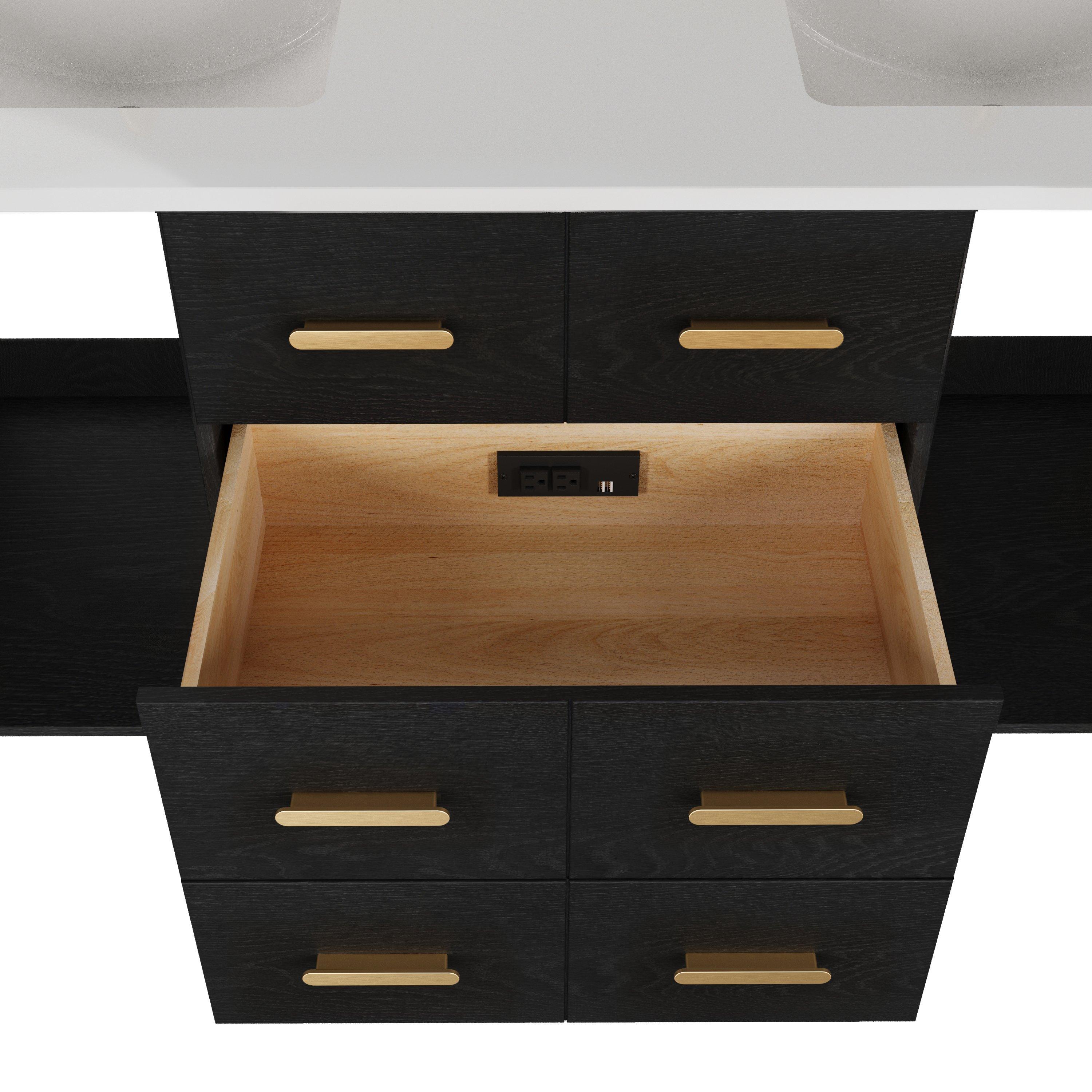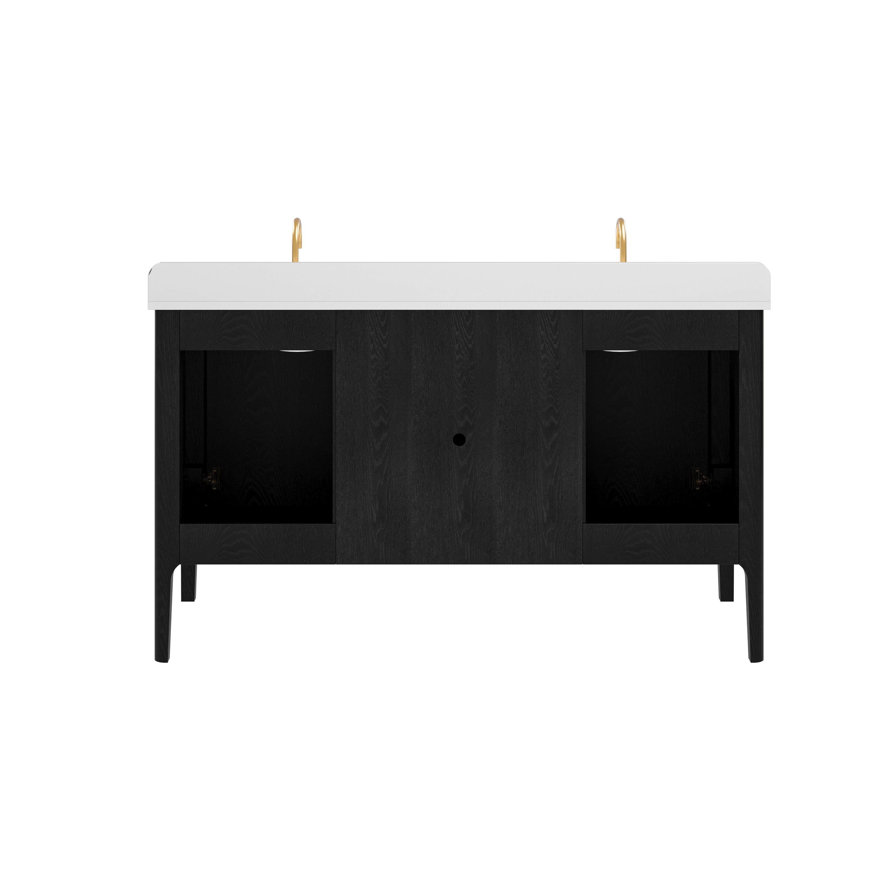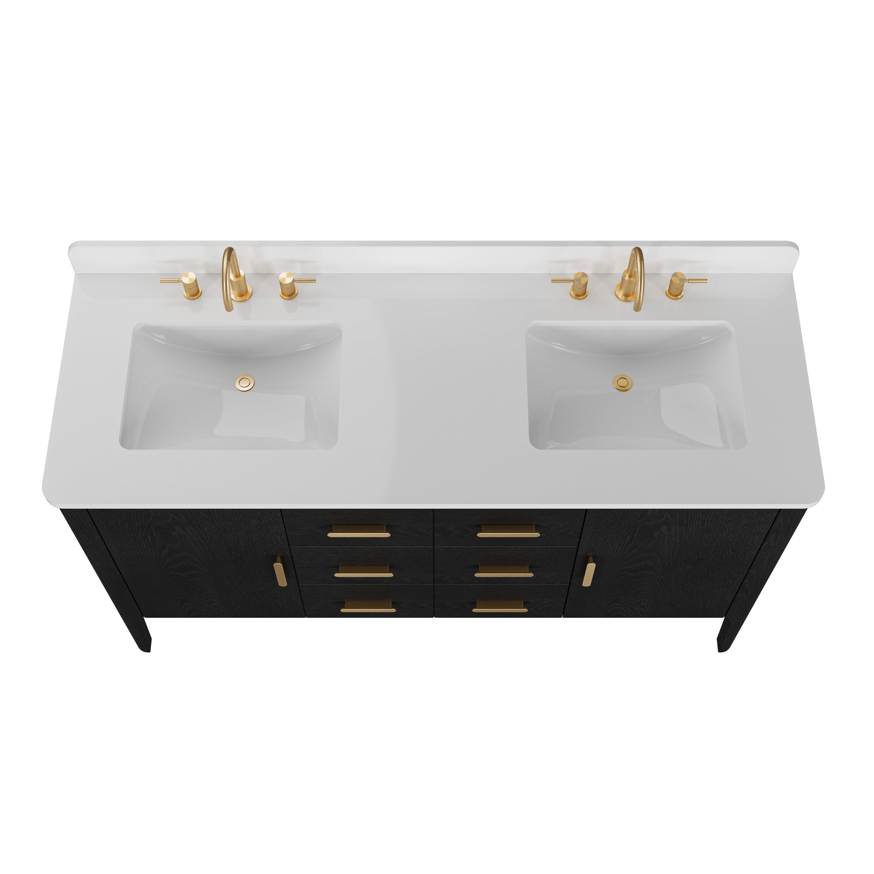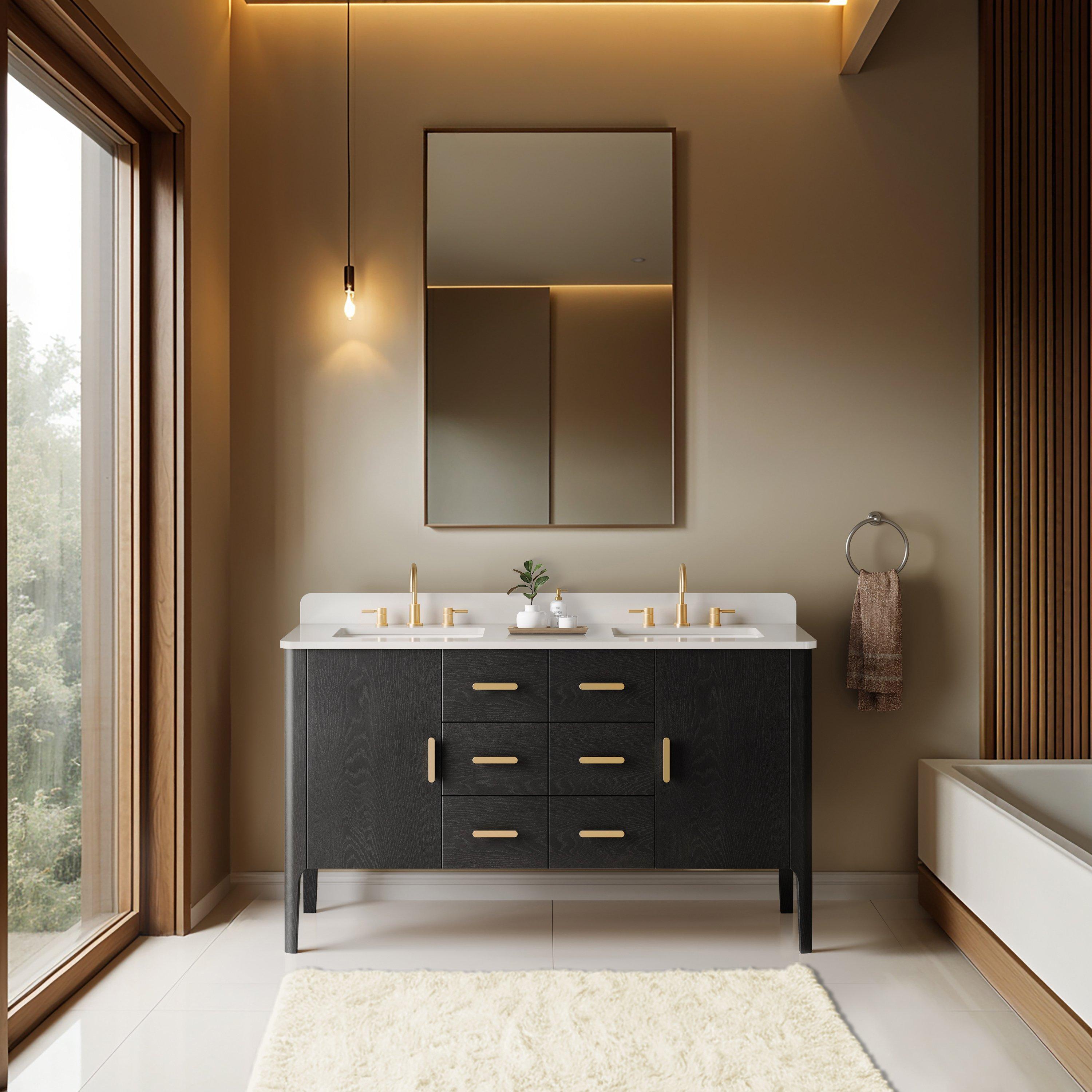 Complete your bathroom with the beautiful Aspen 61 in. Black Vanity with Quartz Top. This freestanding features durable solid wood, mdf cabinets in stunning black with a white quartz vanity top and matte gold hardware. A charming double undermount sink in brilliant white is included. The Aspen 61 in. Black Vanity with Quartz Top is a versatile choice to customize multiple bathroom settings.
