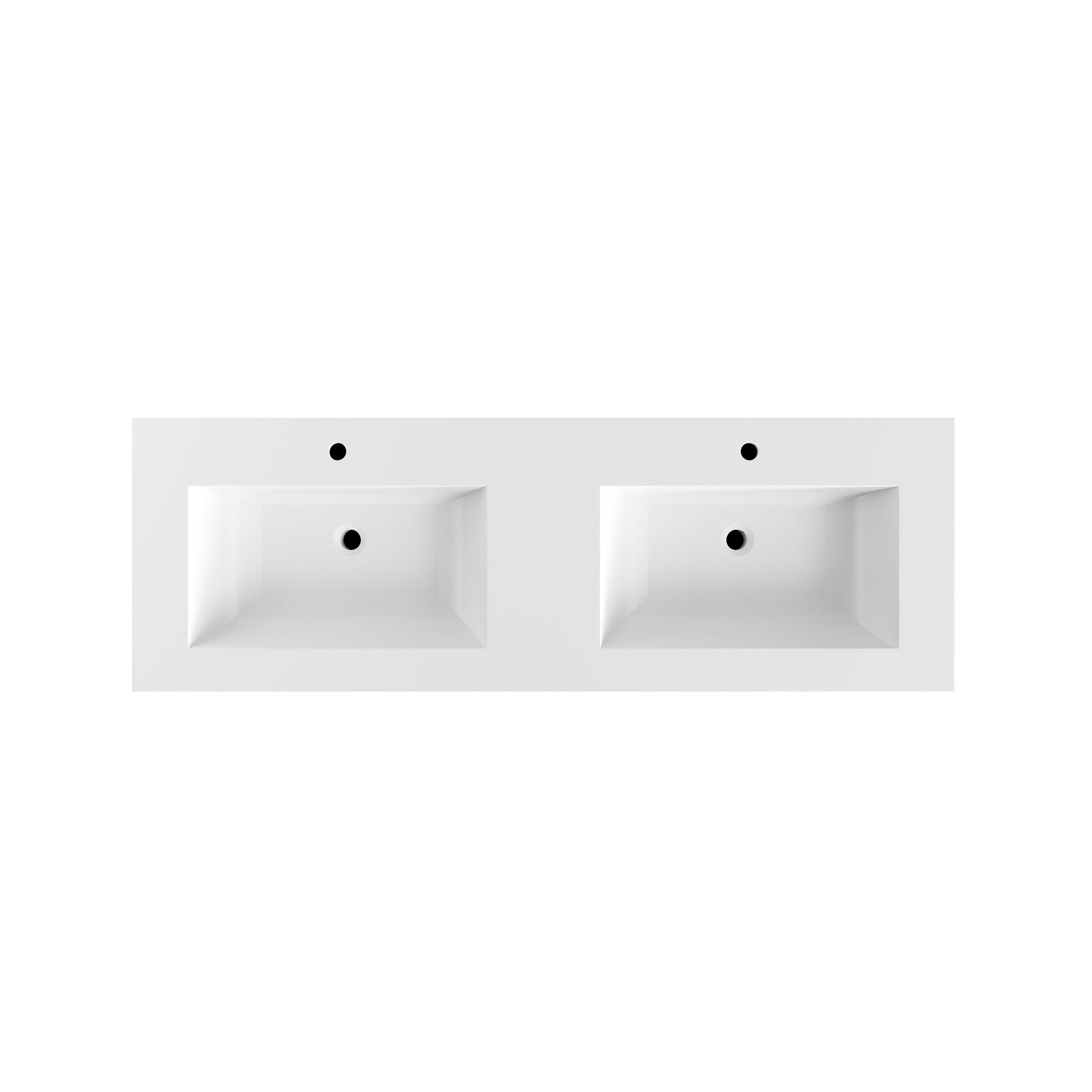 Complete your bathroom with the beautiful Brookwood 60 in. White Vanity with Engineered Stone Top. This wall mounted or freestanding features durable mdf cabinets in stunning white with a white composite vanity top and brushed n/a hardware. A charming double wall mounted sink in brilliant white is included. The Brookwood 60 in. White Vanity with Engineered Stone Top is a versatile choice to customize multiple bathroom settings.