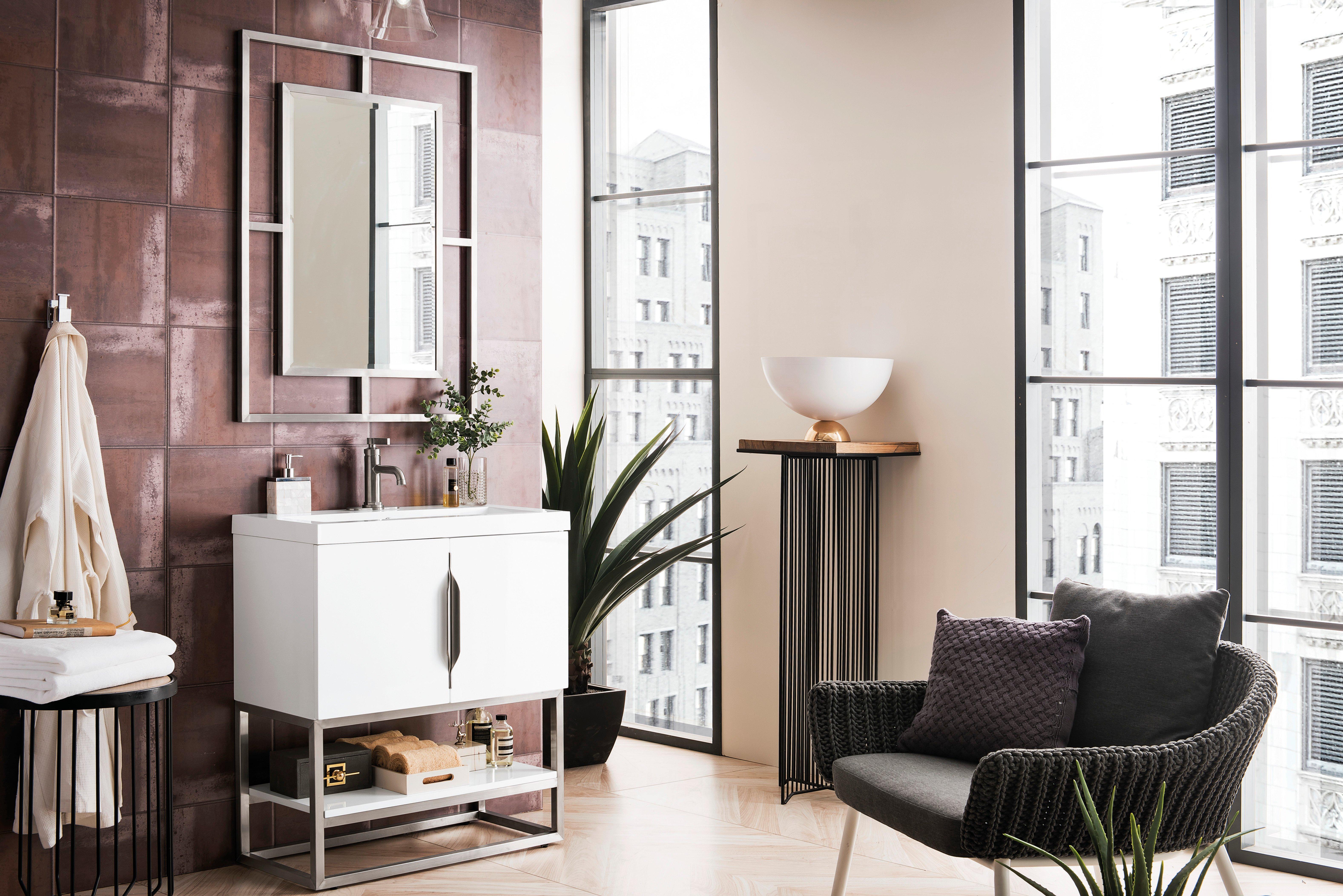 Complete your bathroom with the beautiful Columbia 31.5 in. Glossy White and Brushed Nickel Vanity with Glossy White Top. This freestanding features durable solid wood, plywood cabinets in stunning white with a white manufactured stone vanity top and brushed silver hardware. A charming single integral sink in brilliant white is included. The Columbia 31.5 in. Glossy White and Brushed Nickel Vanity with Glossy White Top is a versatile choice to customize multiple bathroom settings.