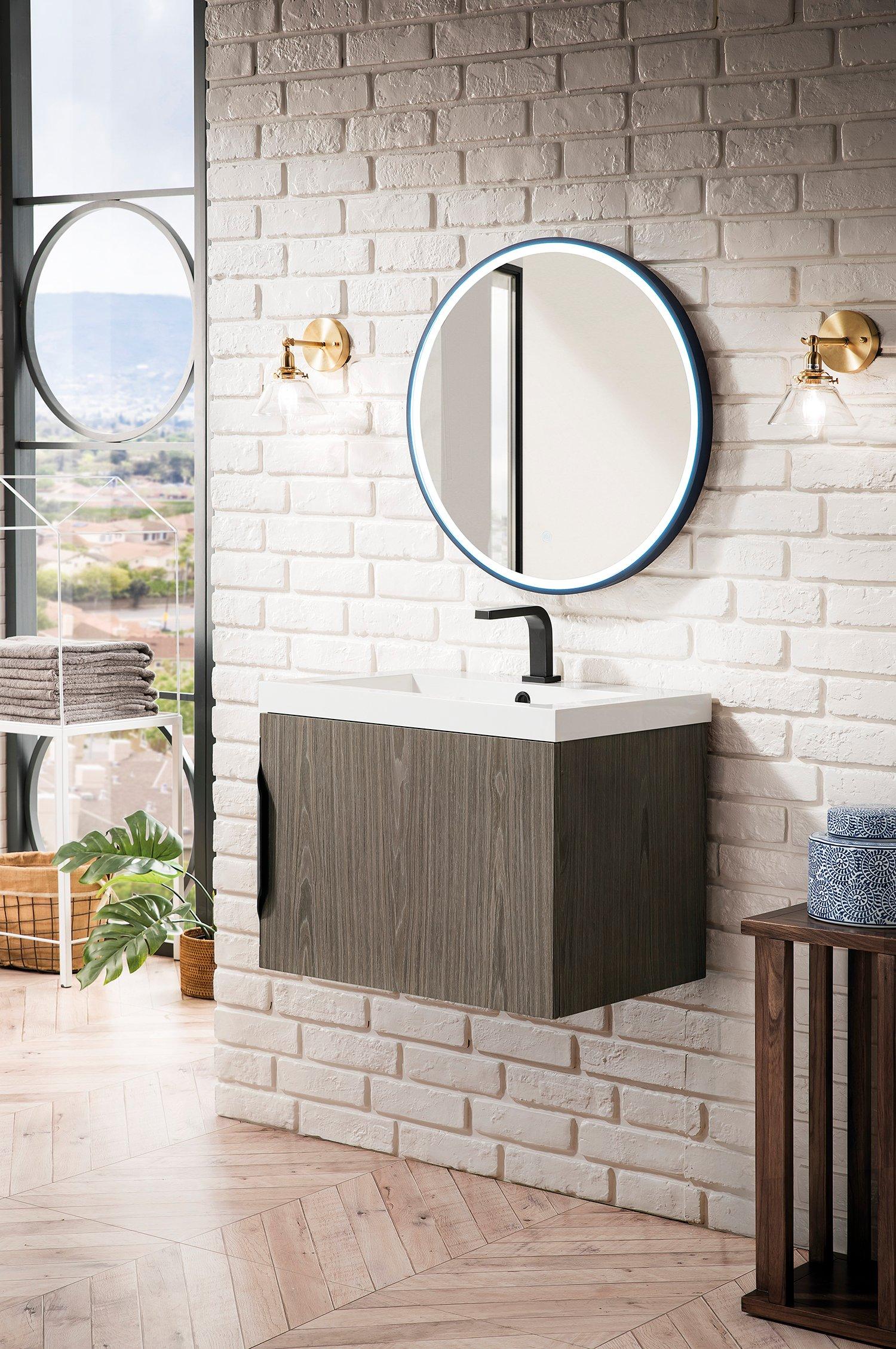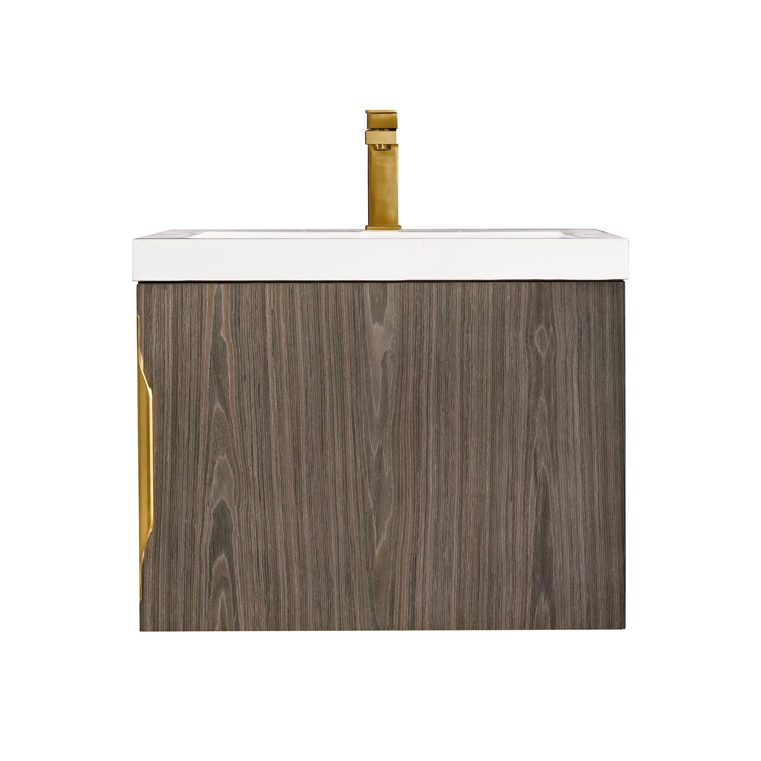 Tailor the look of your bathroom with the Columbia 24 in. Ash Gray Vanity with Glossy White Top featuring gorgeous solid wood, veneer in gray with 1 doors, 0 drawers, and 1 shelves. This piece is completed with beautiful brushed silver hardware and a single integral white sink. The Columbia 24 in. Ash Gray Vanity with Glossy White Top is a stunning addition to any bathroom setting.
