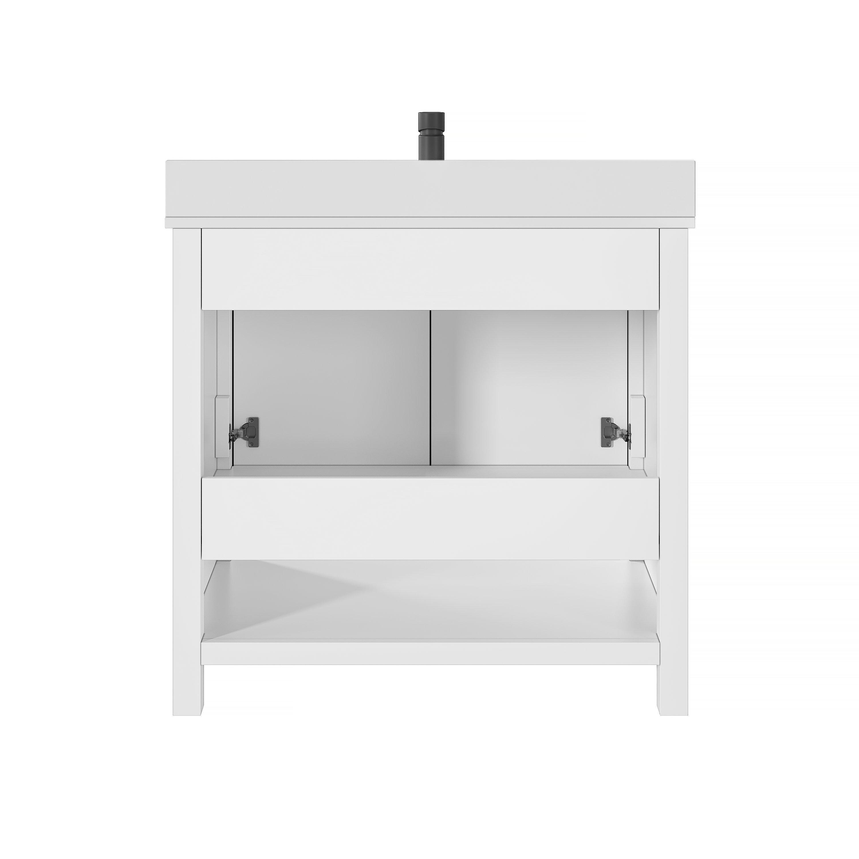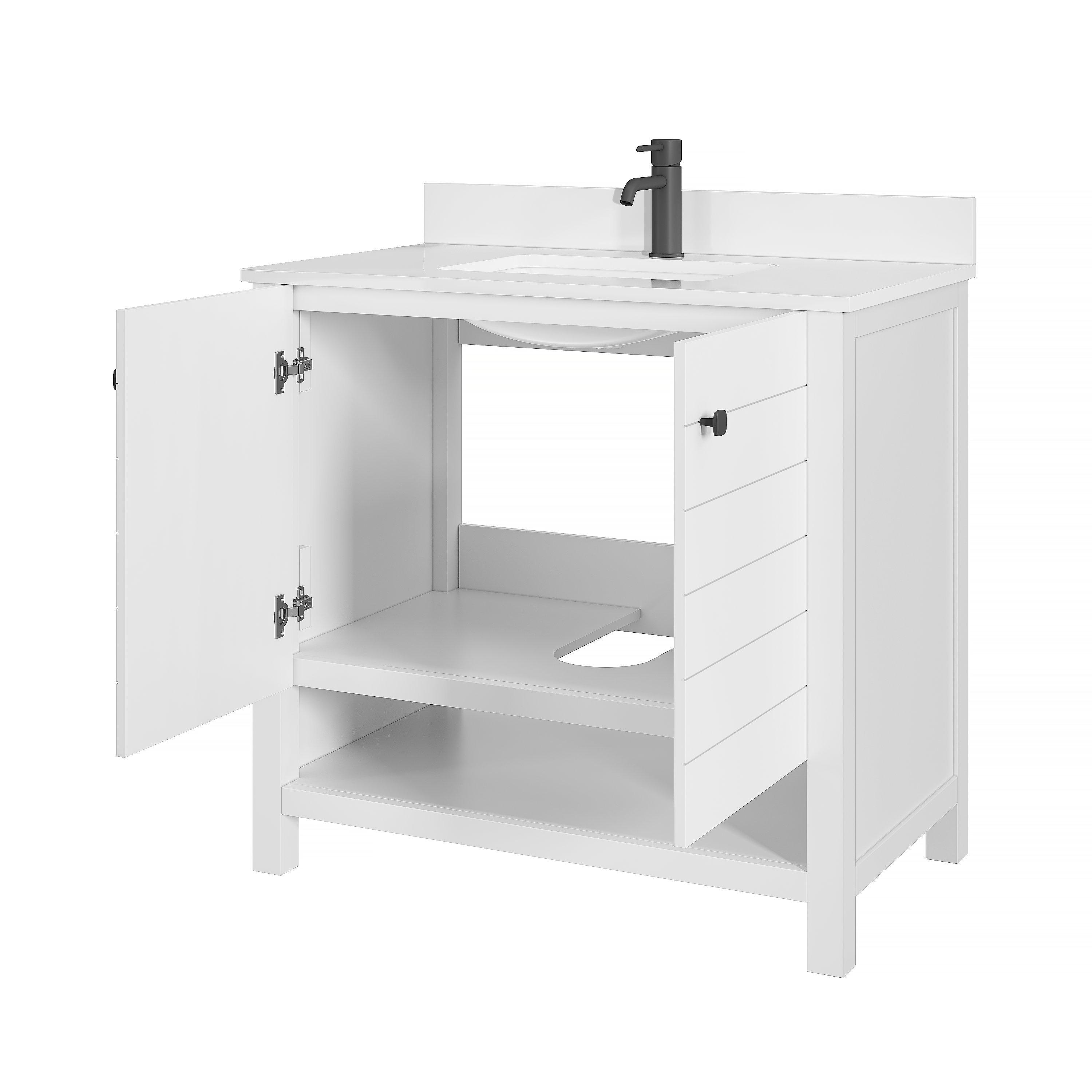 With its white finish and thoughtful design, the Dover vanity is both practical and visually appealing. Transform your bathroom into a serene retreat with this high-quality piece.