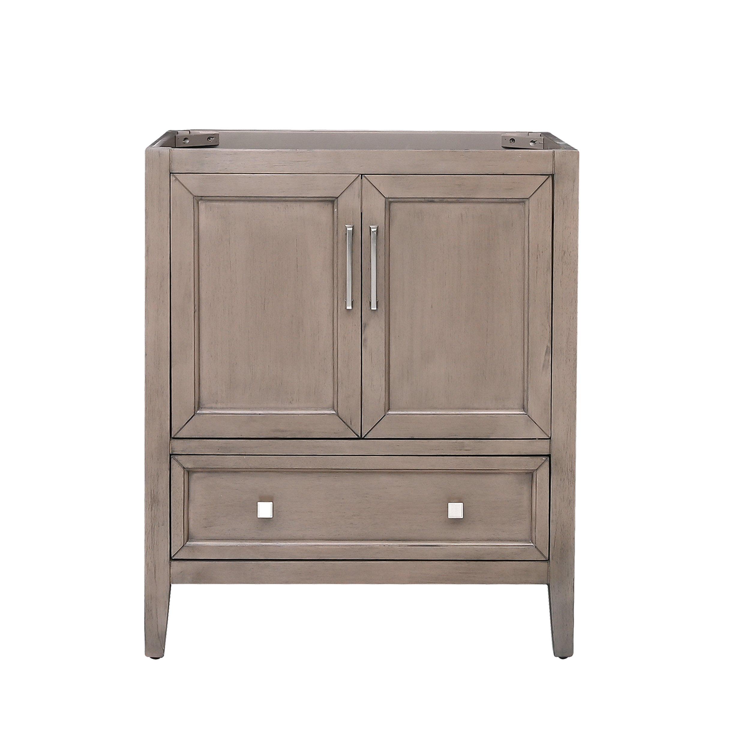 Tailor the look of your bathroom with the Everly 30 in. Gray Oak Vanity Base featuring gorgeous solid wood, mdf in brown with 2 doors, 1 drawers, and 1 shelves. This piece is completed with beautiful brushed nickel hardware. The Everly 30 in. Gray Oak Vanity Base is a stunning addition to any bathroom setting.