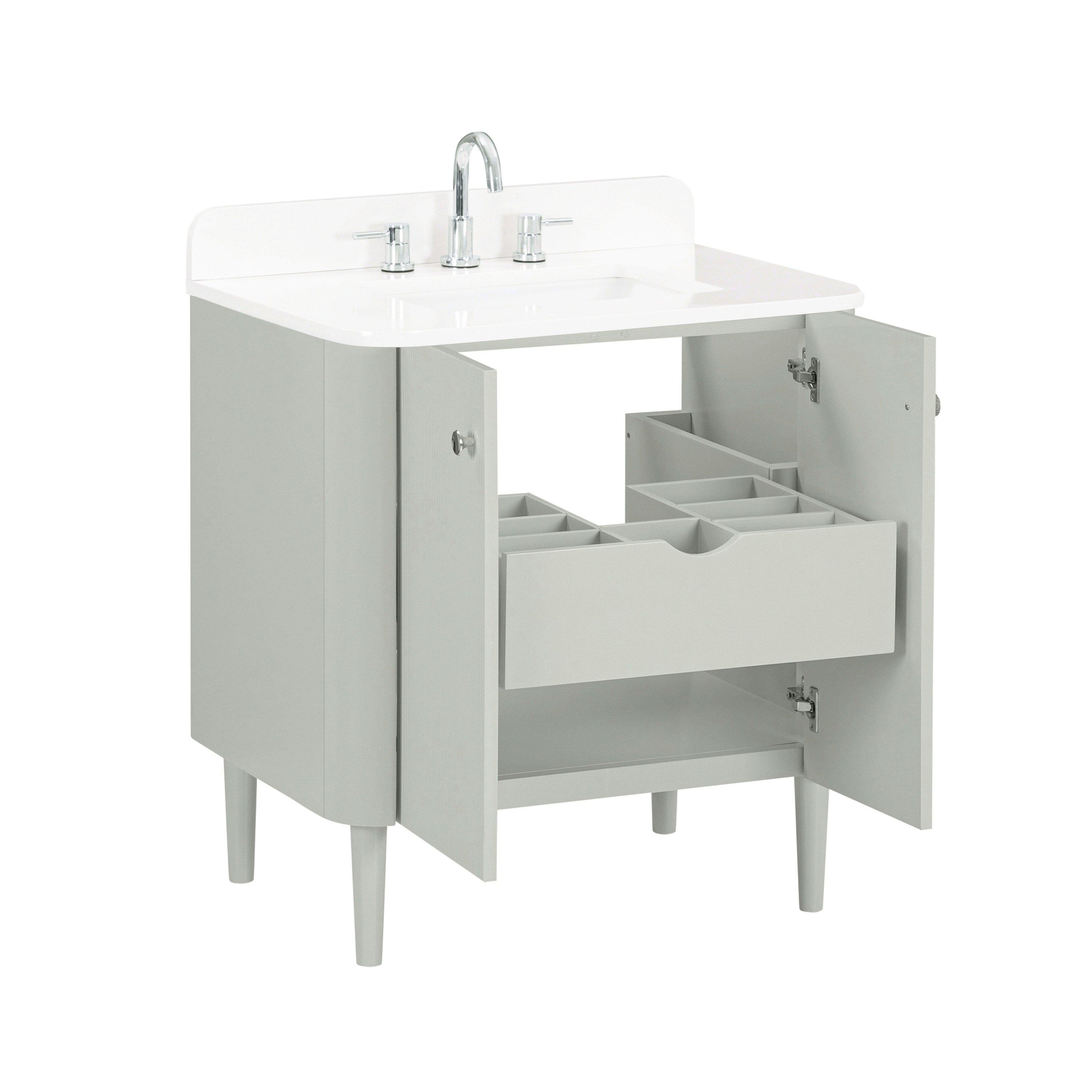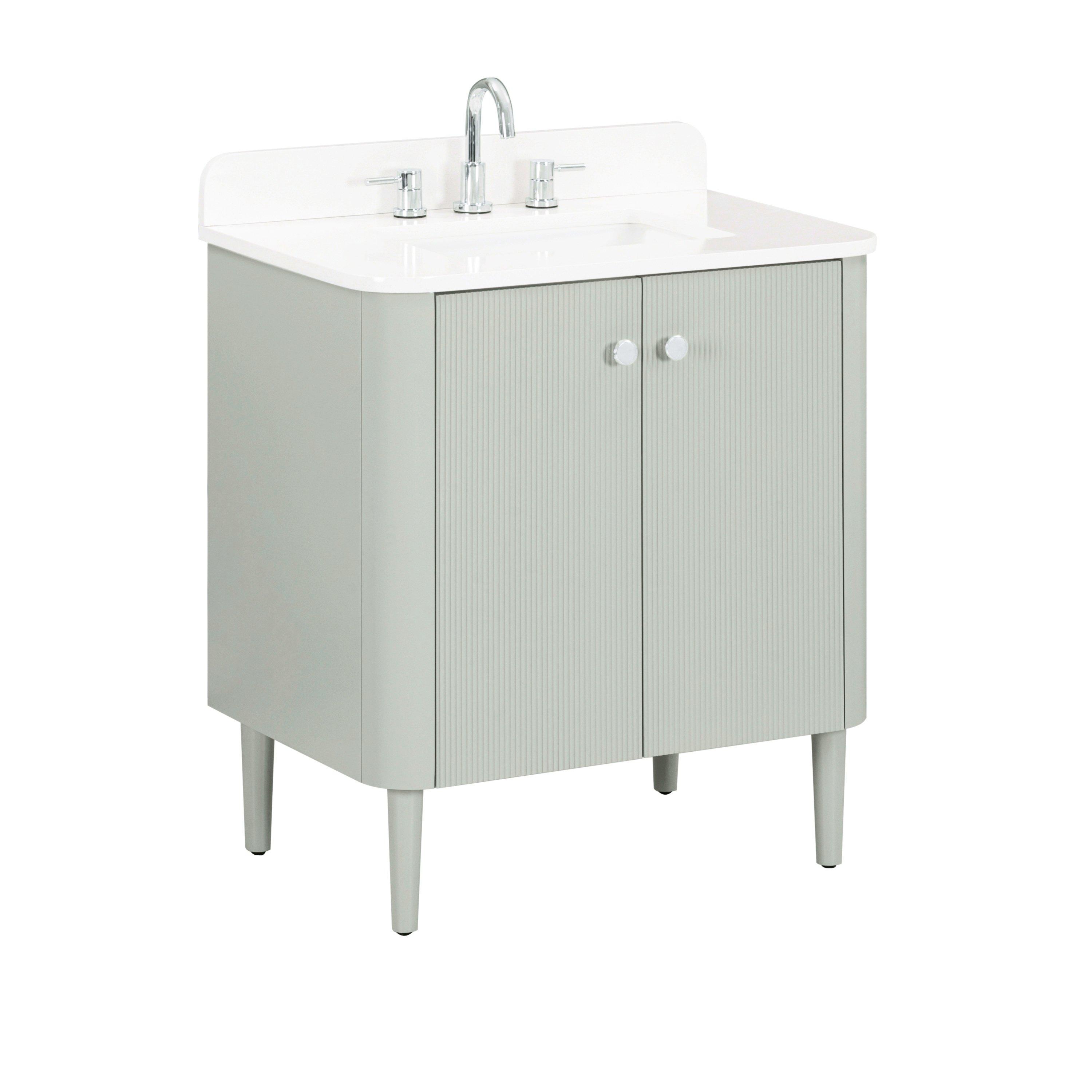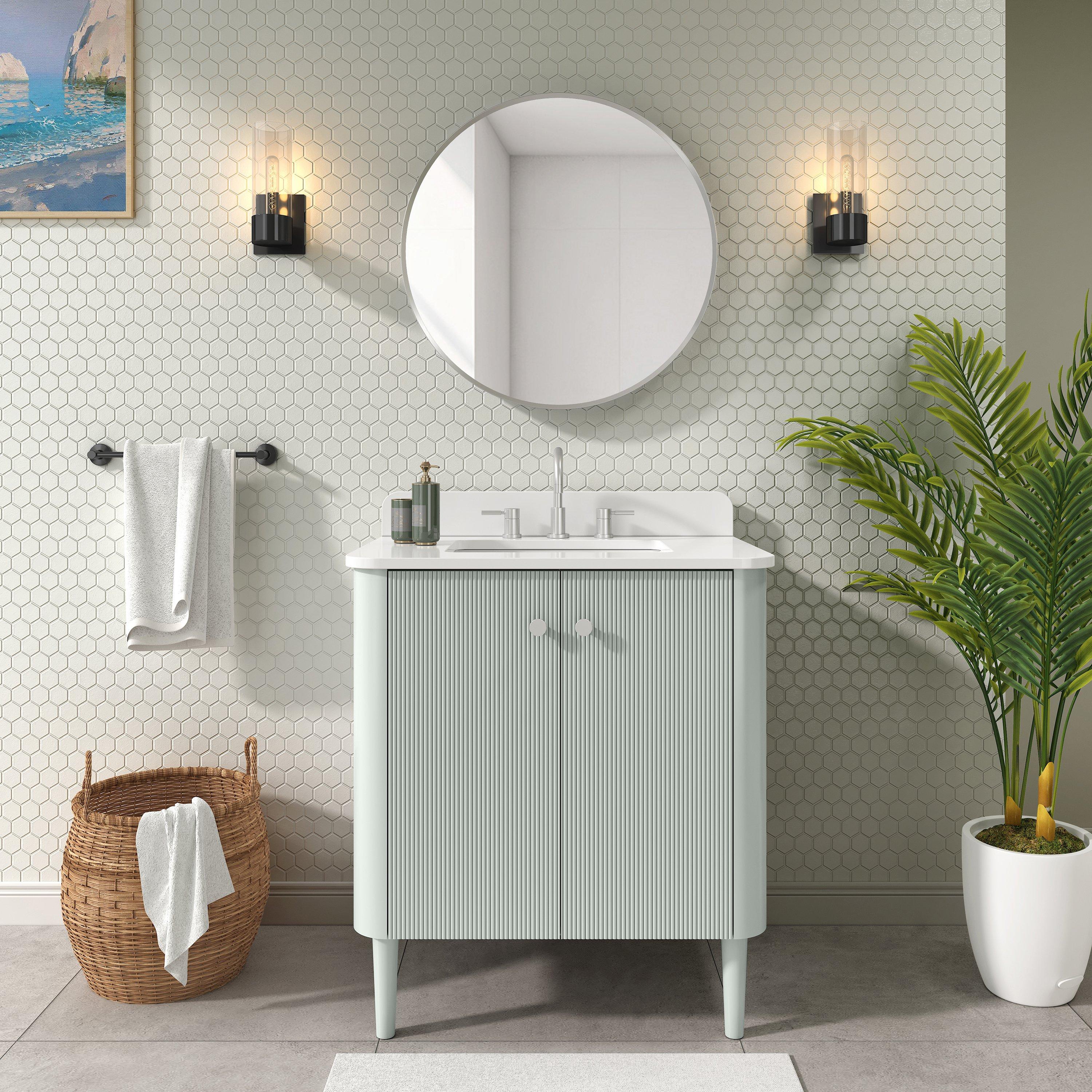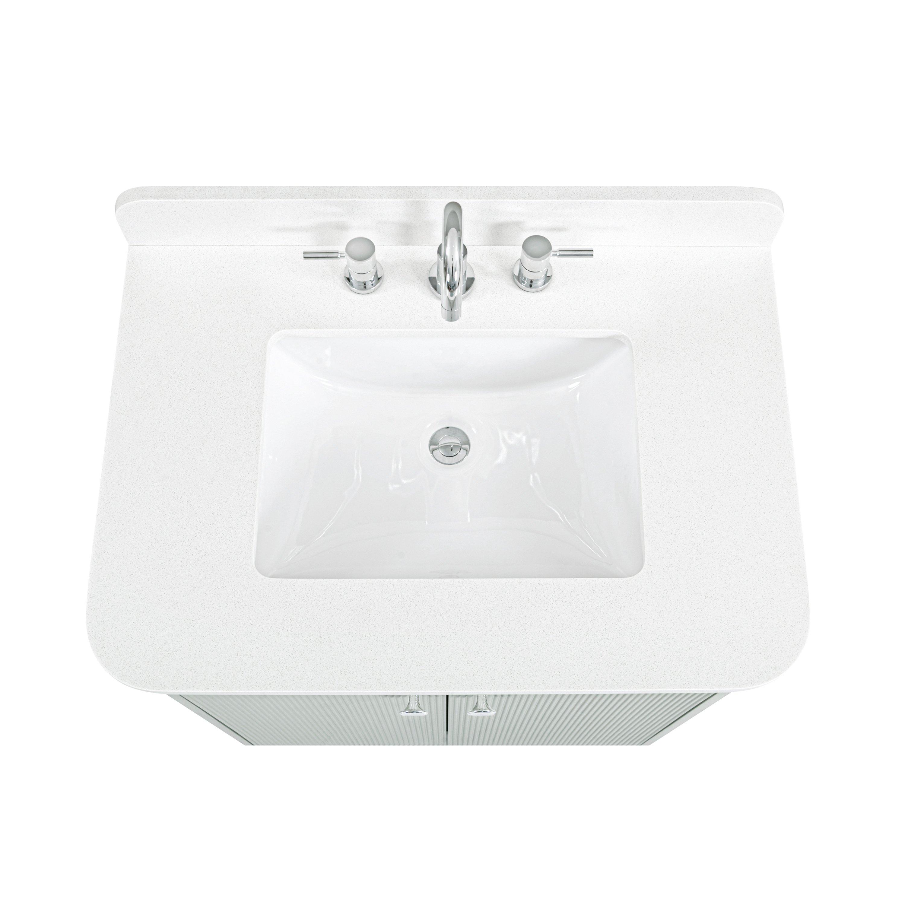 Tailor the look of your bathroom with the Hayden 31 in. Sage Green Vanity with Enigneered Stone Top featuring gorgeous solid wood, mdf in green with 2 doors, 1 drawers, and 0 shelves. This piece is completed with beautiful polished chrome hardware and a single undermount white sink. The Hayden 31 in. Sage Green Vanity with Enigneered Stone Top is a stunning addition to any bathroom setting.