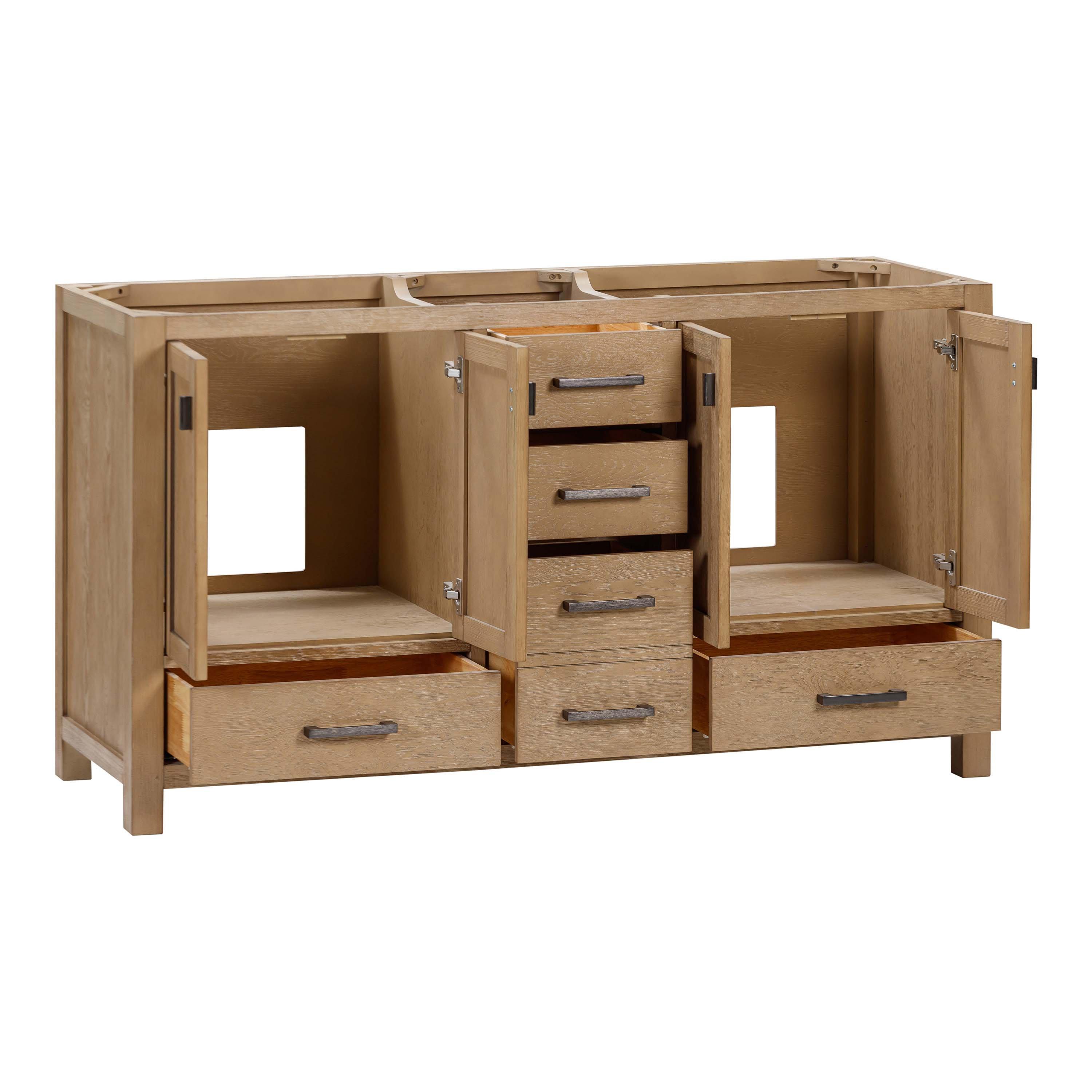 Complete your bathroom with the beautiful Kent 60 in. Natural Oak Double Vanity Base. This freestanding features durable solid wood, mdf cabinets in stunning natural with matte black bronze hardware. The Kent 60 in. Natural Oak Double Vanity Base is a versatile choice to customize multiple bathroom settings.