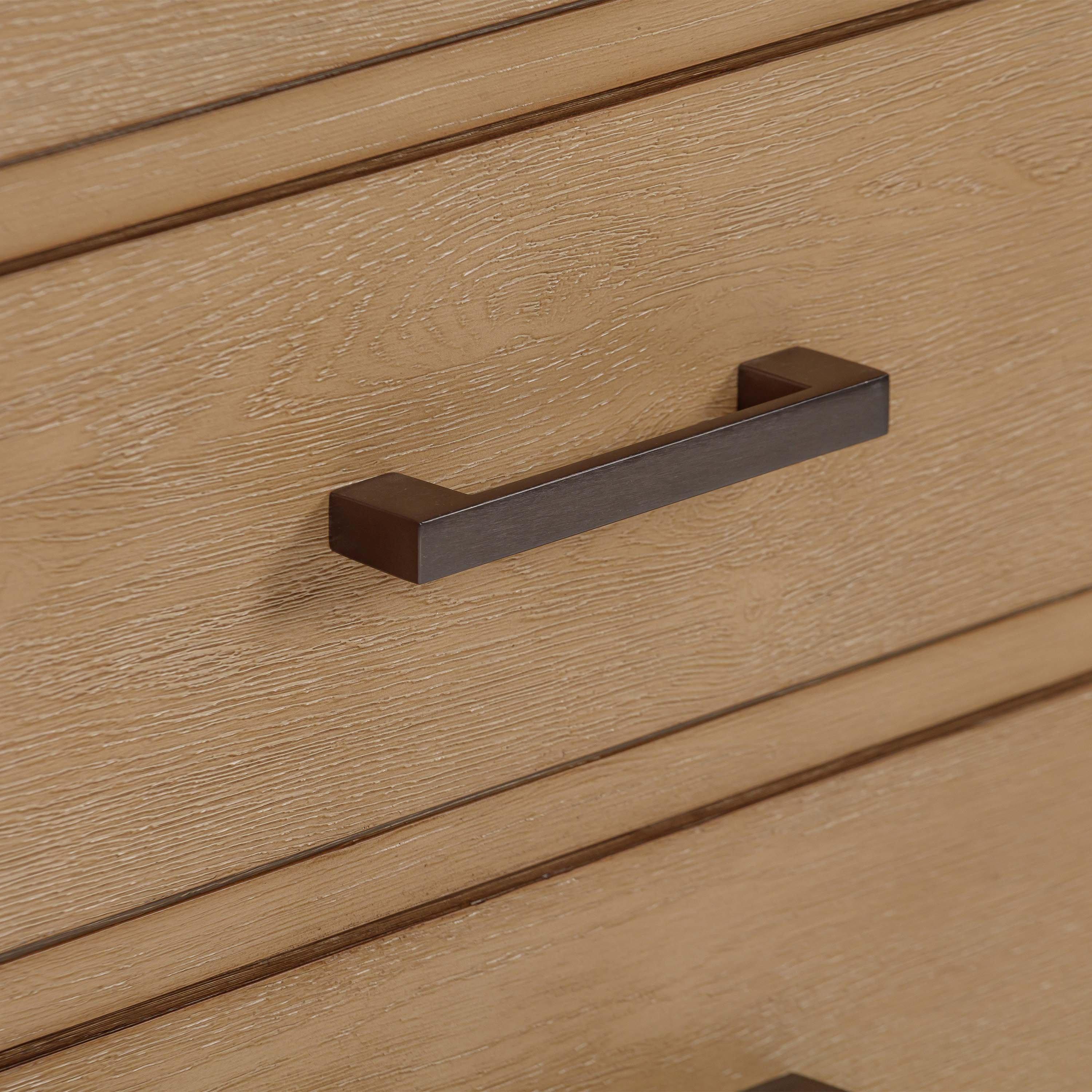 Tailor the look of your bathroom with the Kent 72 in. Natural Oak Double Vanity Base featuring gorgeous solid wood, mdf in natural with 4 doors, 5 drawers, and 0 shelves. This piece is completed with beautiful matte black bronze hardware. The Kent 72 in. Natural Oak Double Vanity Base is a stunning addition to any bathroom setting.