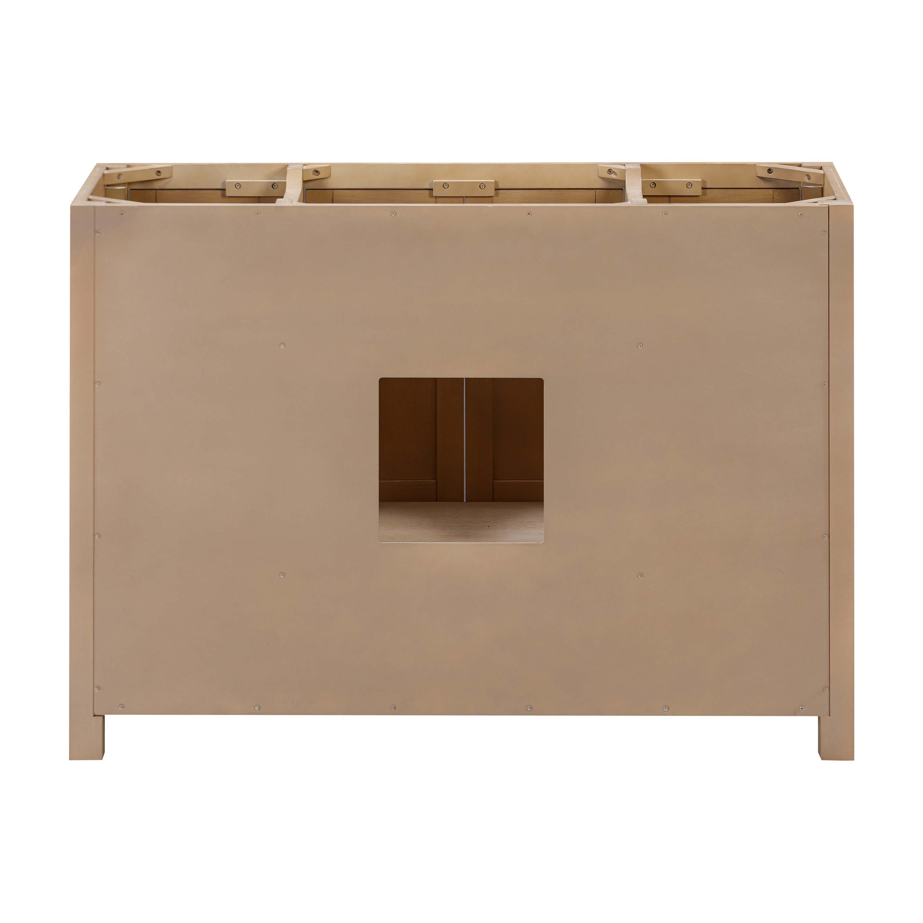 Tailor the look of your bathroom with the Kent 48 in. Natural Oak Single Vanity Base featuring gorgeous solid wood, mdf in natural with 4 doors, 3 drawers, and n/a shelves. This piece is completed with beautiful matte black bronze hardware. The Kent 48 in. Natural Oak Single Vanity Base is a stunning addition to any bathroom setting.