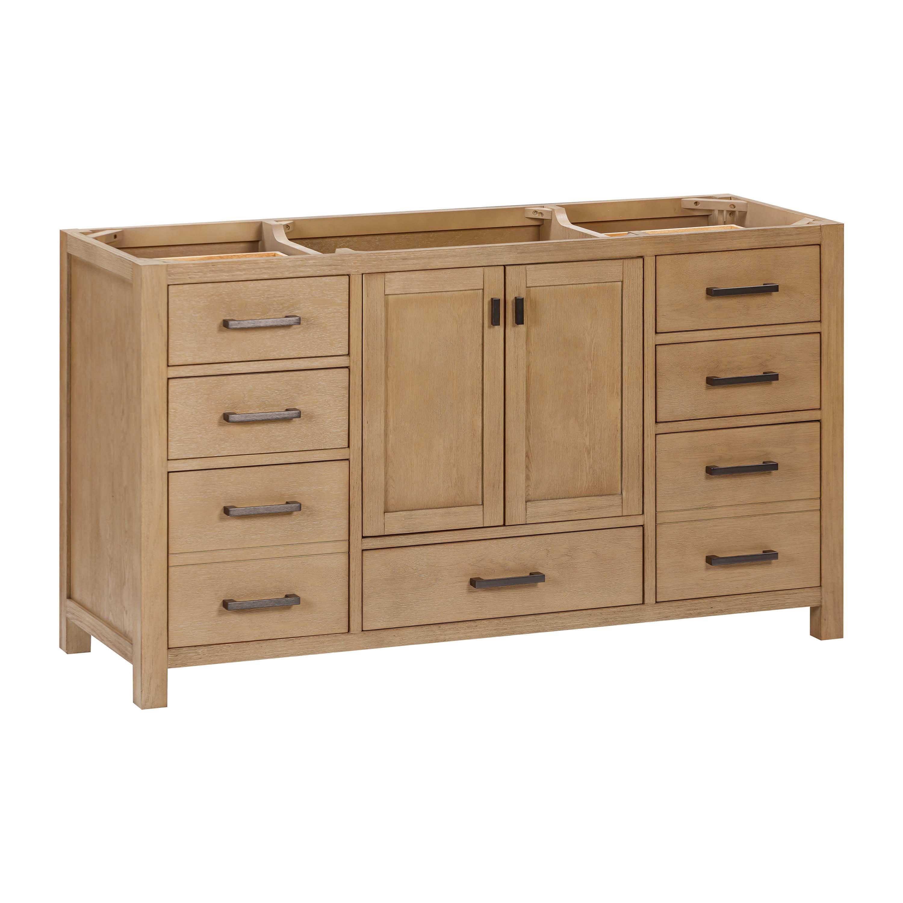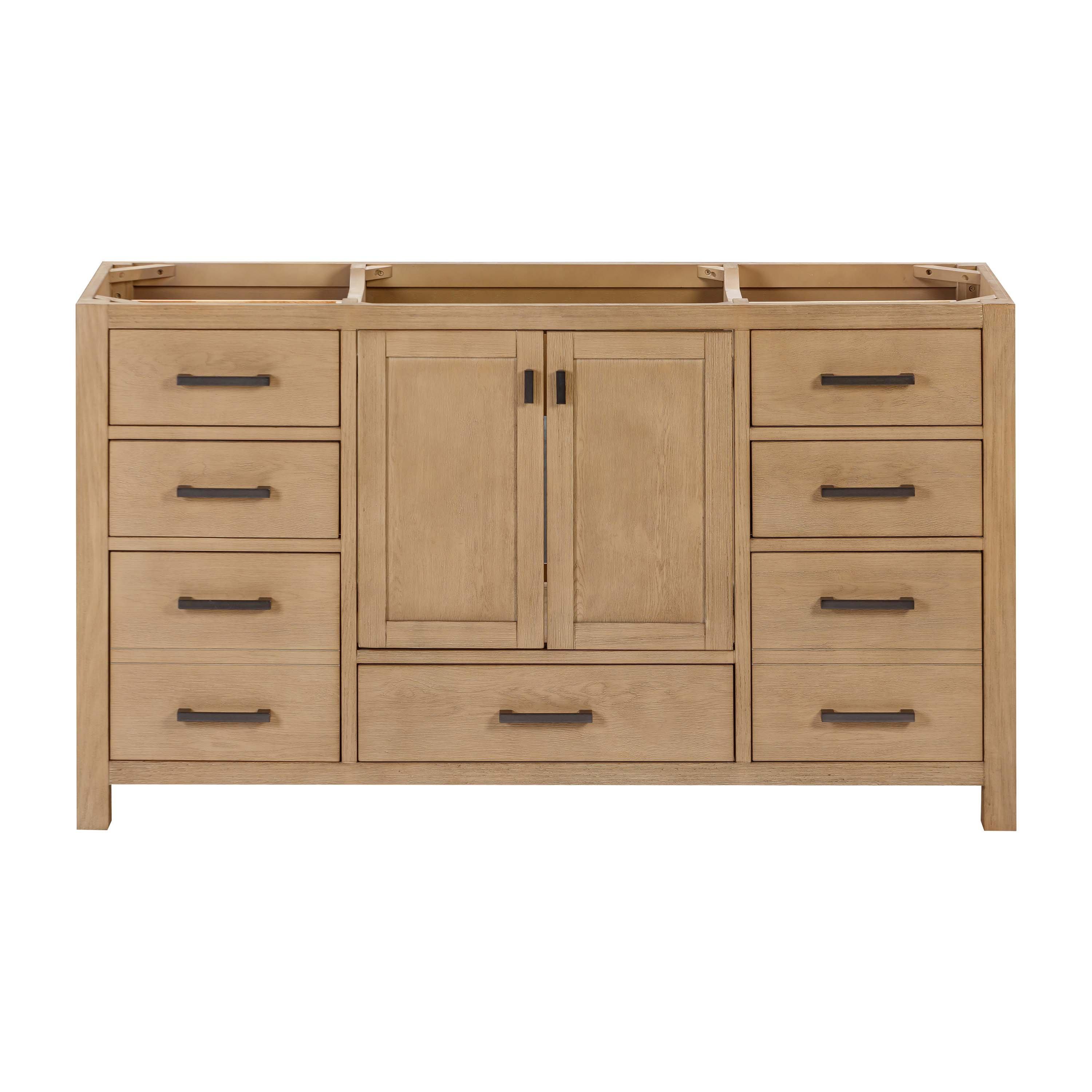 Complete your bathroom with the beautiful Kent 60 in. Natural Oak Single Vanity Base. This freestanding features durable solid wood, mdf cabinets in stunning natural with matte black bronze hardware. The Kent 60 in. Natural Oak Single Vanity Base is a versatile choice to customize multiple bathroom settings.