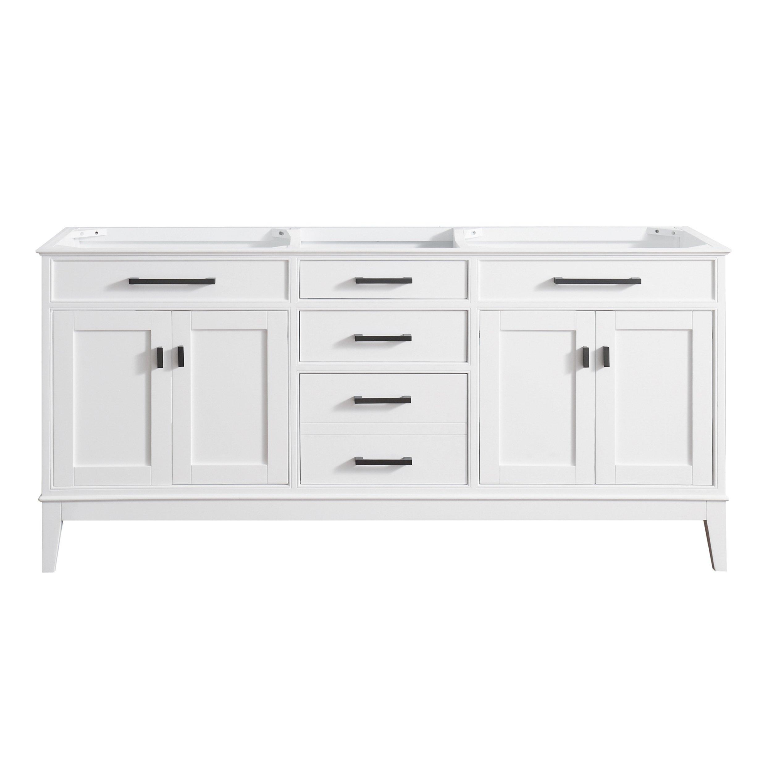 Complete your bathroom with the beautiful Landon 72 in. White Double Vanity Base. This freestanding features durable solid wood cabinets in stunning white with brushed black bronze hardware. The Landon 72 in. White Double Vanity Base is a versatile choice to customize multiple bathroom settings.