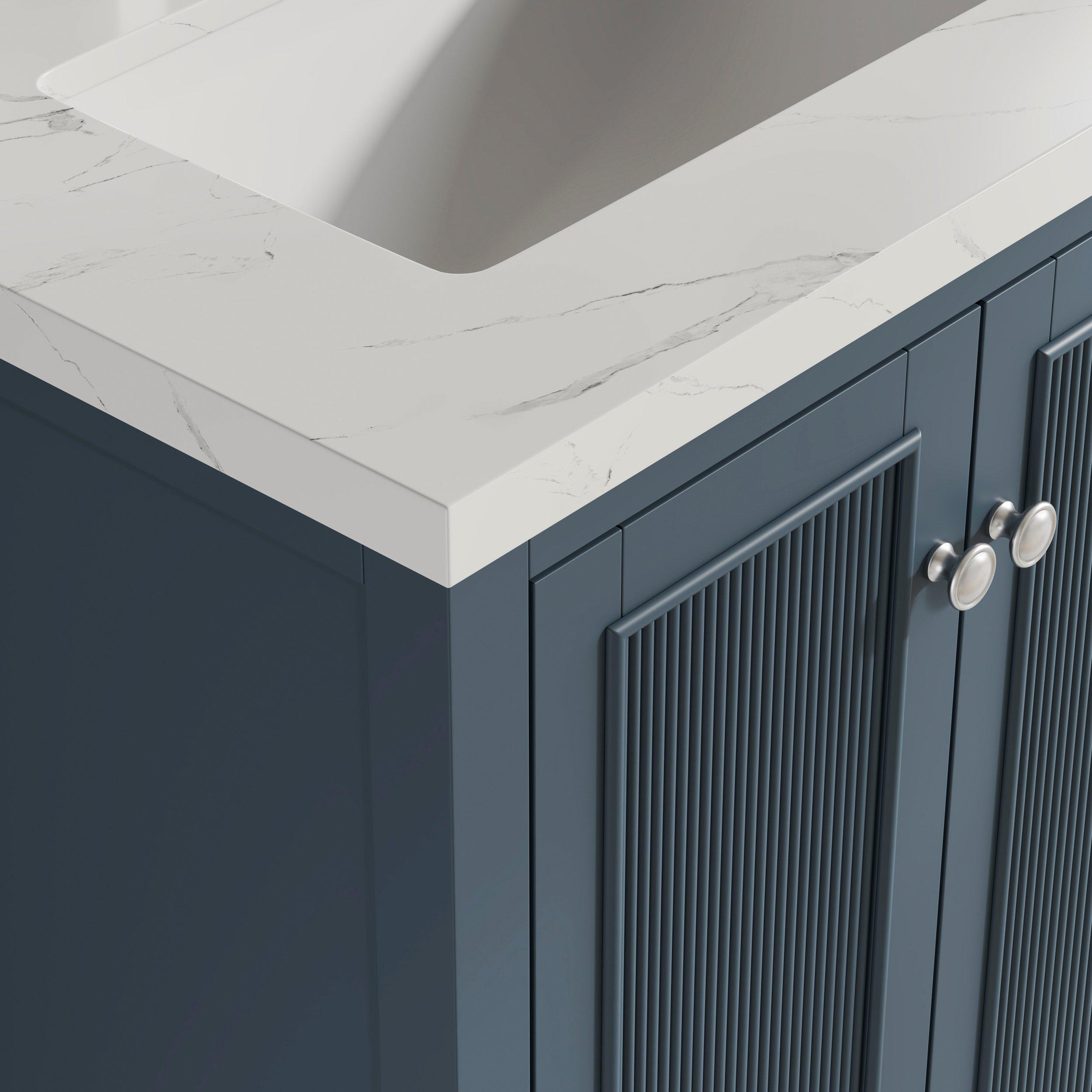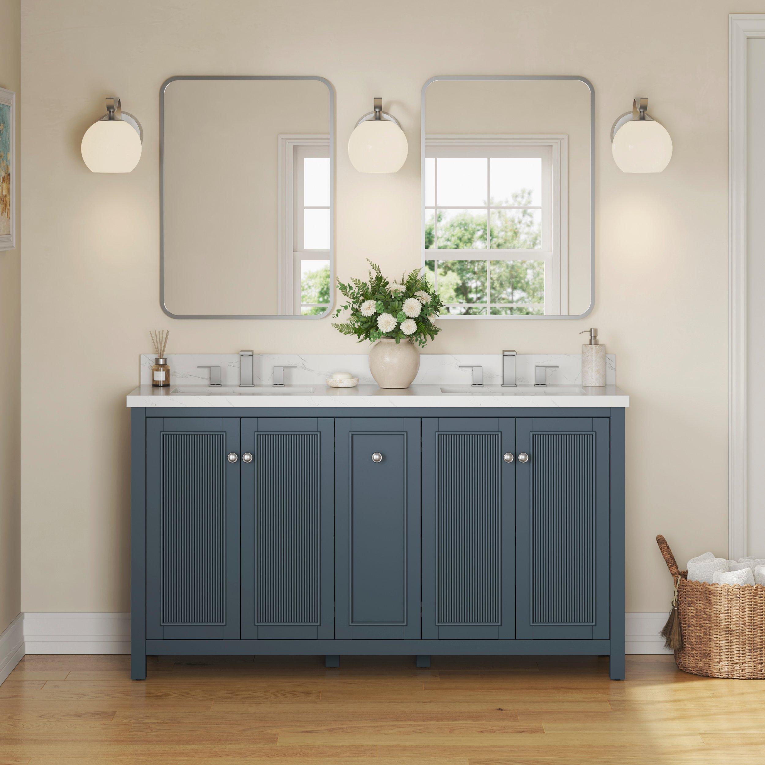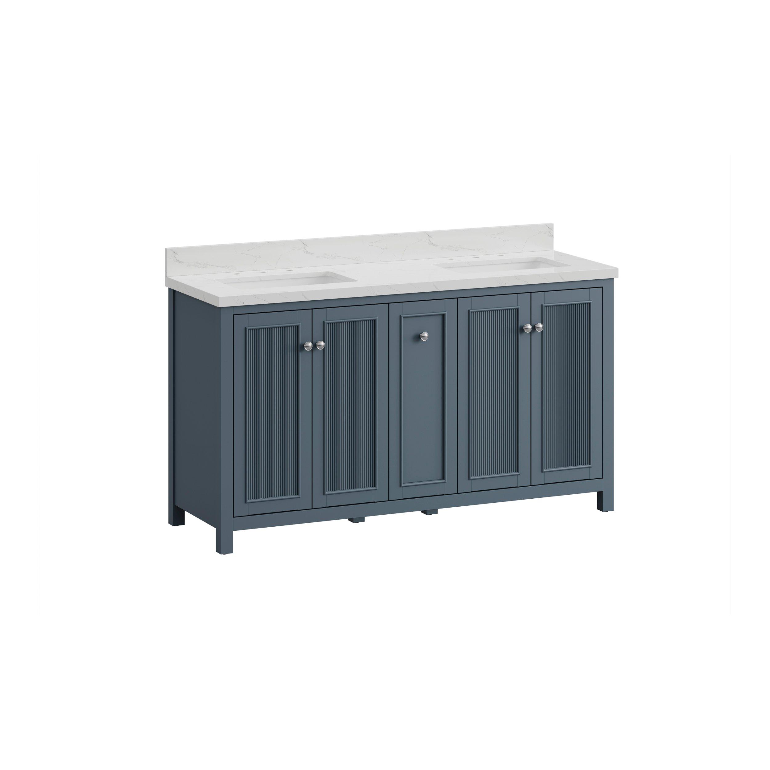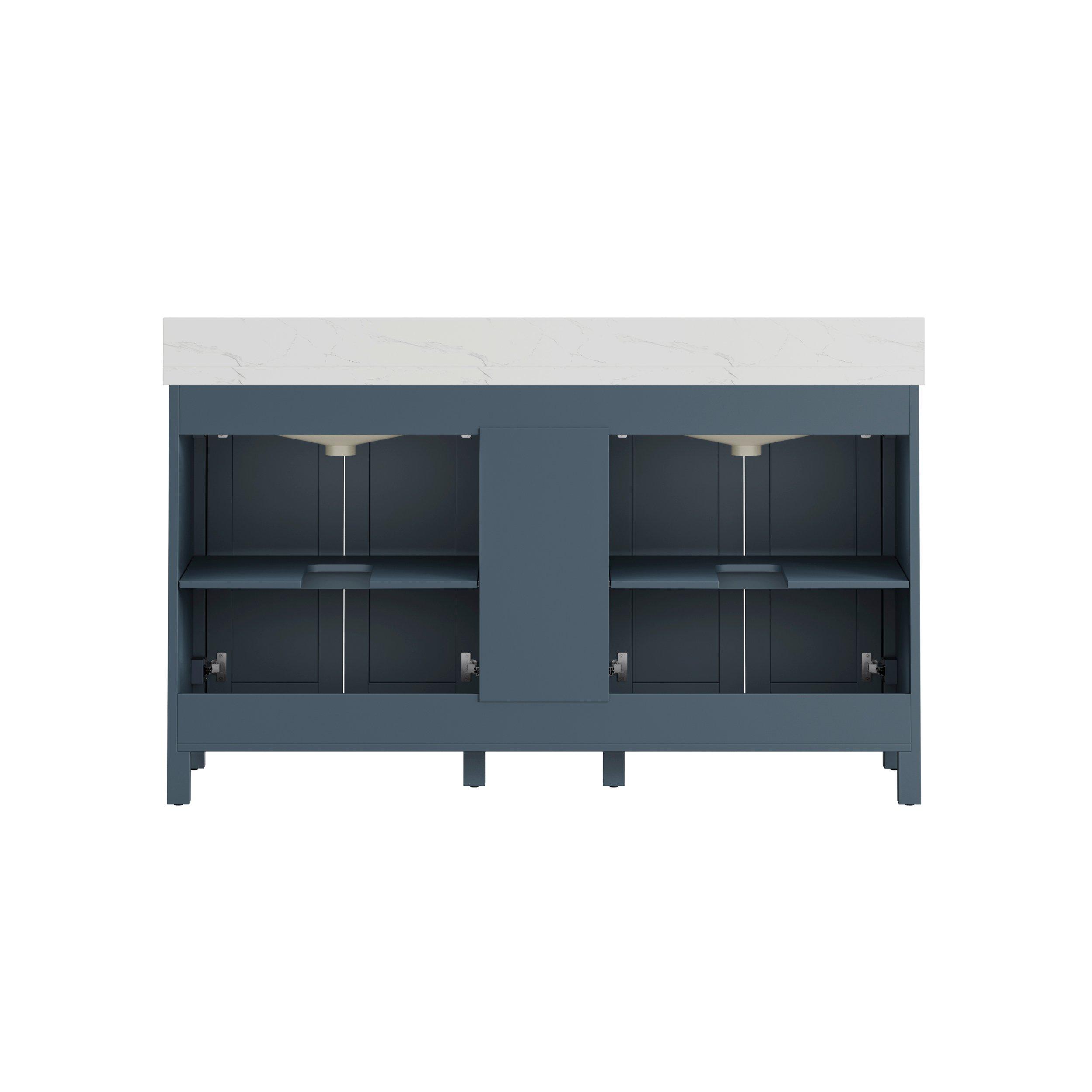 Complete your bathroom with the beautiful Lorain 61 in. Gray Vanity with Enginnered Stone Top. This freestanding features durable solid wood, mdf cabinets in stunning blue with a white composite vanity top and n/a n/a hardware. A charming double undermount sink in brilliant white is included. The Lorain 61 in. Gray Vanity with Enginnered Stone Top is a versatile choice to customize multiple bathroom settings.