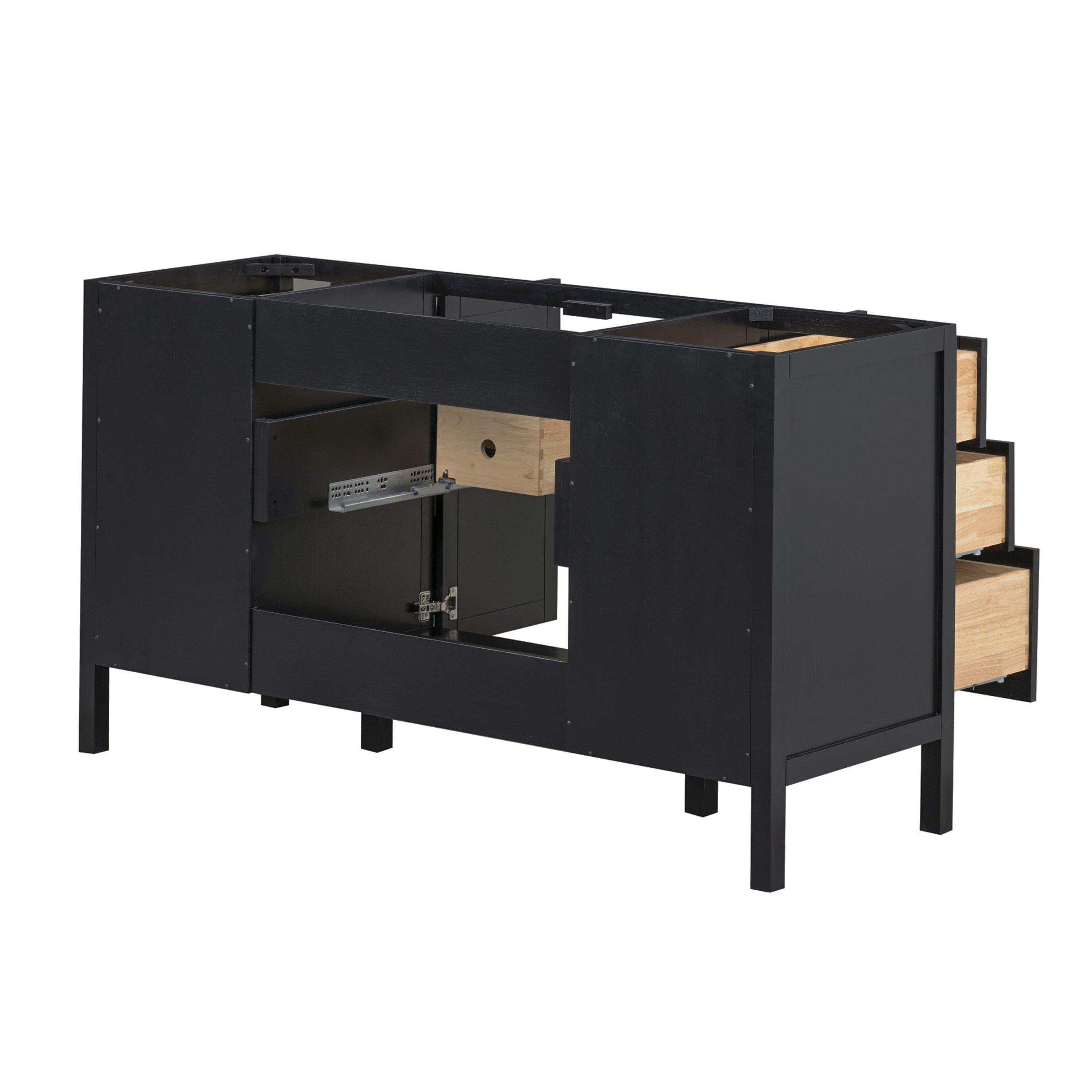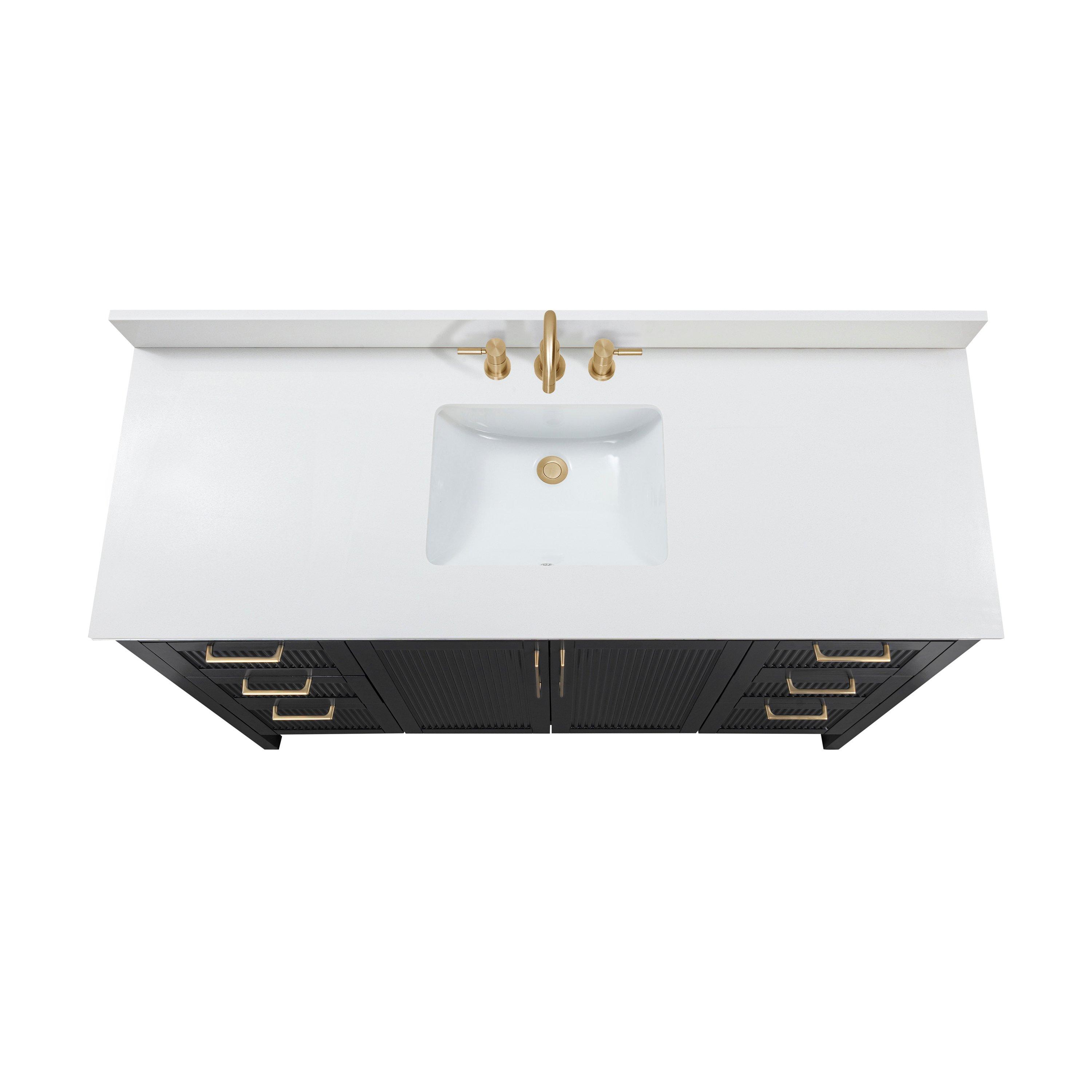 Complete your bathroom with the beautiful Luxe 61 in. Black Vanity with Enginereed Stone Top. This freestanding features durable solid wood, mdf cabinets in stunning black with a white engineered stone vanity top and matte gold hardware. A charming single undermount sink in brilliant white is included. The Luxe 61 in. Black Vanity with Enginereed Stone Top is a versatile choice to customize multiple bathroom settings.
