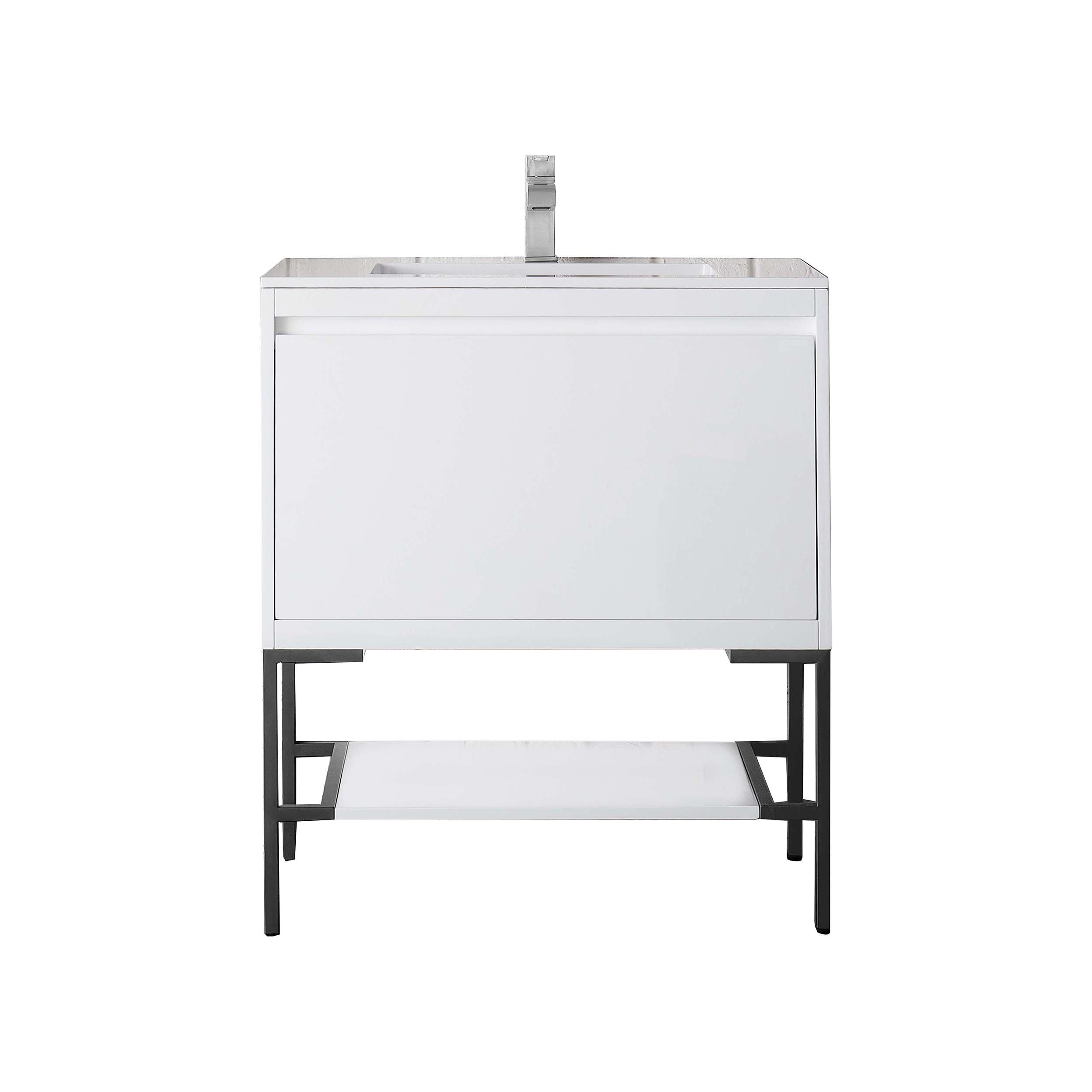 Mantova 31.5 in. White and Black Vanity with White Engineered Stone Top