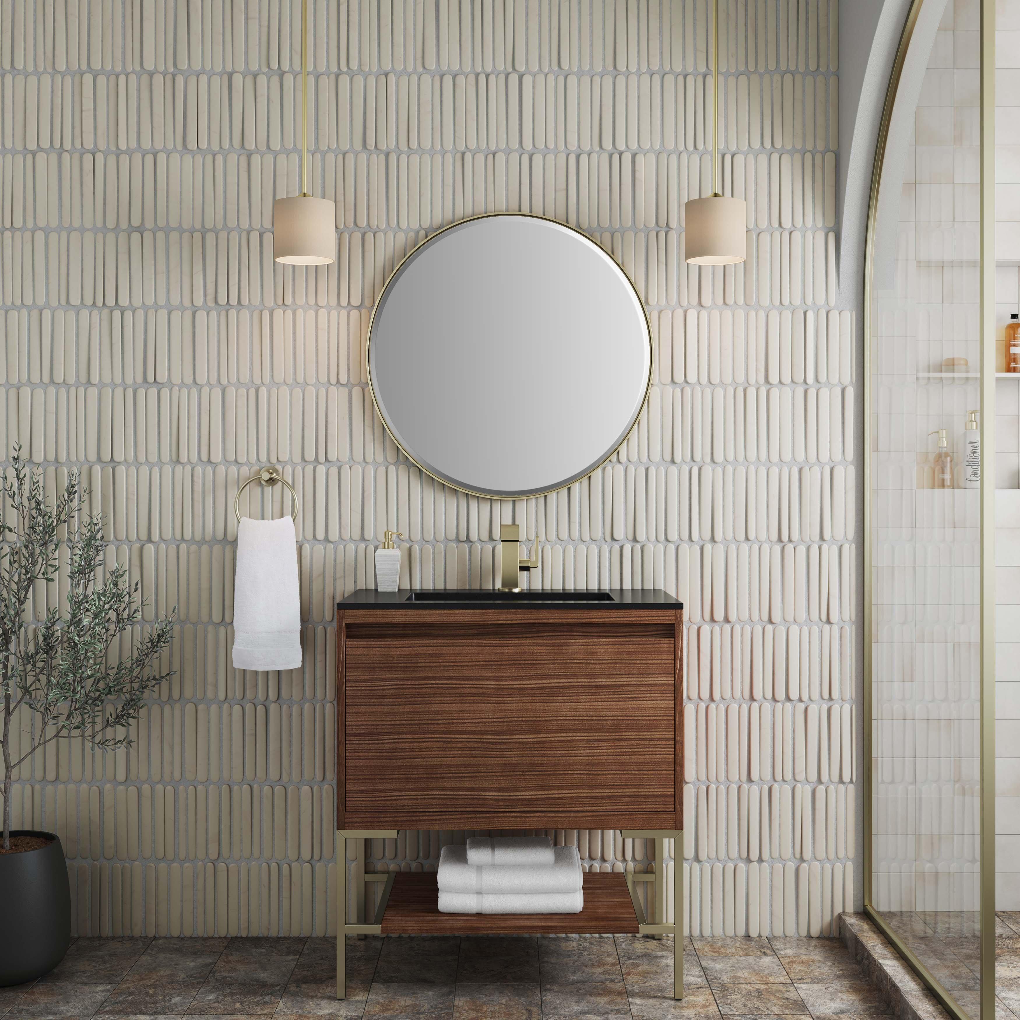 Tailor the look of your bathroom with the Mantova 31.5 in. Brown and Brass Vanity with Black Engineered Stone Top featuring gorgeous solid wood, plywood in brown with 0 doors, 2 drawers, and 1 shelves. This piece is completed with beautiful n/a brass hardware and a single integral black sink. The Mantova 31.5 in. Brown and Brass Vanity with Black Engineered Stone Top is a stunning addition to any bathroom setting.