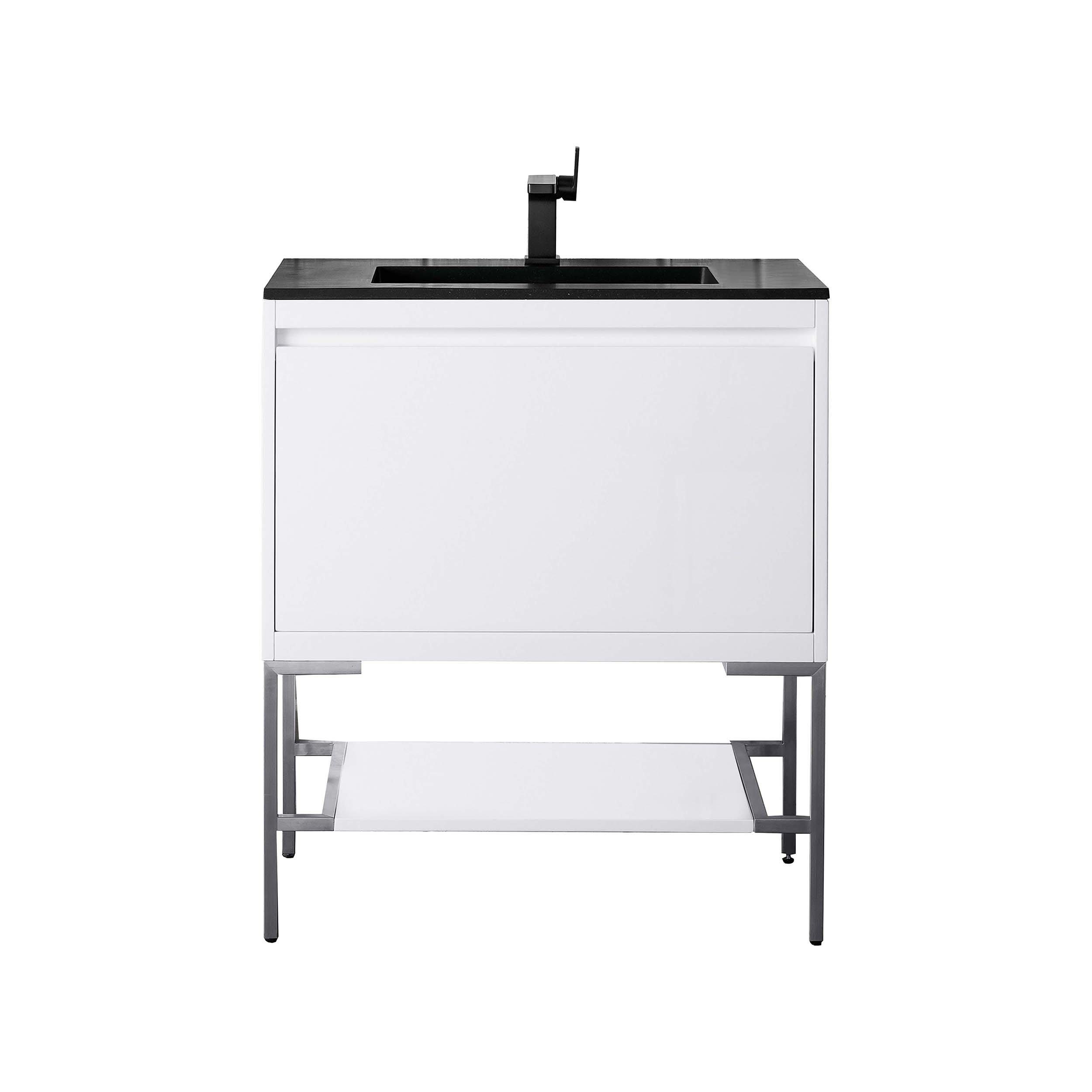 Complete your bathroom with the beautiful Mantova 31.5 in. White and Nickel Vanity with Black Engineered Stone Top. This freestanding features durable solid wood, plywood cabinets in stunning white with a black manufactured stone vanity top and brushed nickel hardware. A charming single integral sink in brilliant black is included. The Mantova 31.5 in. White and Nickel Vanity with Black Engineered Stone Top is a versatile choice to customize multiple bathroom settings.