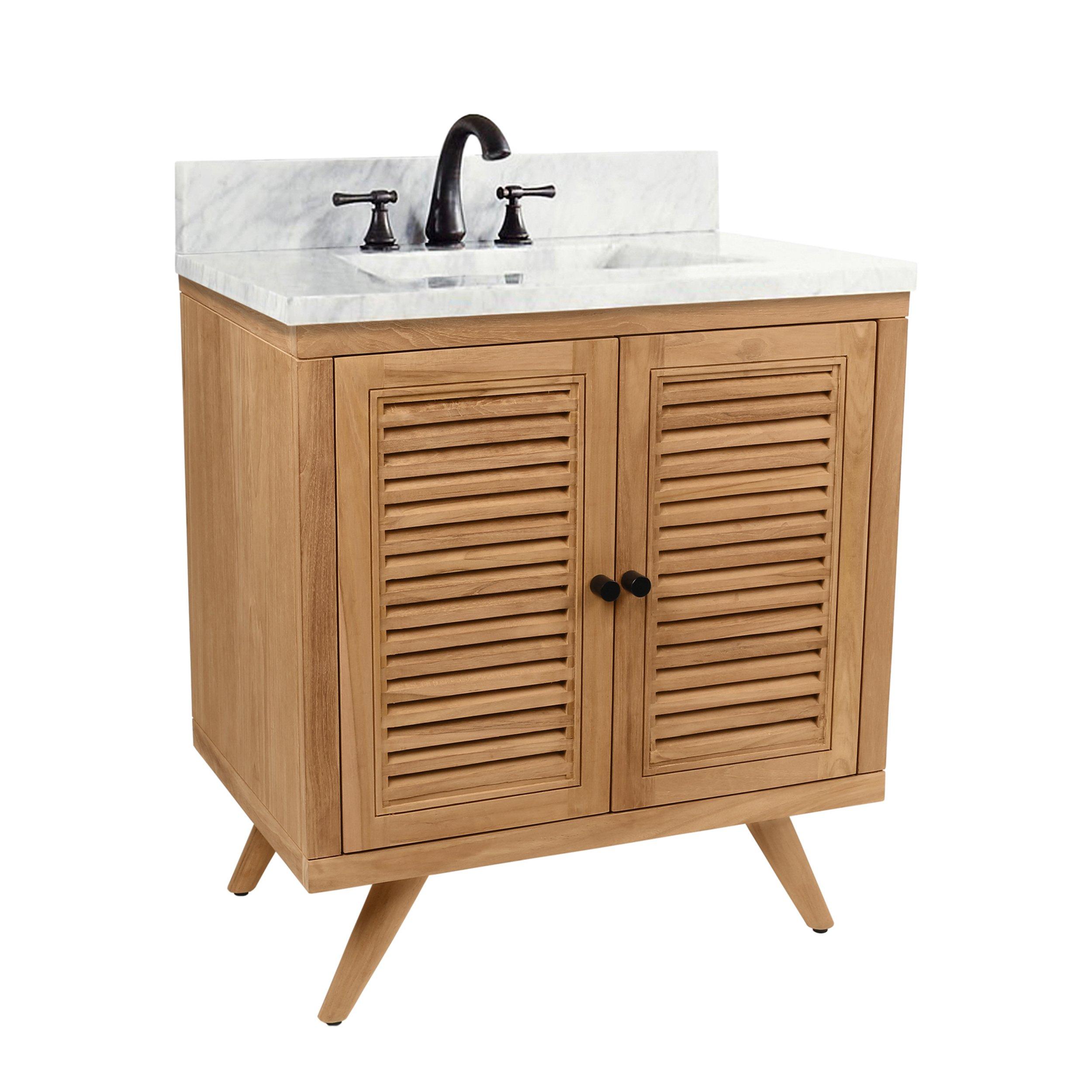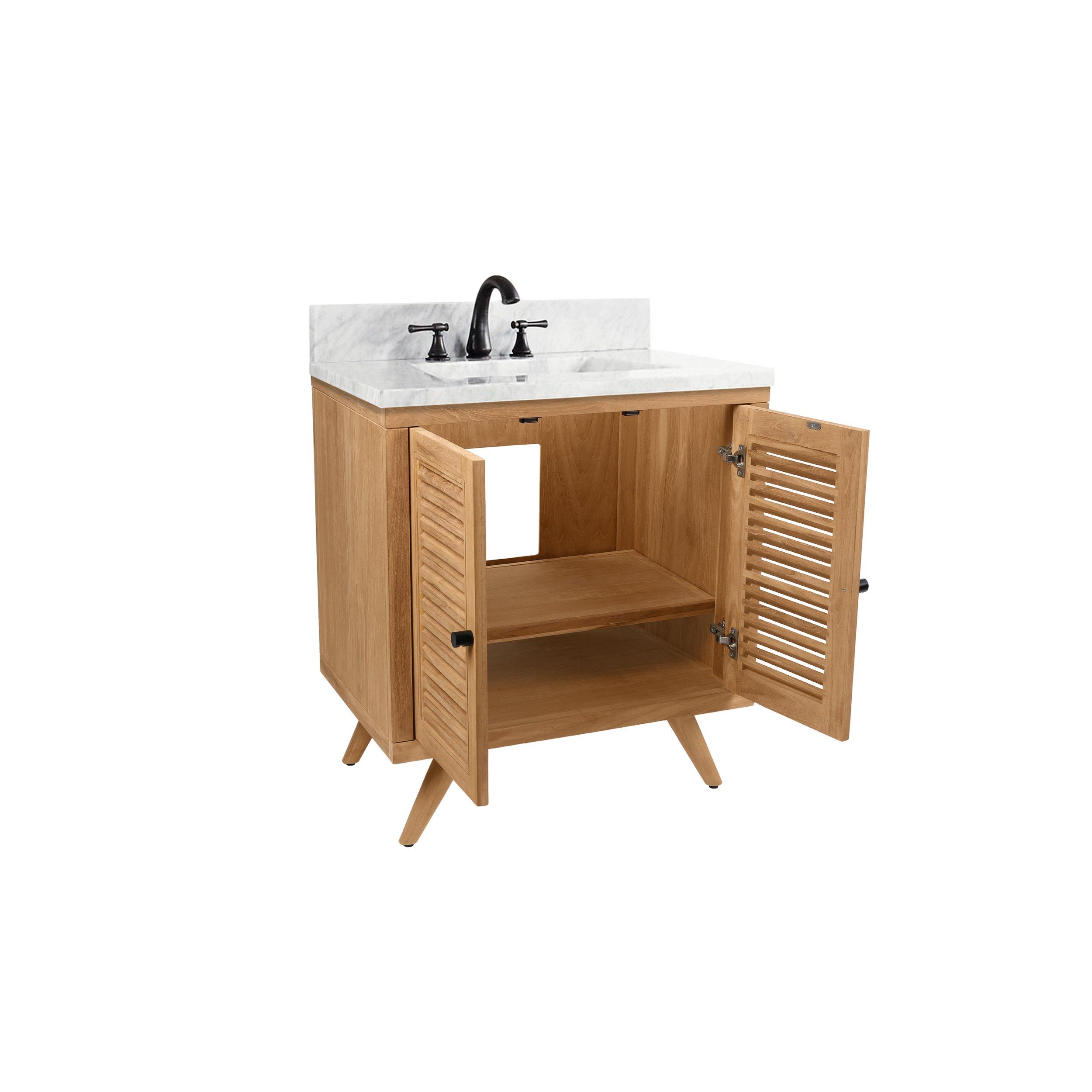 Tailor the look of your bathroom with the Monroe 31 in. Natural Single Vanity with Cararra Top featuring gorgeous solid wood in natural with 2 doors, 0 drawers, and 1 shelves. This piece is completed with beautiful matte black hardware and a single undermount white sink. The Monroe 31 in. Natural Single Vanity with Cararra Top is a stunning addition to any bathroom setting.