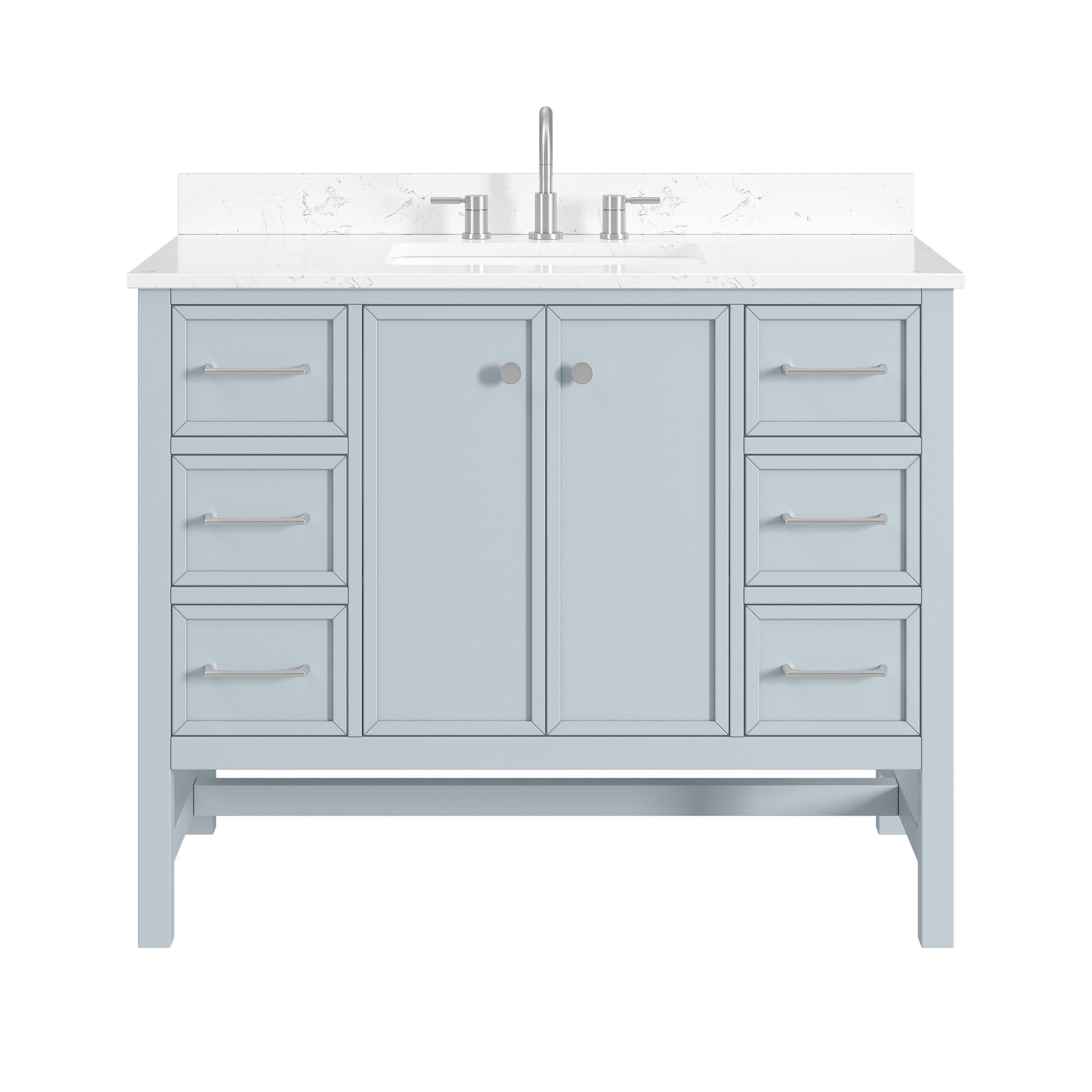 Complete your bathroom with the beautiful Piper 43 in. Blue Vanity with Engineered Stone Top. This freestanding features durable solid wood, mdf cabinets in stunning blue with a white engineered stone vanity top and polished chrome hardware. A charming single undermount sink in brilliant white is included. The Piper 43 in. Blue Vanity with Engineered Stone Top is a versatile choice to customize multiple bathroom settings.
