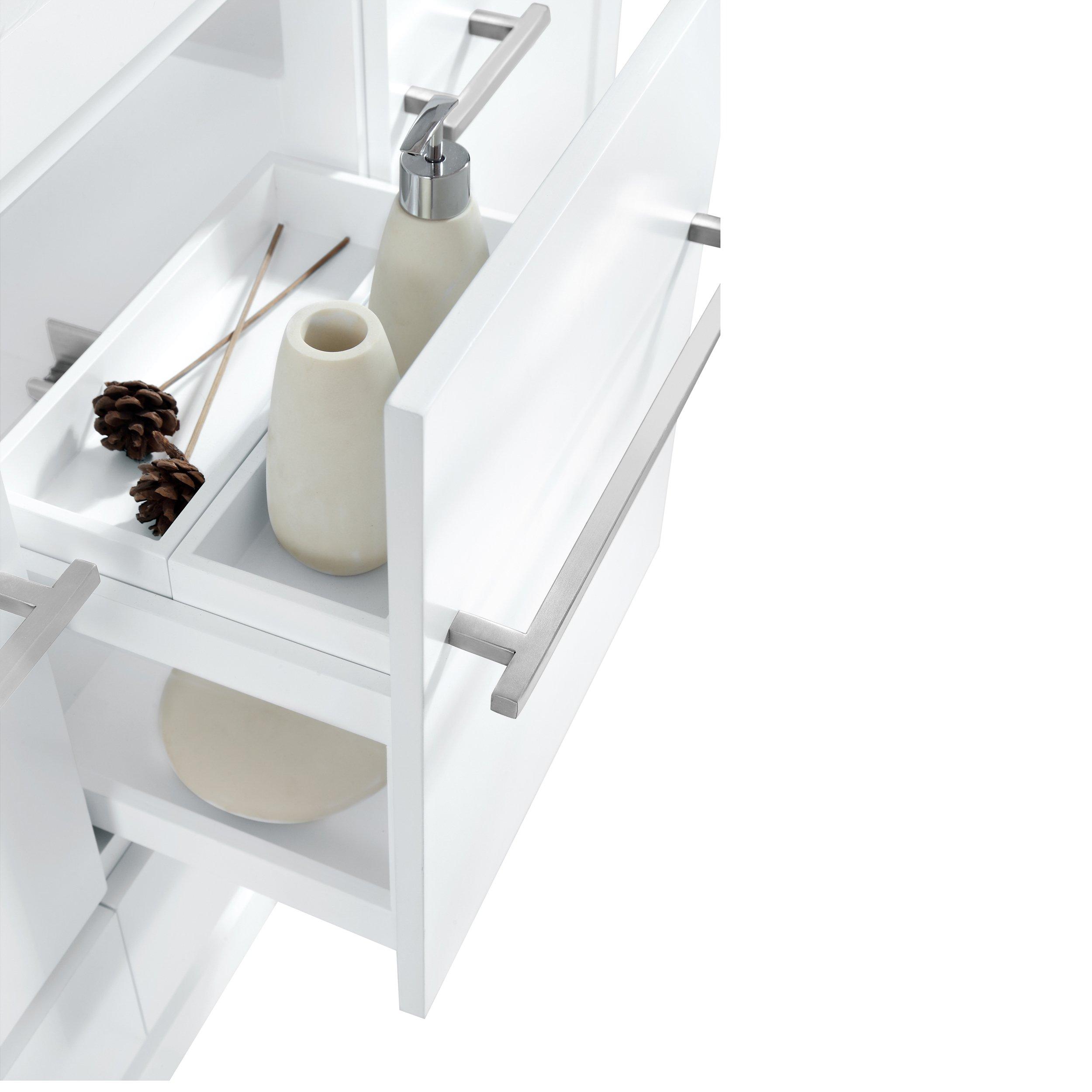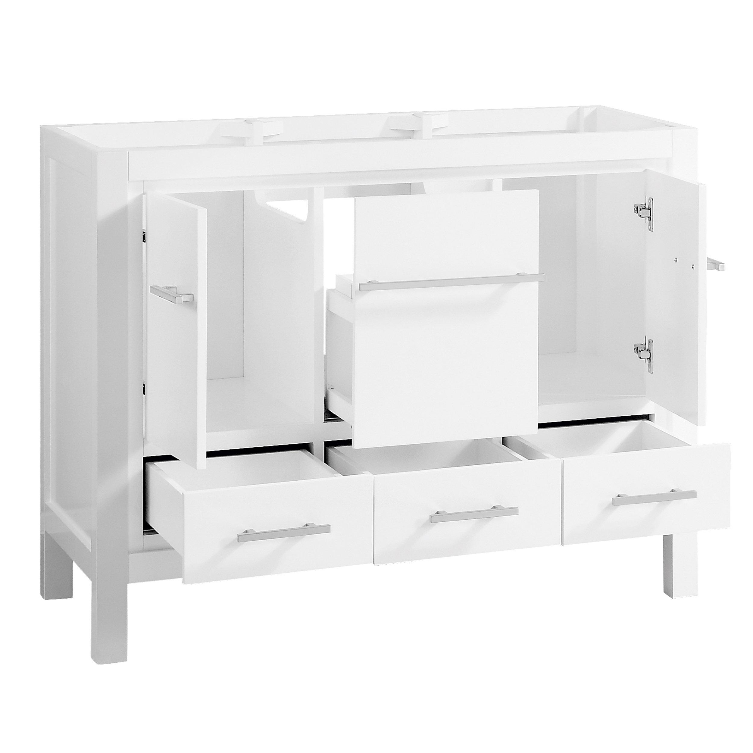 1 Year LimitedComplete your bathroom with the beautiful Ryder 43 in. White Single Vanity with Dark Gray Quartz Top. This freestanding features durable solid wood cabinets in stunning white with a gray quartz vanity top and brushed nickel hardware. A charming single undermount sink in brilliant white is included. The Ryder 43 in. White Single Vanity with Dark Gray Quartz Top is a versatile choice to customize multiple bathroom settings.