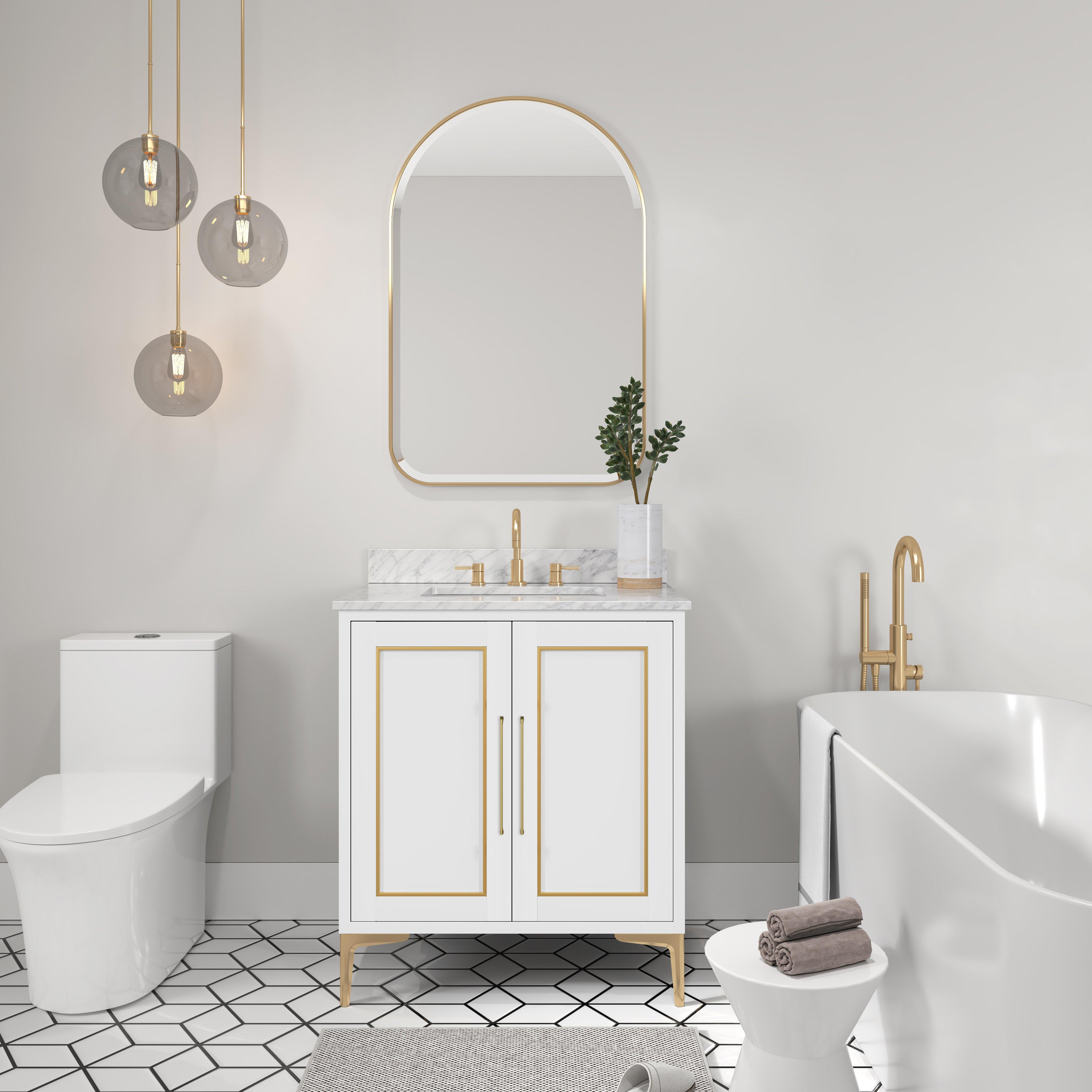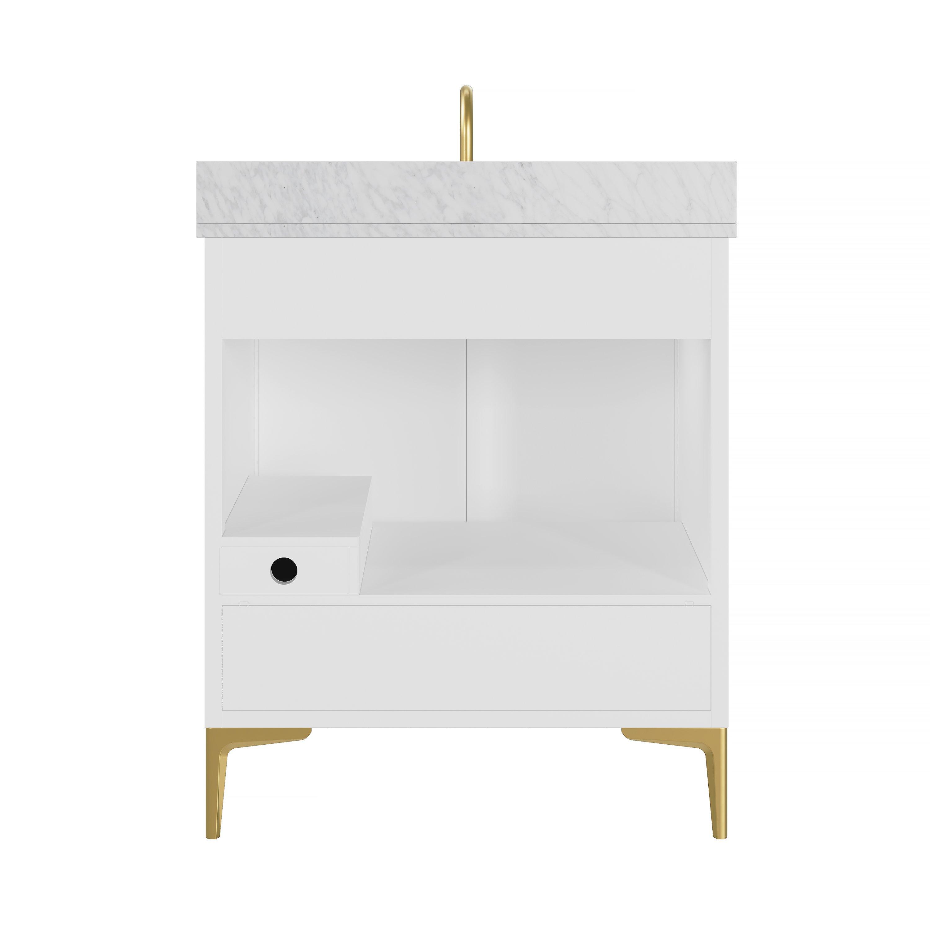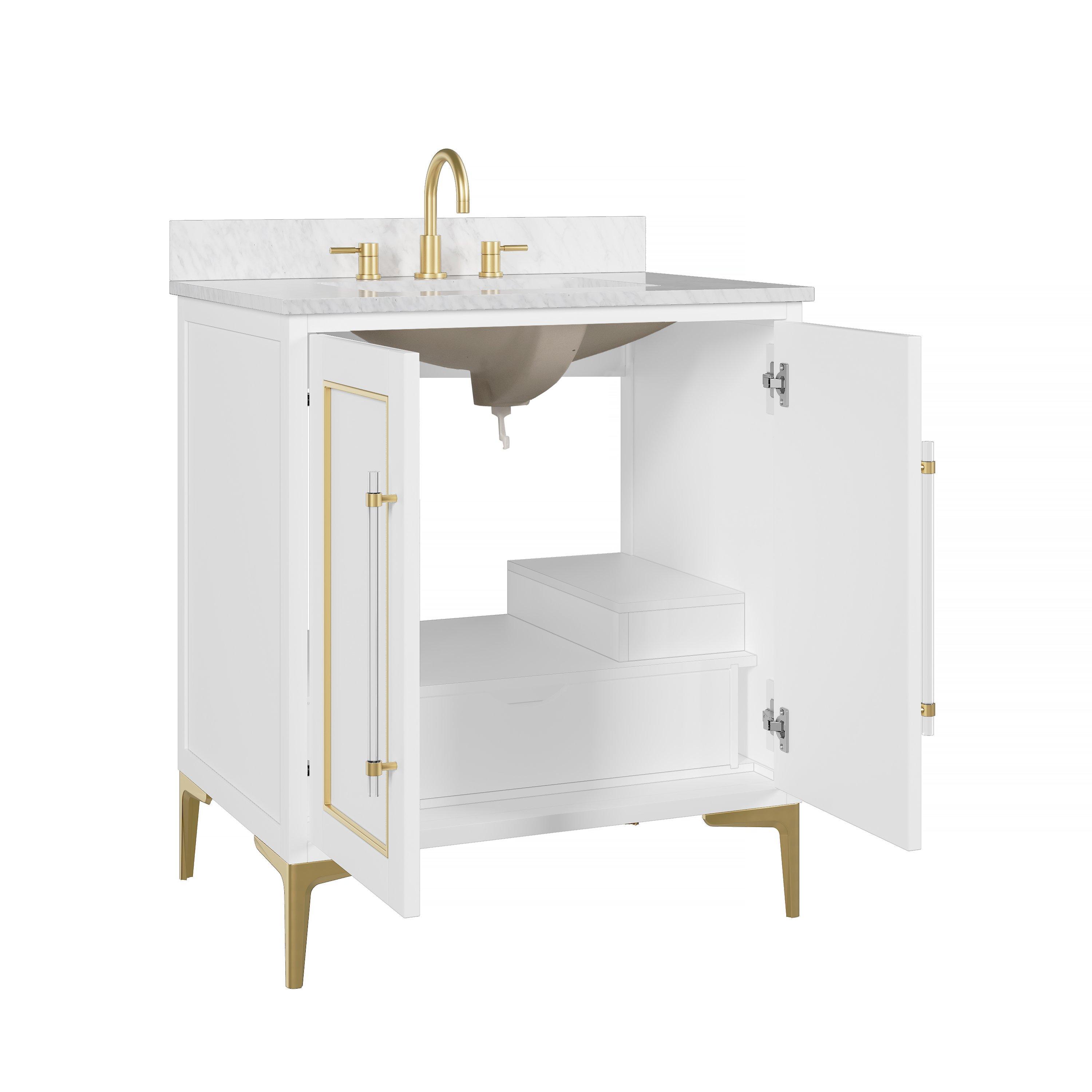 Complete your bathroom with the beautiful Siena 31 in. White Vanity with Natural Carrara Marble Top. This freestanding features durable solid wood, mdf cabinets in stunning white with a white marble vanity top and n/a n/a hardware. A charming single undermount sink in brilliant white is included. The Siena 31 in. White Vanity with Natural Carrara Marble Top is a versatile choice to customize multiple bathroom settings.