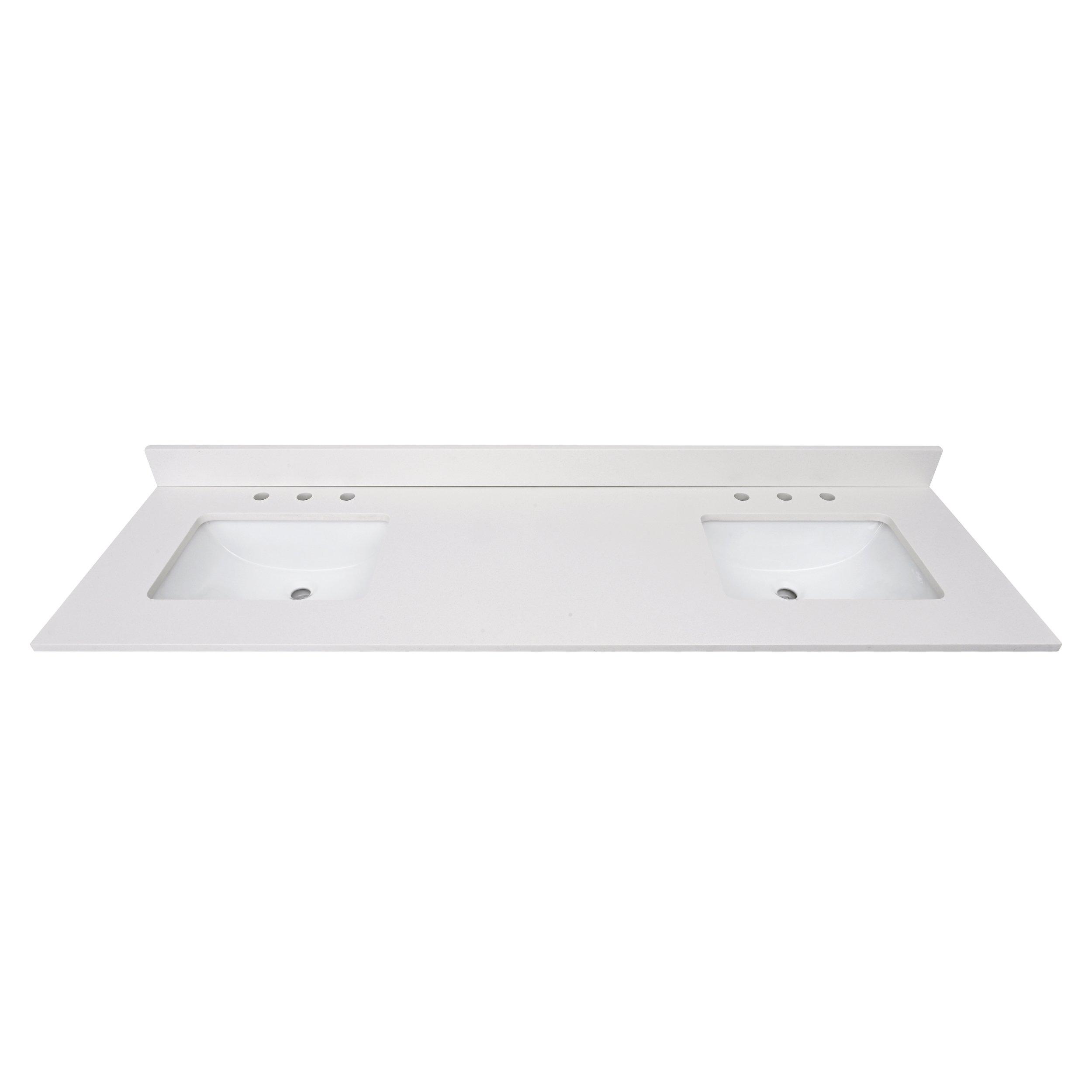 The sink position is offset and not directly centered on the vanity top to allow for more space on the side of the vanity.