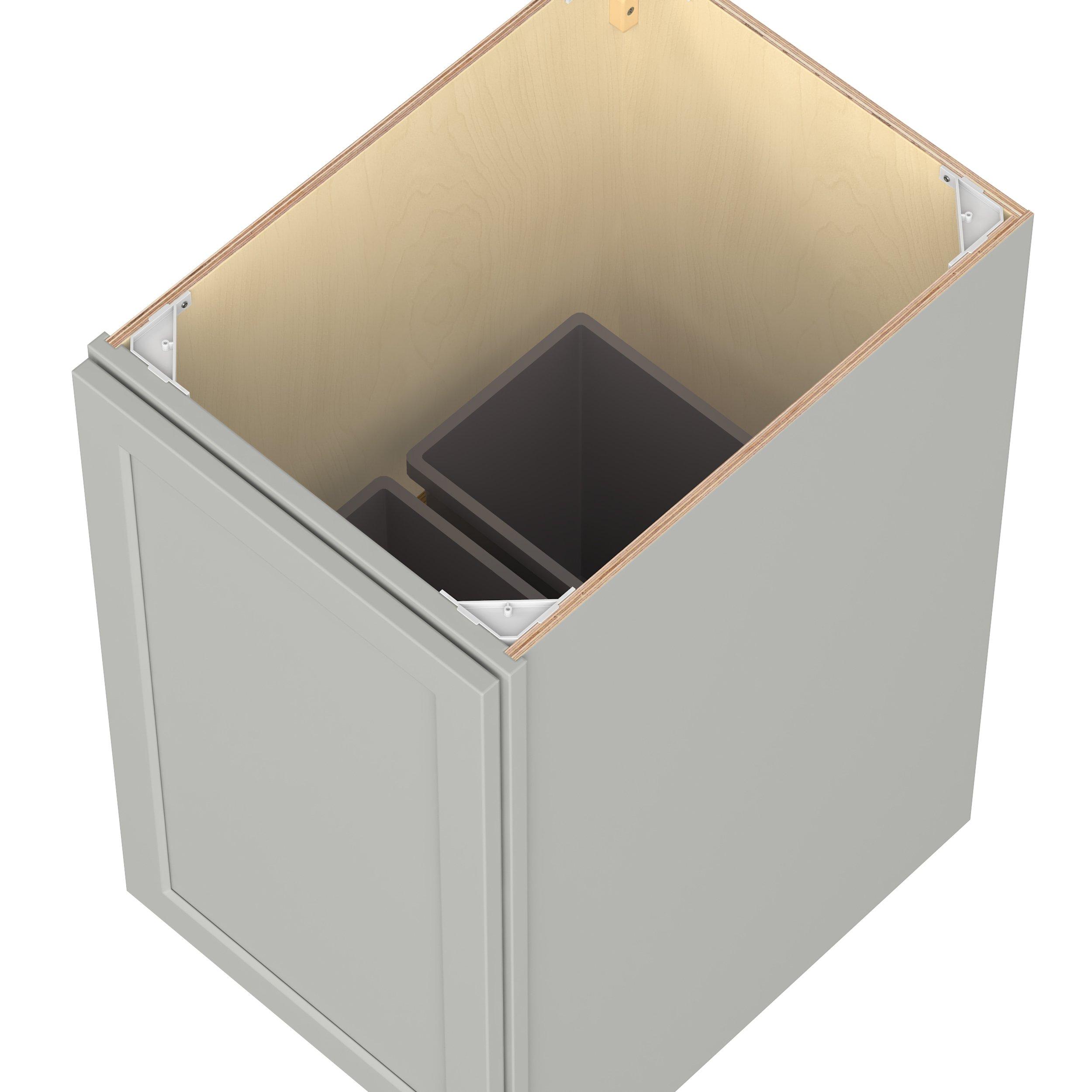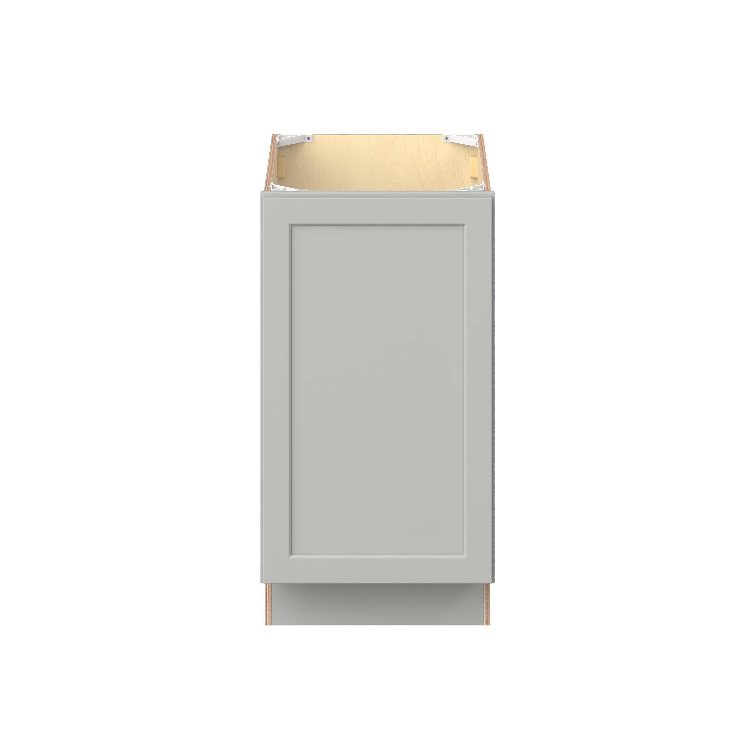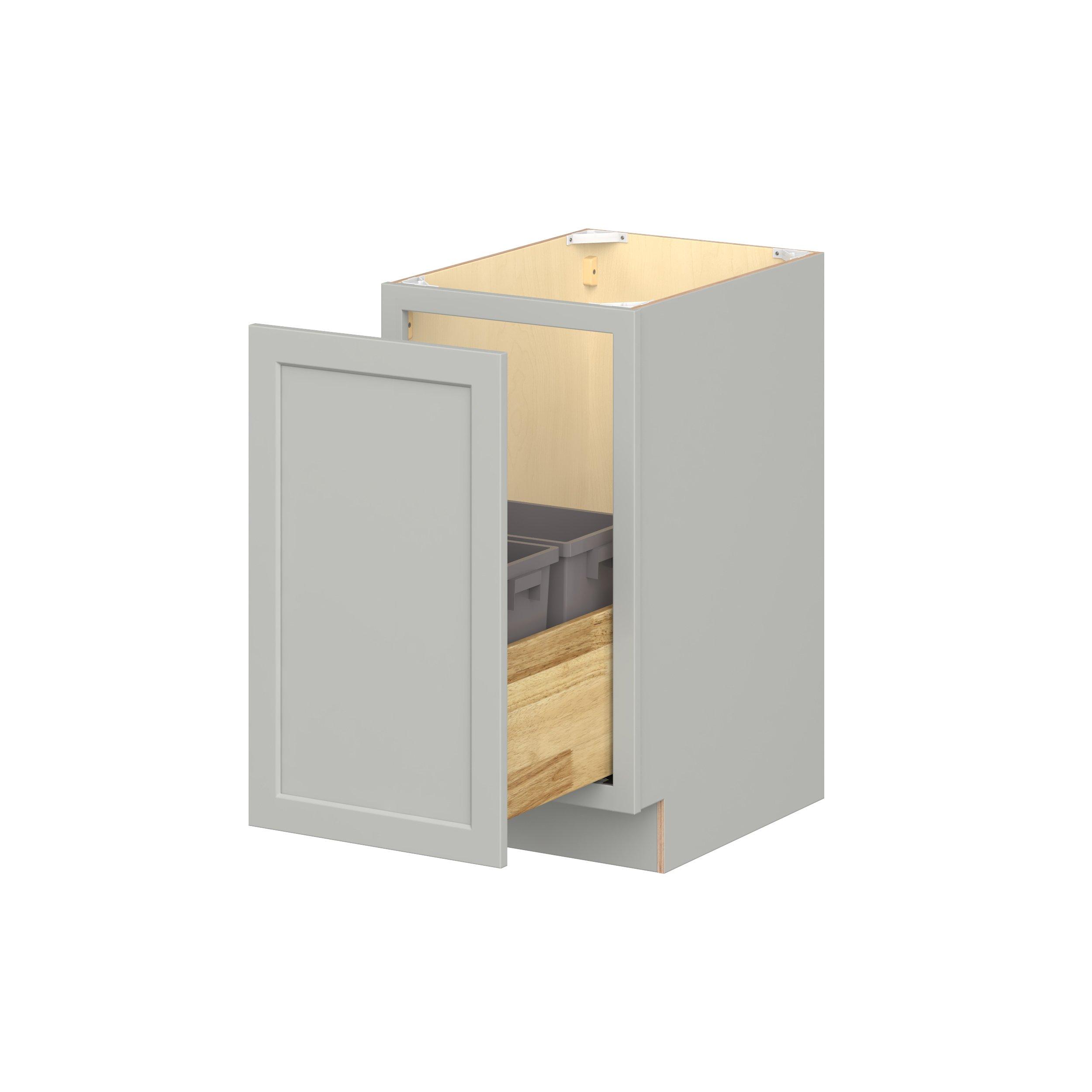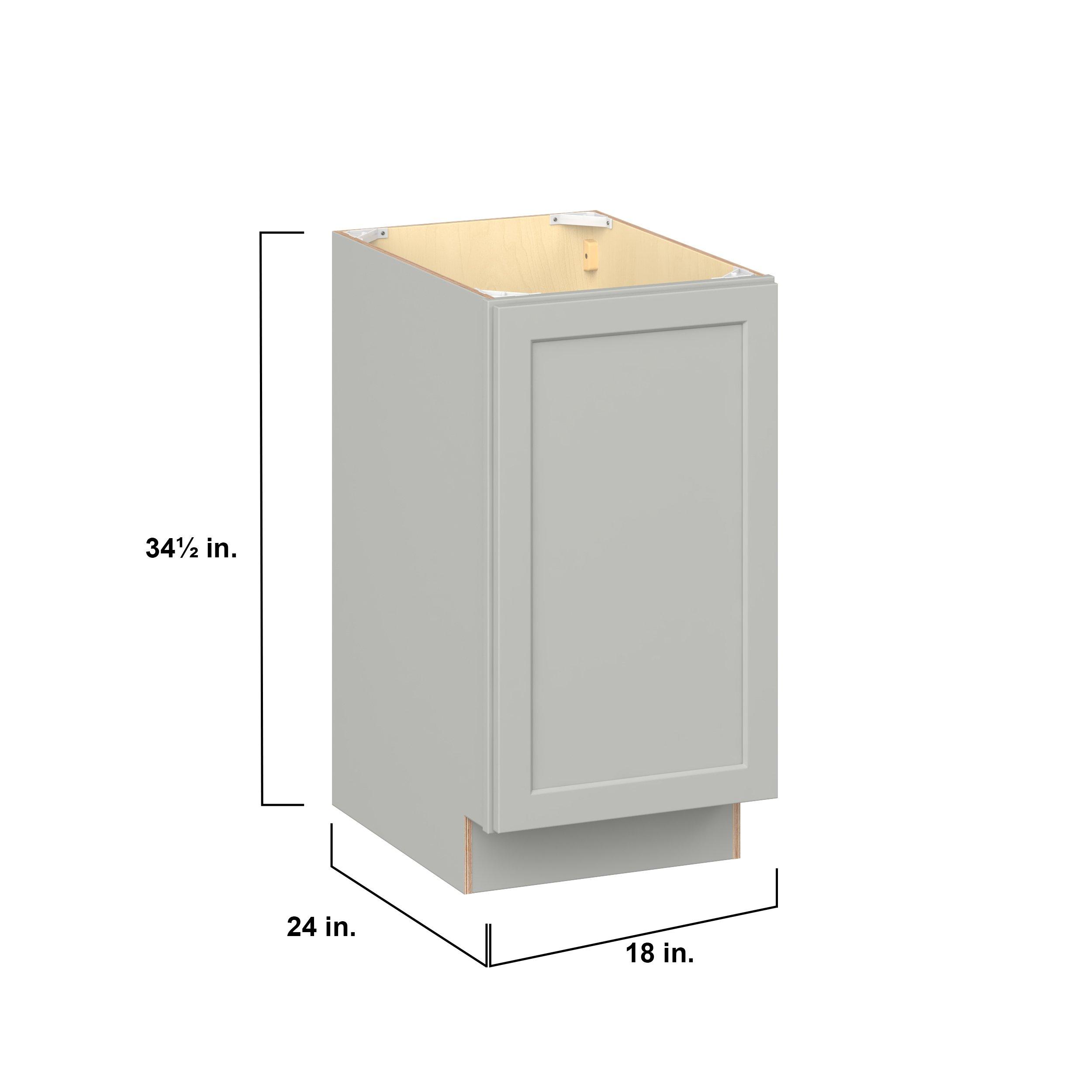 Embrace the timeless charm of the Baxley classic shaker door style. Studio Design Collection Baxley 18 in. Painted Whisper Gray Pull Out Base Cabinet features all plywood construction, offering both superior strength and sophistication to your space. Featuring 5-piece MDF doors and dovetail drawer joints, these cabinets offer durability and elegance. Baxley classic shaker door style is designed to retain its stunning appearance and withstand the test of time.