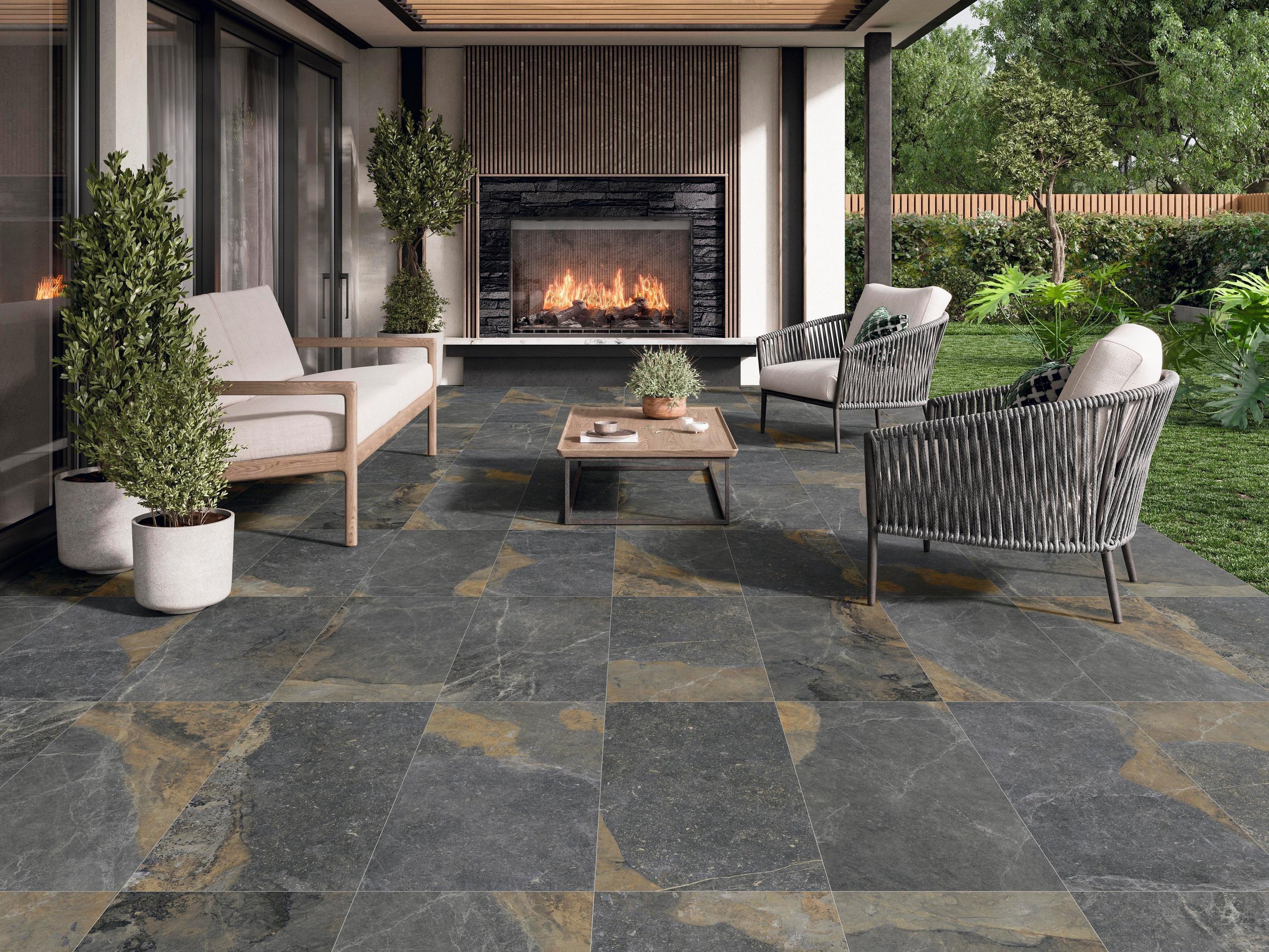 For a bold take on elegance, outfit your fireplace with XL Porcelain Slabs. Available up to 10 feet tall, these slabs provide a seamless look to any home. Whether you opt for dark titanium or soothing azure, you’re sure to make a statement with this modern fireplace design.