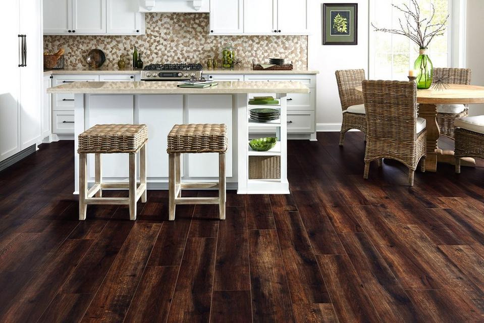 Laminate flooring is highly affordable and can be found in a variety of water-resistant options. It's easy to clean and comes in a range of wood-look styles, which makes it the perfect choice when you want the warmth of hardwood without the cost. It also feels great underfoot due to its wood-grain texture and high-density wood core.