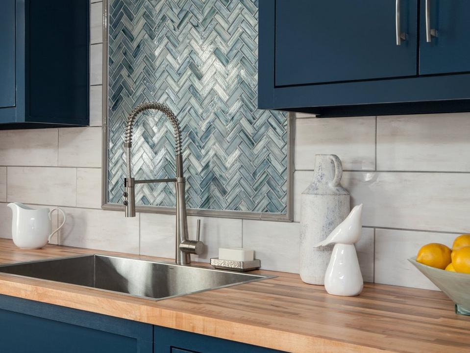 When pairing different types of tile together, you can create a look that's special to you and your home. A great way to create a new look is by installing an accent piece over the kitchen sink. If you have a little room in your budget and want some bang for your buck, an accent piece will make a significant impact.