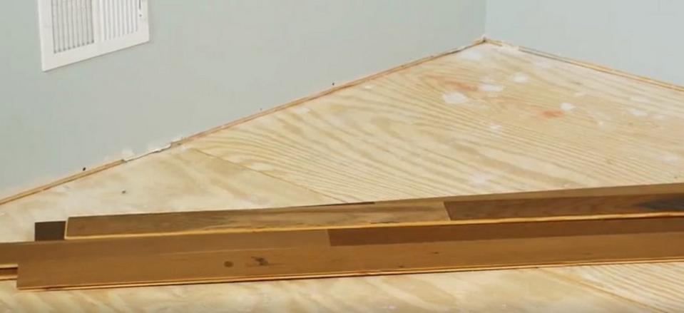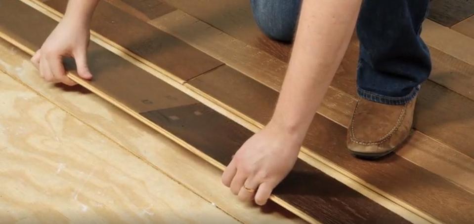 Lay out your entire floor before installing. (This is called “racking” the floor.) When racking, make sure to stagger the end pieces so they are 4 to 6 inches apart for added support.
