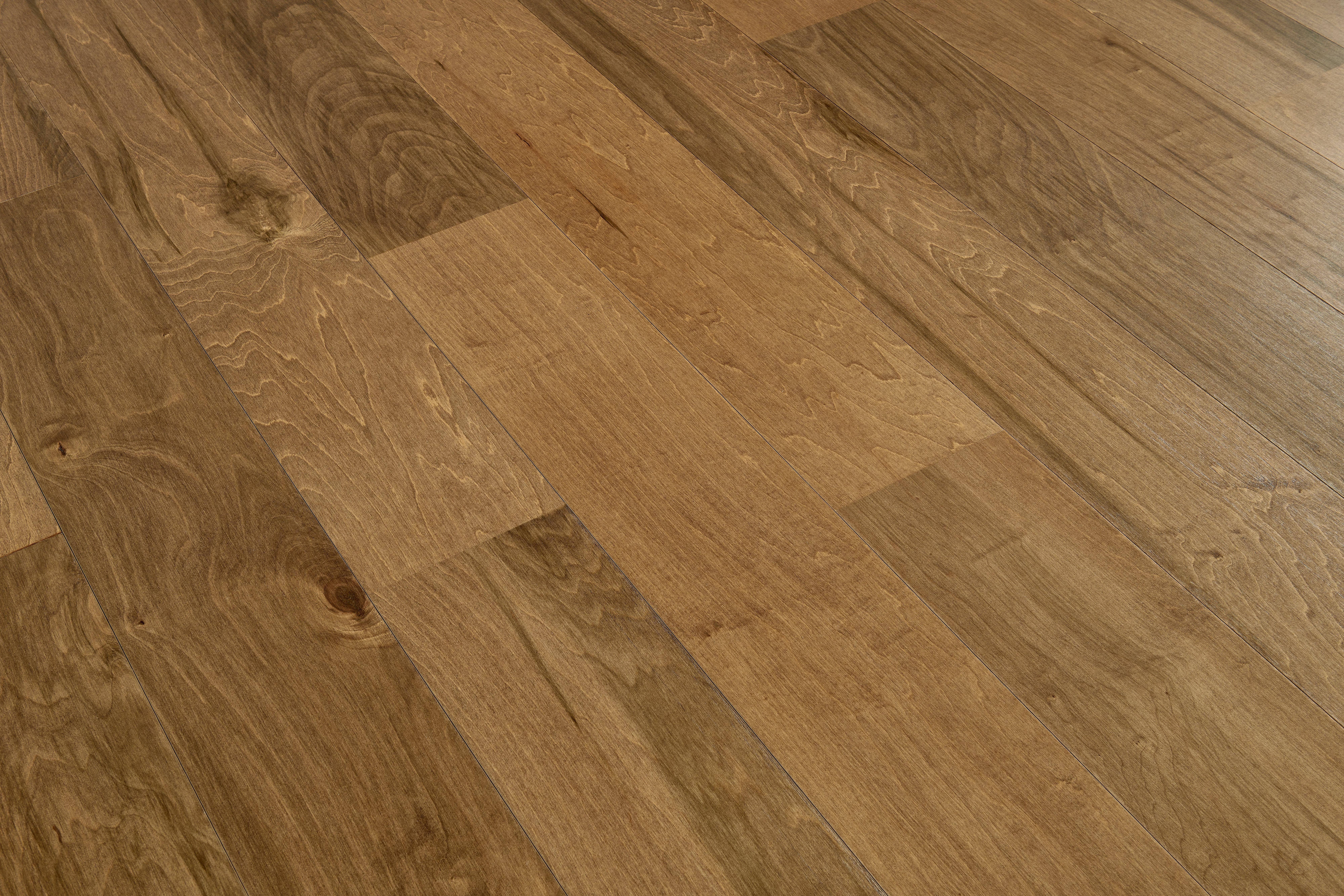 Maple hardwood floors are beautiful in any home. Maple looks brilliant with its naturally sunny hue and faint mineral streaks that are exclusive to the species, giving your floors a noteworthy look. This durable wood is ideal for high traffic areas.