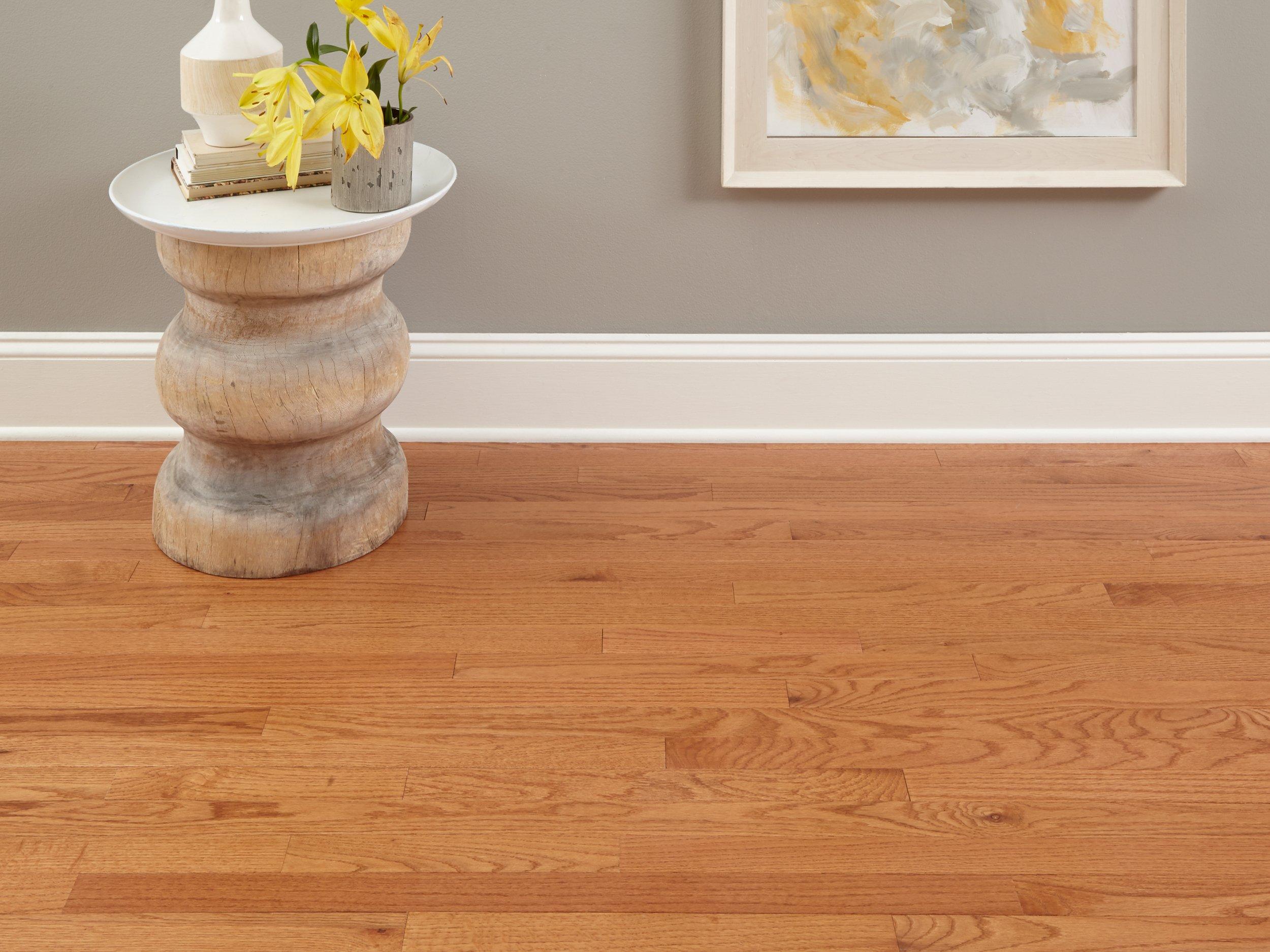 This Butterscotch Select Oak Solid Hardwood is 3/4in. x 2 1/4in. and has a 50 year residential warranty.