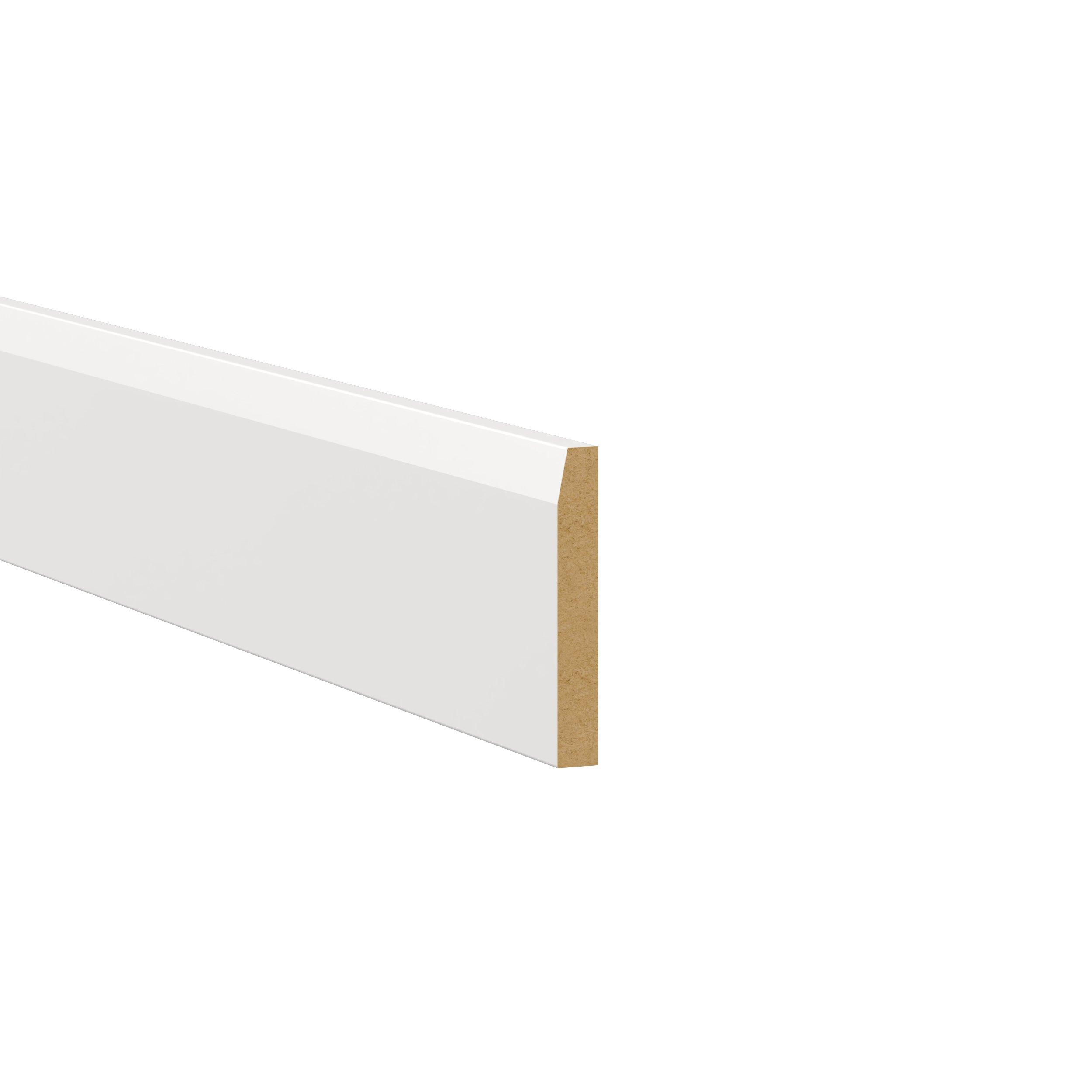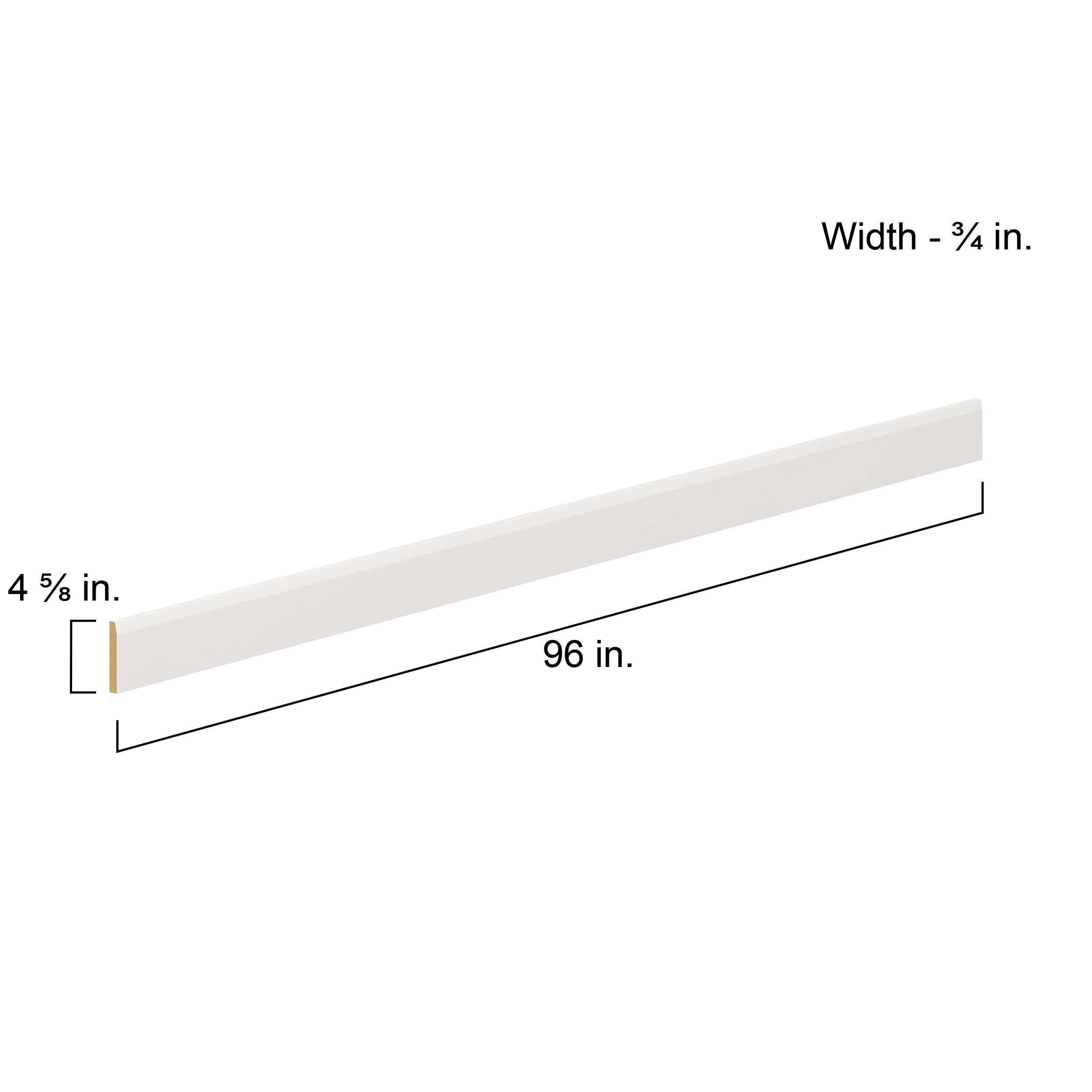 Transform your space with the elegance of Candler wide-rail shaker styles. Both the warm white and slate gray options create a rich transitional backdrop to complement any decor. Crafted from one-piece MDF Studio Design Collection Candler 4.5 x 96in. Painted Warm White Cabinet Furniture Base Molding is designed to resist hairline cracks while the easy-to-clean finish stands up to stains and moisture. Featuring 5-piece doors and dovetail drawer joints, these cabinets offer durability and elegance. This collection combines style with everyday storage solutions.