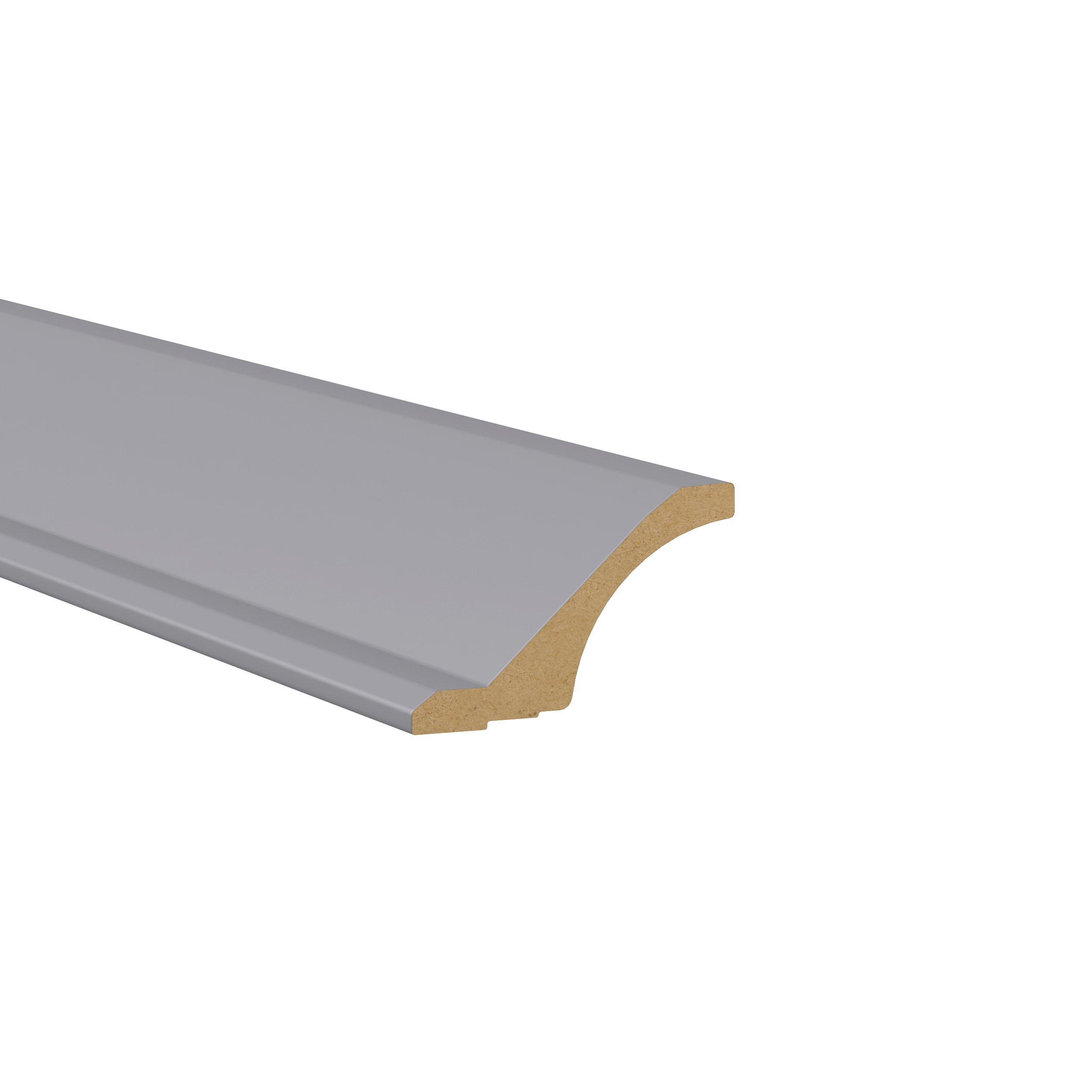 Transform your space with the elegance of Candler wide-rail shaker styles. Both the warm white and slate gray options create a rich transitional backdrop to complement any decor. Crafted from one-piece MDF Studio Design Collection Candler 4.98 x 96in. Painted Slate Gray Cabinet Cove Crown Molding with Cleat is designed to resist hairline cracks while the easy-to-clean finish stands up to stains and moisture. Featuring 5-piece doors and dovetail drawer joints, these cabinets offer durability and elegance. This collection combines style with everyday storage solutions.