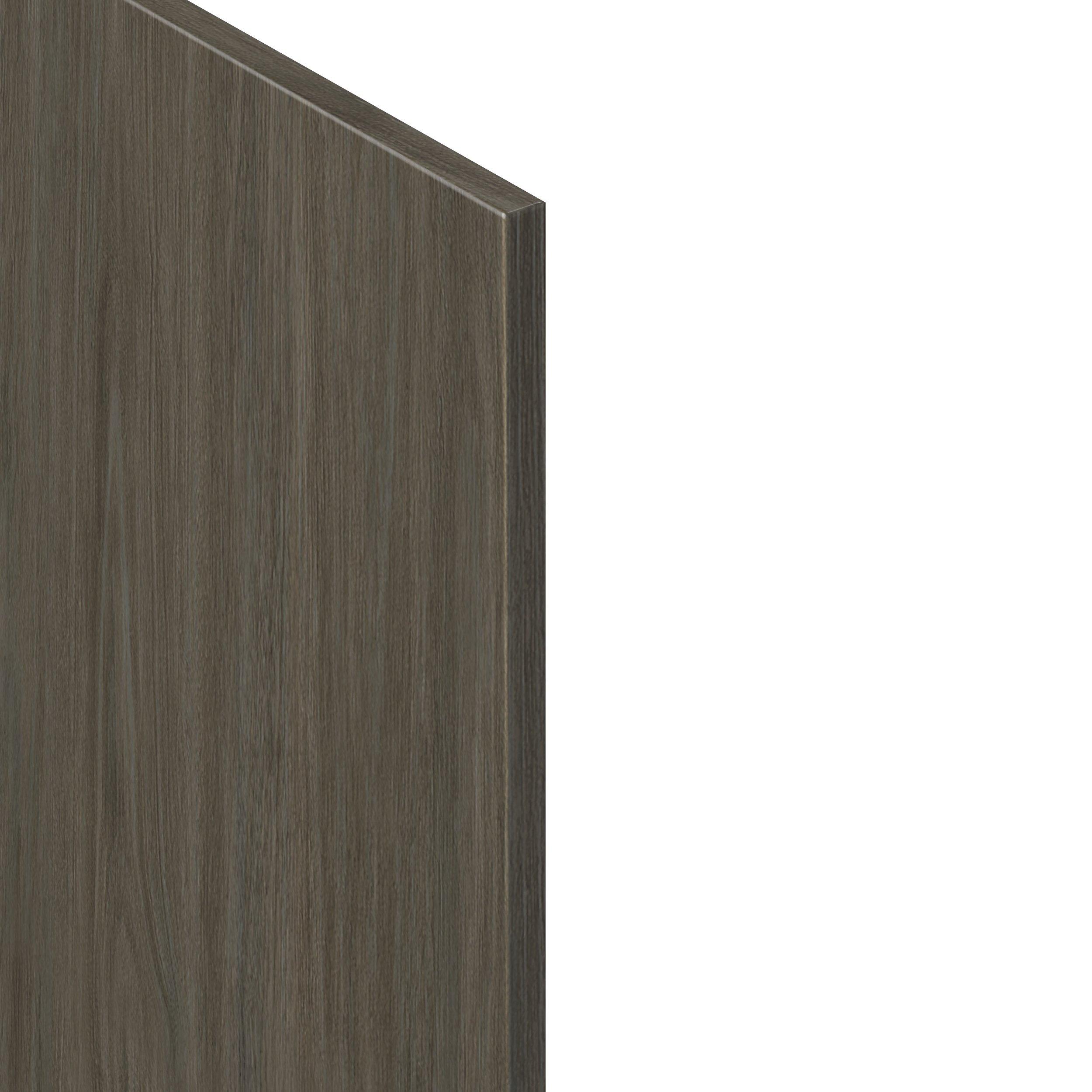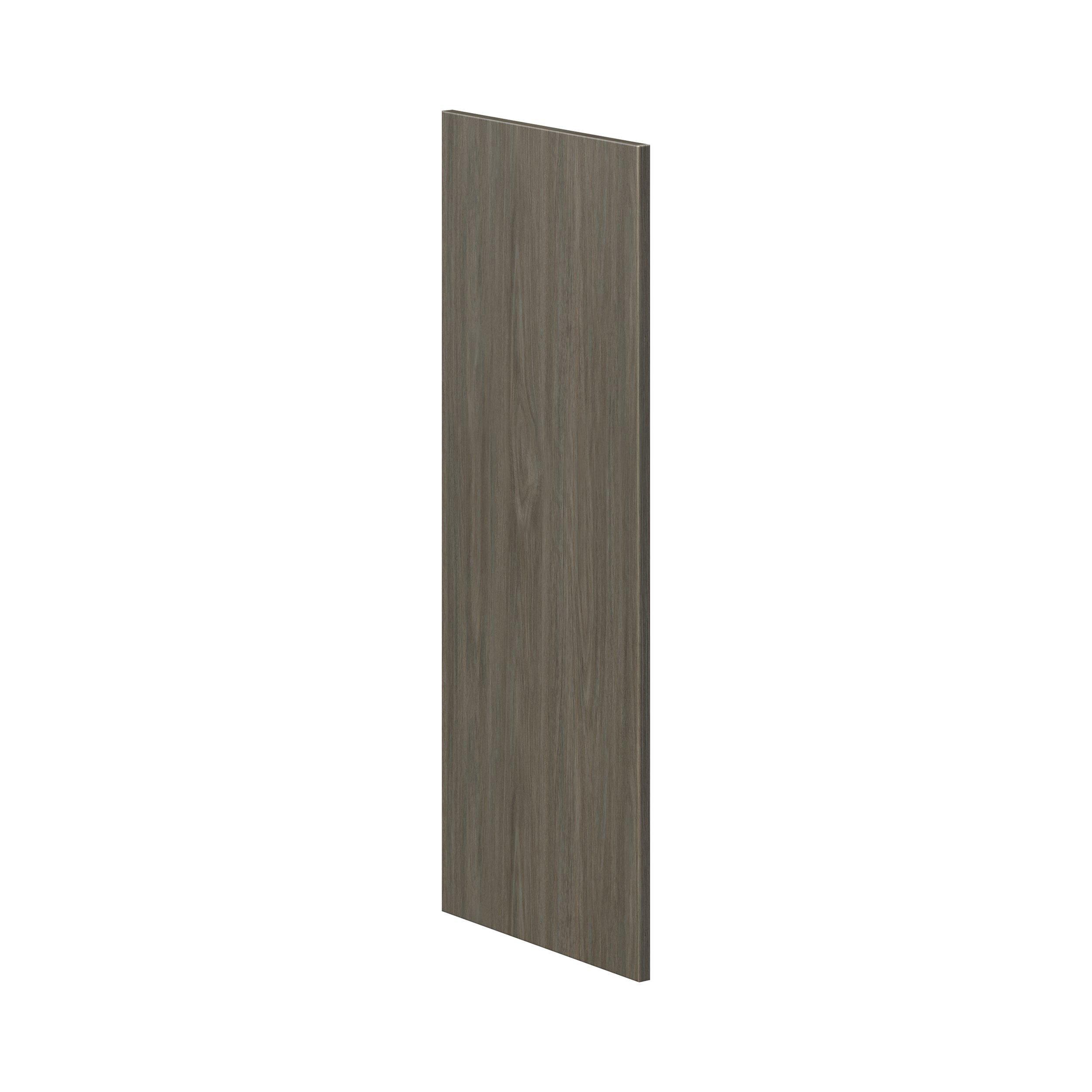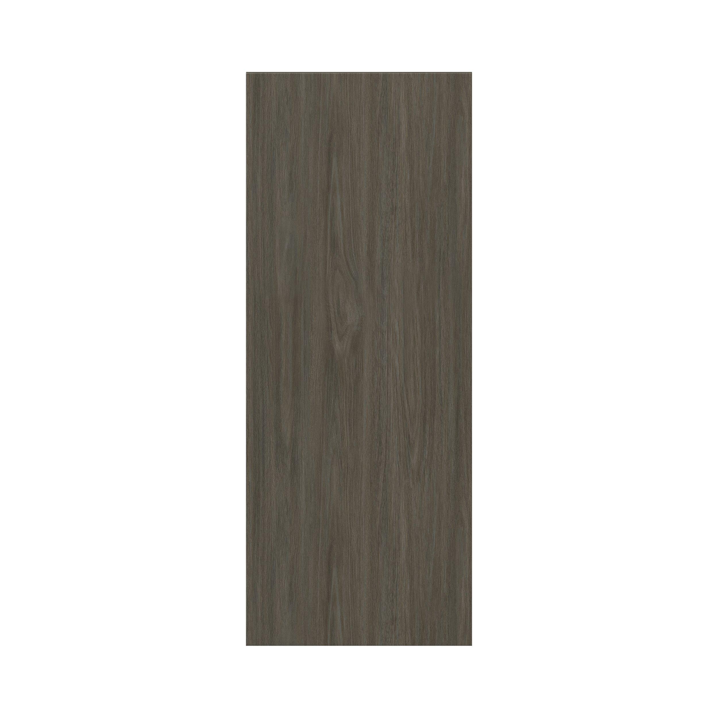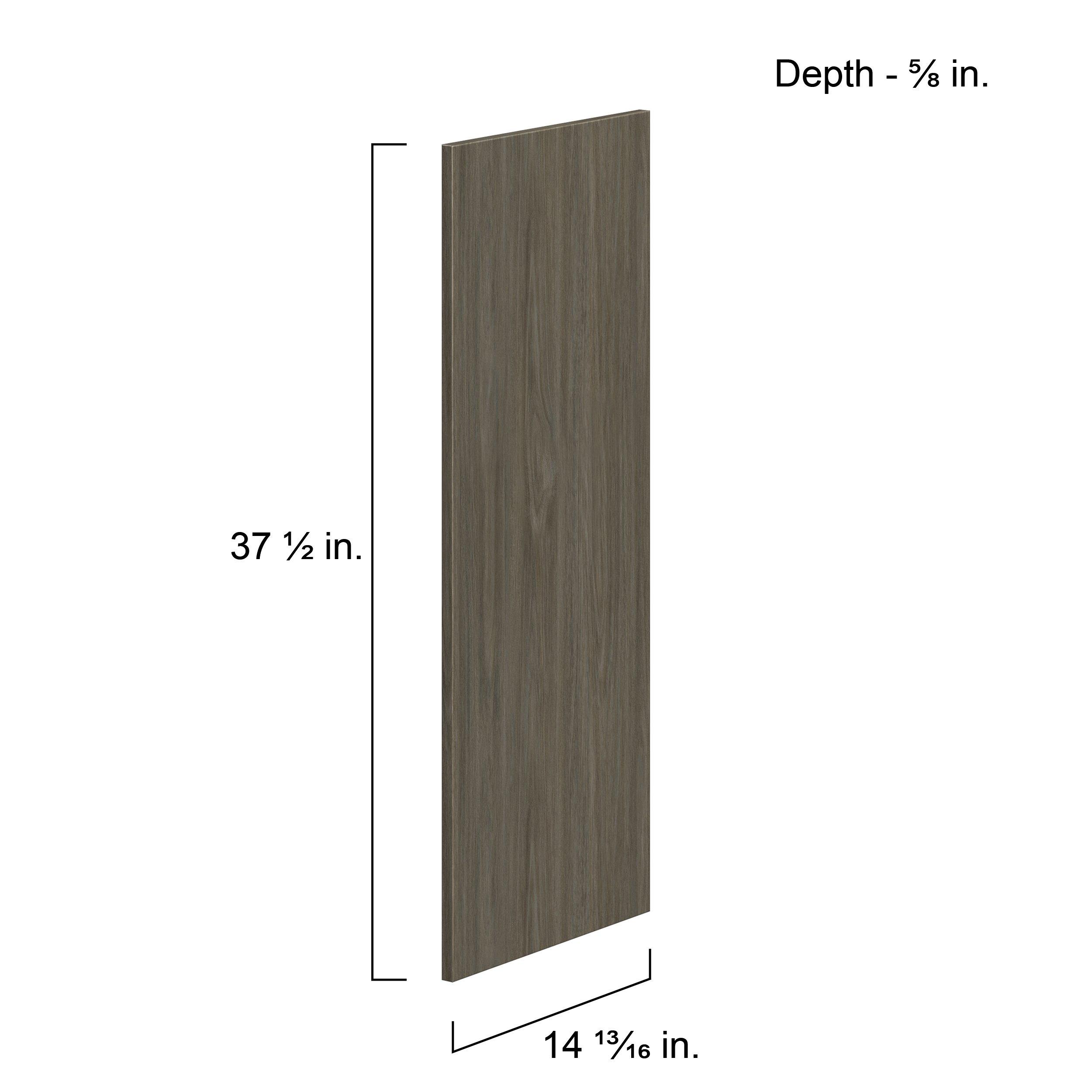 Elevate your project with the contemporary charm of Glenwood slab-style cabinets. Available in desert Mojavi oak and rich burnt walnut finishes, this collection captures the warmth and beauty of natural wood with the practicality of textured melamine. Crafted from one-piece MDF Studio Design Collection Glenwood 14.81x 37.5in. Burnt Walnut Cabinet End Panel is designed to resist hairline cracks while the easy-to-clean finish stands up to stains and moisture. Featuring 5-piece doors and dovetail drawer joints, these cabinets offer durability and elegance. This collection combines style with everyday storage solutions.