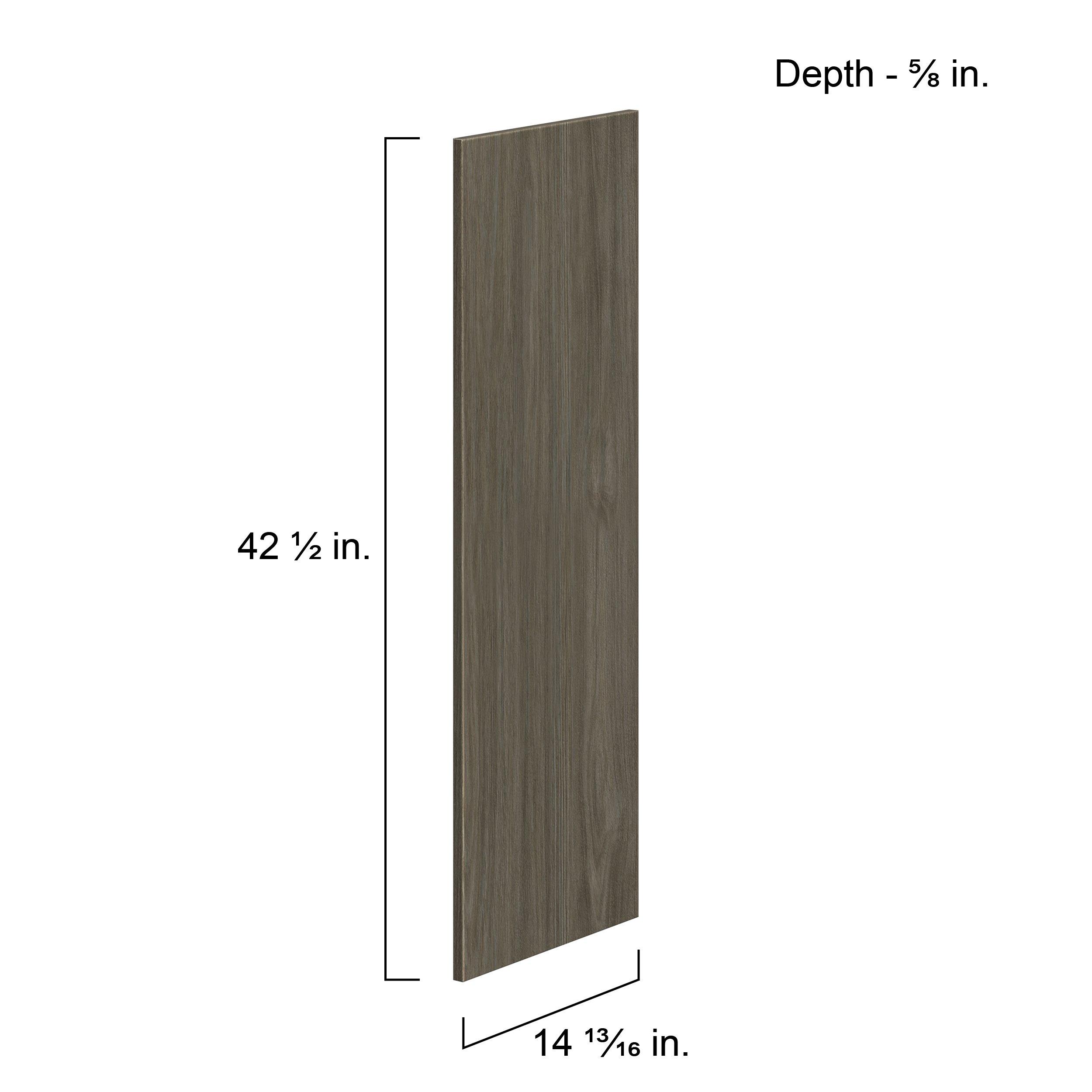 Elevate your project with the contemporary charm of Glenwood slab-style cabinets. Available in desert Mojavi oak and rich burnt walnut finishes, this collection captures the warmth and beauty of natural wood with the practicality of textured melamine. Crafted from one-piece MDF Studio Design Collection Glenwood 14.81x 42.5in. Burnt Walnut Cabinet Filler Strip is designed to resist hairline cracks while the easy-to-clean finish stands up to stains and moisture. Featuring 5-piece doors and dovetail drawer joints, these cabinets offer durability and elegance. This collection combines style with everyday storage solutions.