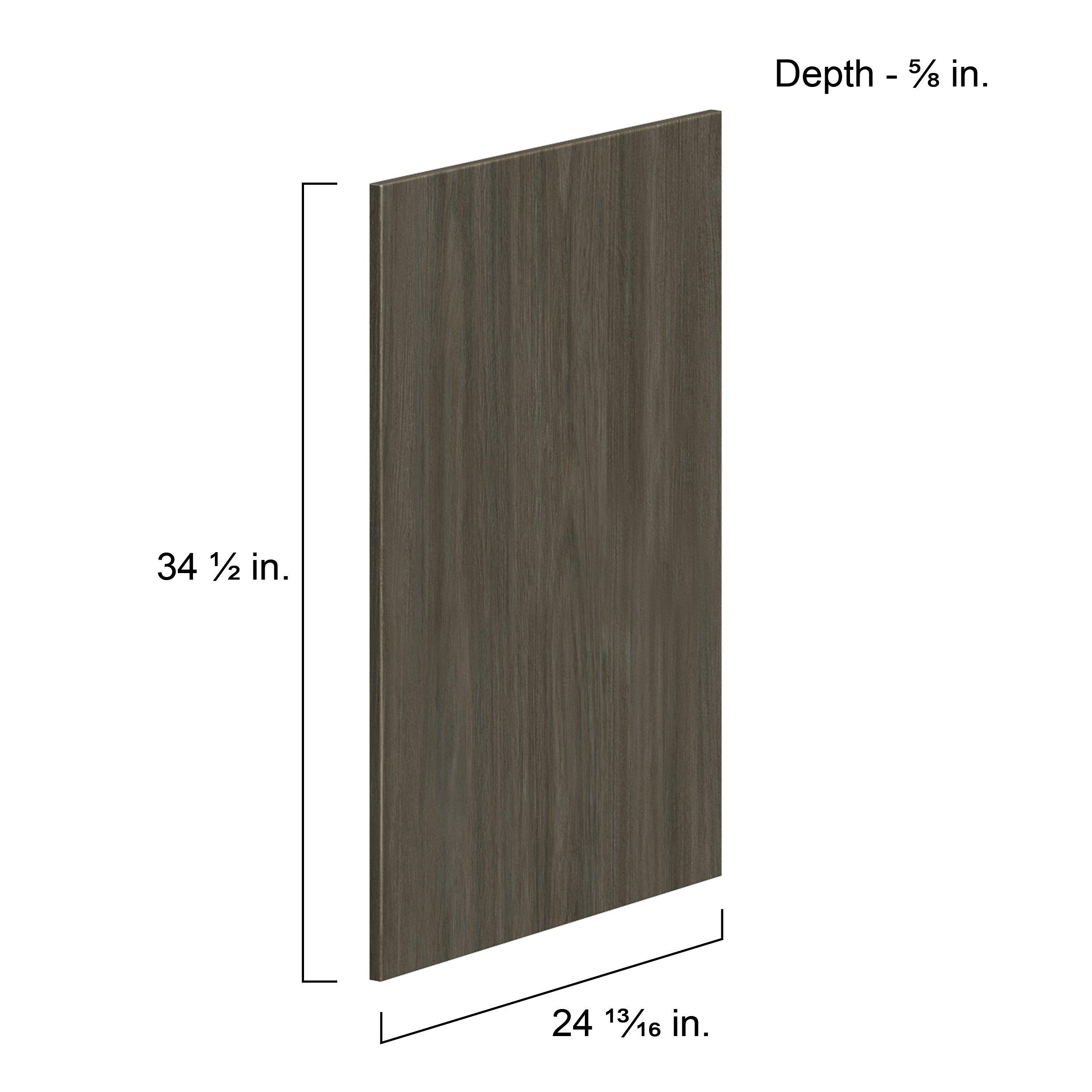 Elevate your project with the contemporary charm of Glenwood slab-style cabinets. Available in desert Mojavi oak and rich burnt walnut finishes, this collection captures the warmth and beauty of natural wood with the practicality of textured melamine. Crafted from one-piece MDF Studio Design Collection Glenwood 24.57x 34.5in. Burnt Walnut Cabinet End Panel is designed to resist hairline cracks while the easy-to-clean finish stands up to stains and moisture. Featuring 5-piece doors and dovetail drawer joints, these cabinets offer durability and elegance. This collection combines style with everyday storage solutions.