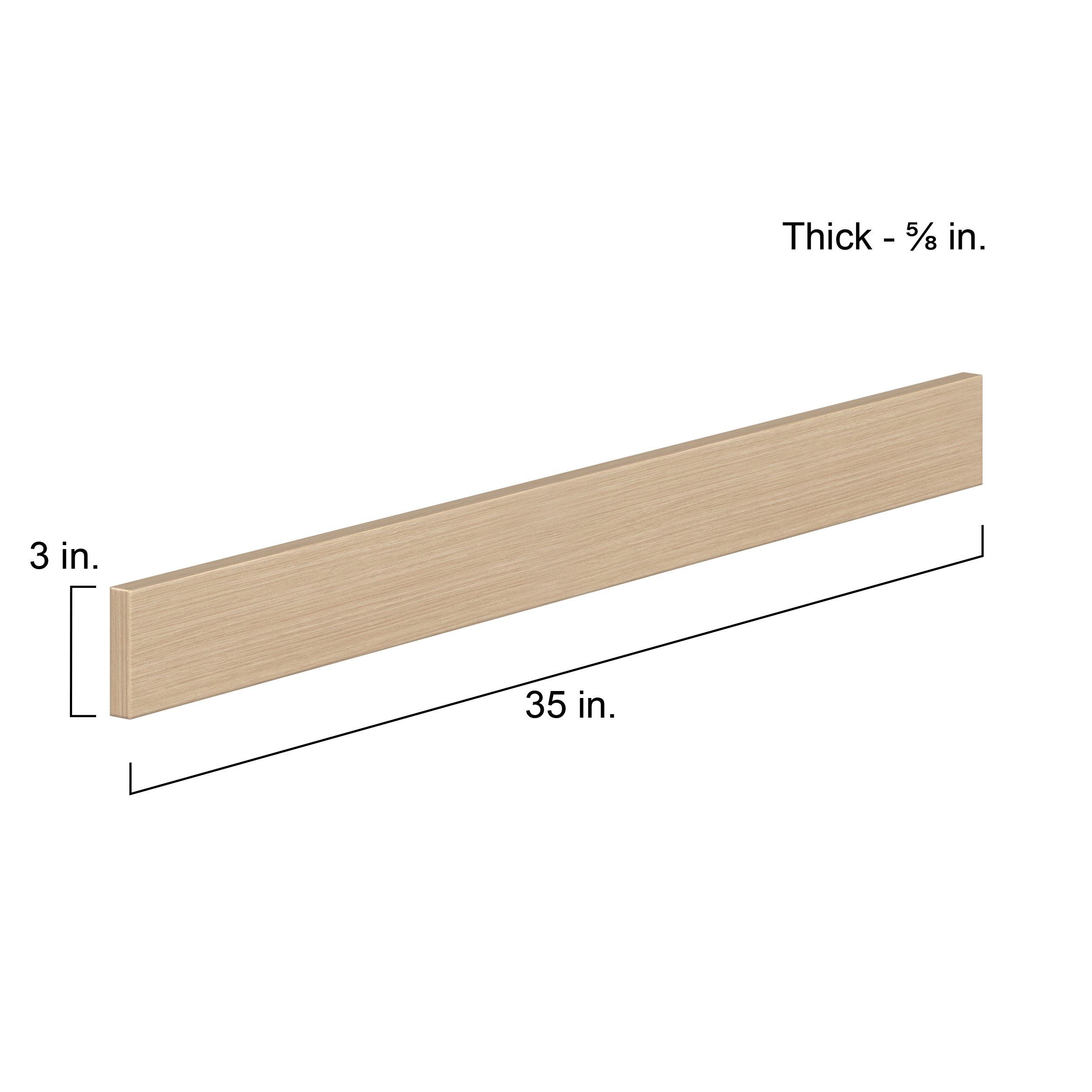 Elevate your project with the contemporary charm of Glenwood slab-style cabinets. Available in desert Mojavi oak and rich burnt walnut finishes, this collection captures the warmth and beauty of natural wood with the practicality of textured melamine. Crafted from one-piece MDF Studio Design Collection Glenwood 3x 35in. Mojavi Oak Cabinet Filler Strip is designed to resist hairline cracks while the easy-to-clean finish stands up to stains and moisture. Featuring 5-piece doors and dovetail drawer joints, these cabinets offer durability and elegance. This collection combines style with everyday storage solutions.