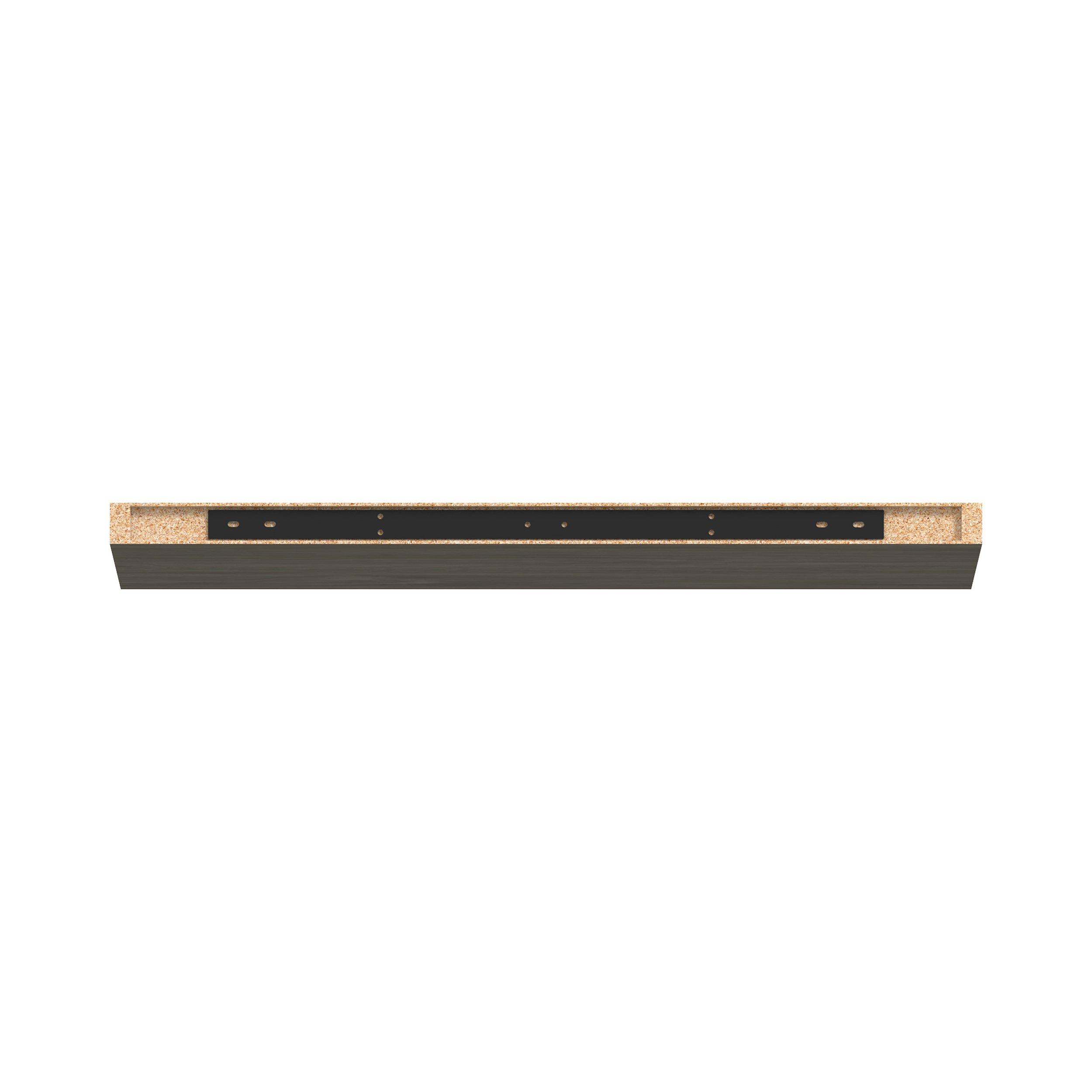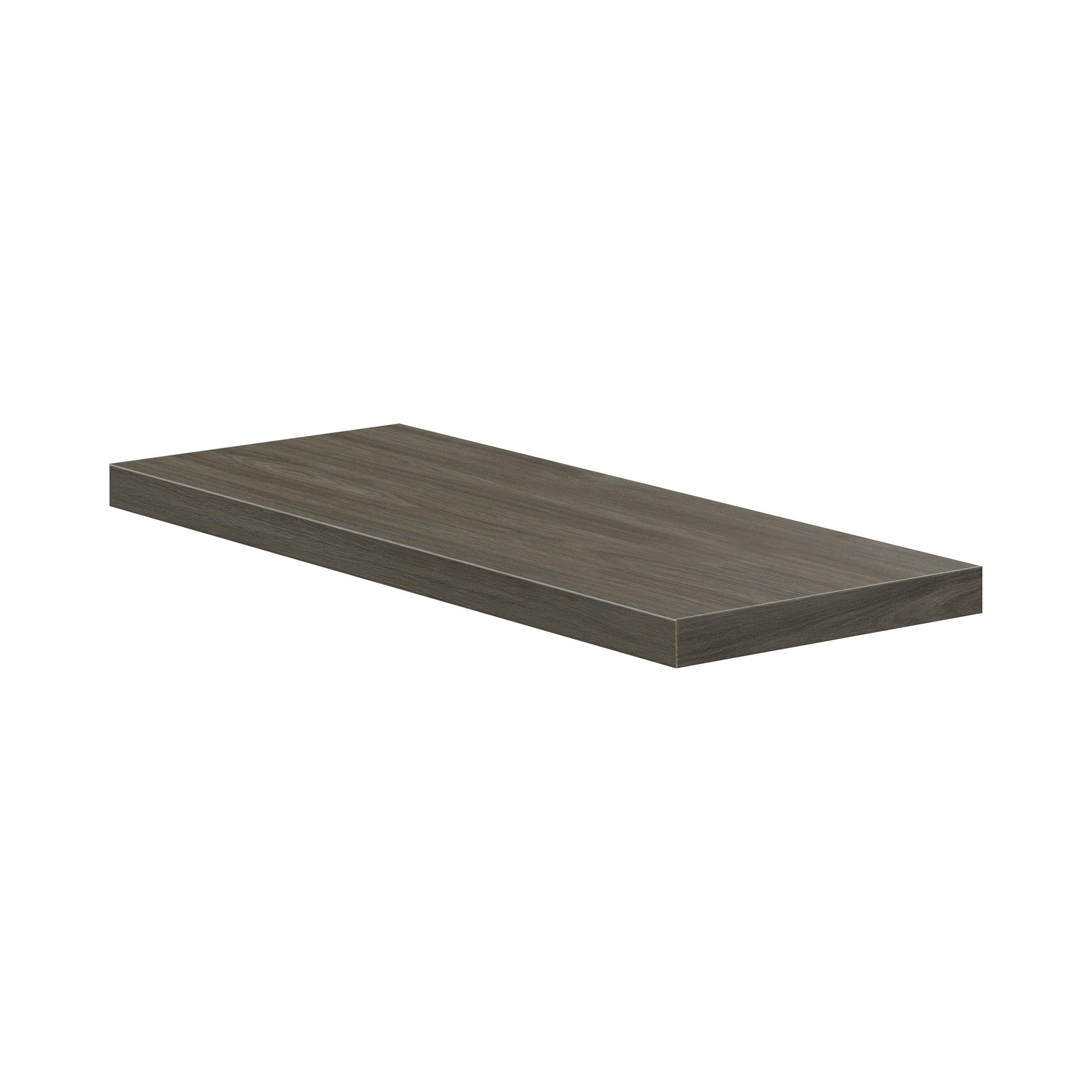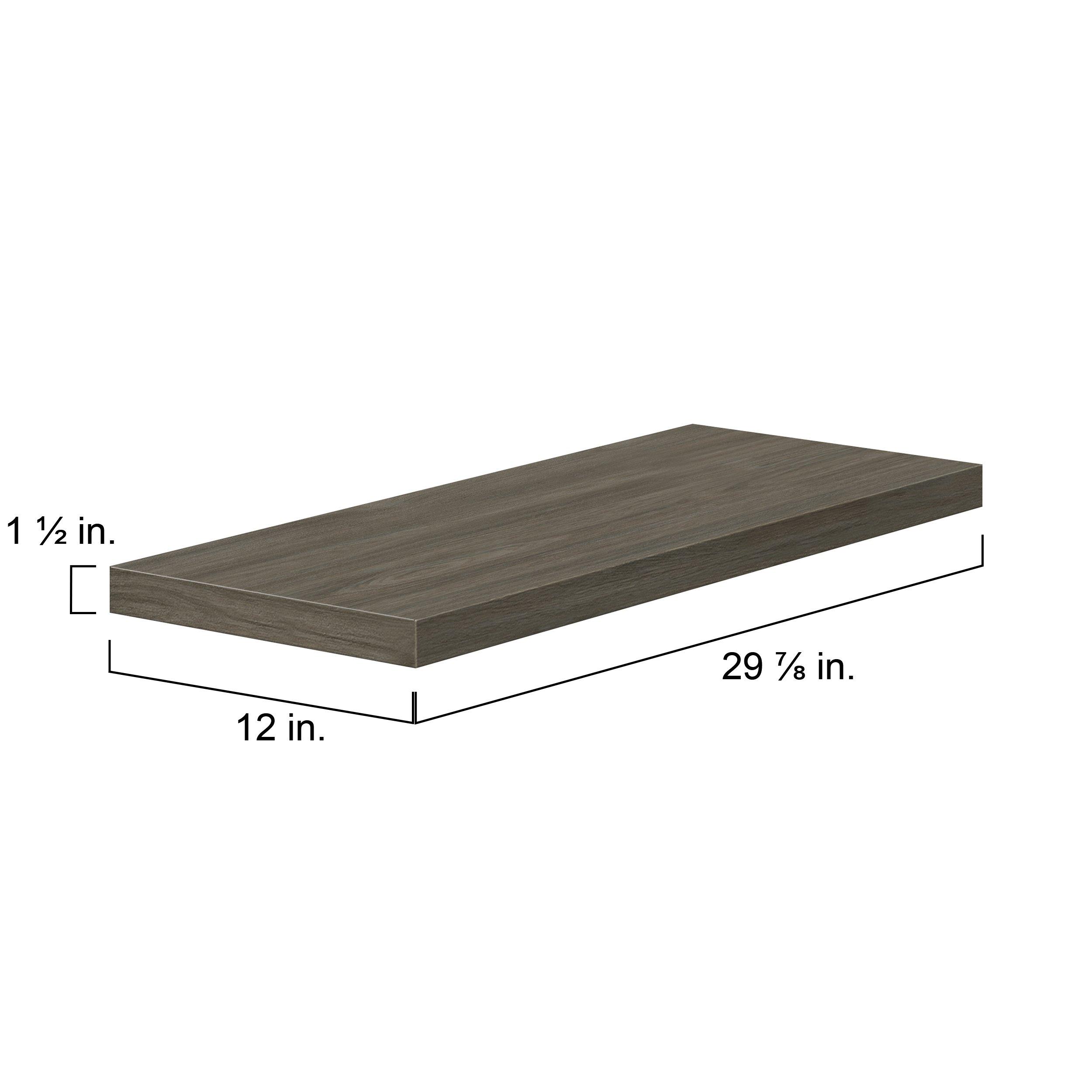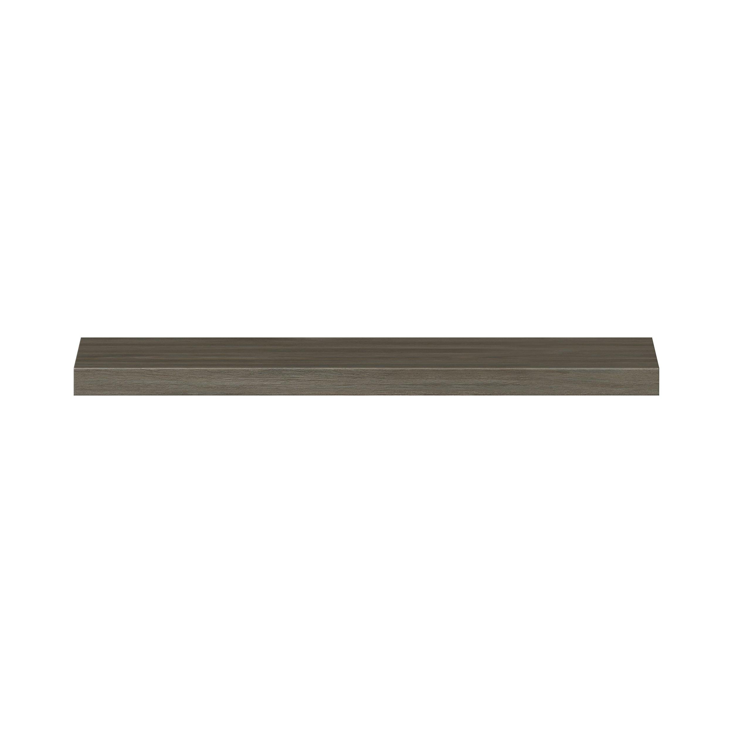 Elevate your project with the contemporary charm of Glenwood slab-style cabinets. Available in desert Mojavi oak and rich burnt walnut finishes, this collection captures the warmth and beauty of natural wood with the practicality of textured melamine. Crafted from one-piece MDF Studio Design Collection Glenwood 29.88x 1.4in. Burnt Walnut Cabinet Floating Shelf is designed to resist hairline cracks while the easy-to-clean finish stands up to stains and moisture. Featuring 5-piece doors and dovetail drawer joints, these cabinets offer durability and elegance. This collection combines style with everyday storage solutions.