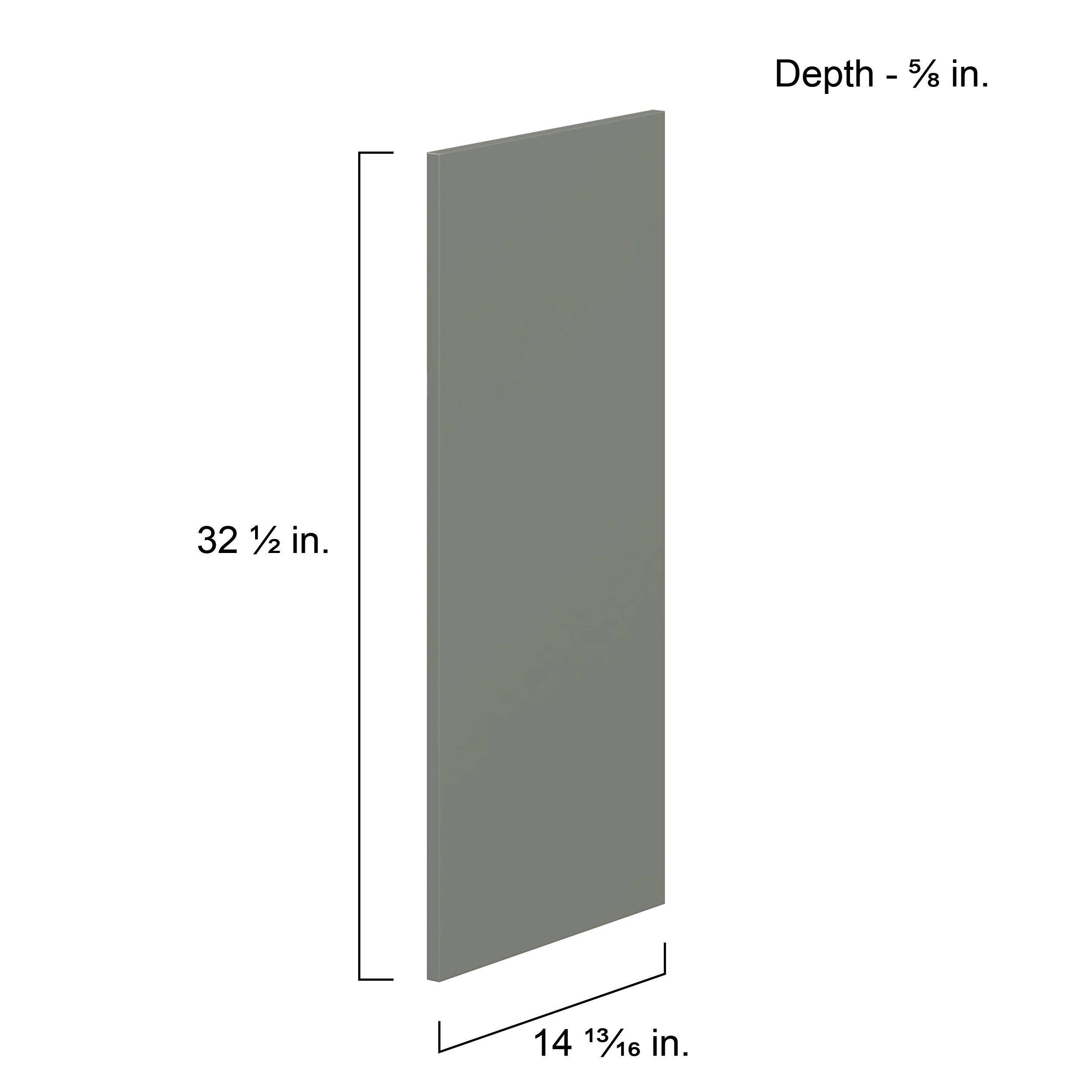 Enjoy a modern twist on a classic with Linden slim shaker cabinets. Available in premium-painted fresh washed linen and earthy moss green finishes, this collection exudes warmth and creates an inviting atmosphere Crafted from one-piece MDF Studio Design Collection Linden 32.5x 14.8in. Painted Moss Green Cabinet End Panel is designed to resist hairline cracks while the easy-to-clean finish stands up to stains and moisture. Featuring 5-piece doors and dovetail drawer joints, these cabinets offer durability and elegance. This collection combines style with everyday storage solutions.
