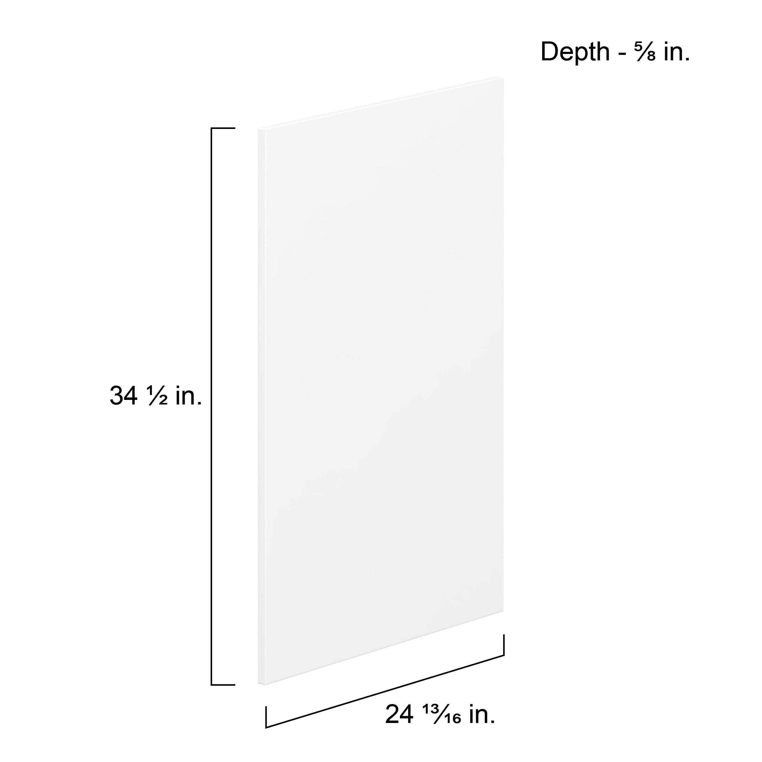 Make a statement with Peachtree premium painted shaker-inspired cabinets, offering both style and durability for years to come. Available in classic bright white and rich midnight blue, this collection is designed to fit seamlessly into both modern and transitional interiors. Crafted from one-piece MDF Studio Design Collection Peachtree 24.57x 34.5in. Painted Bright White Cabinet End Panel is designed to resist hairline cracks while the easy-to-clean finish stands up to stains and moisture. Featuring 5-piece doors and dovetail drawer joints, these cabinets offer durability and elegance. This collection combines style with everyday storage solutions.