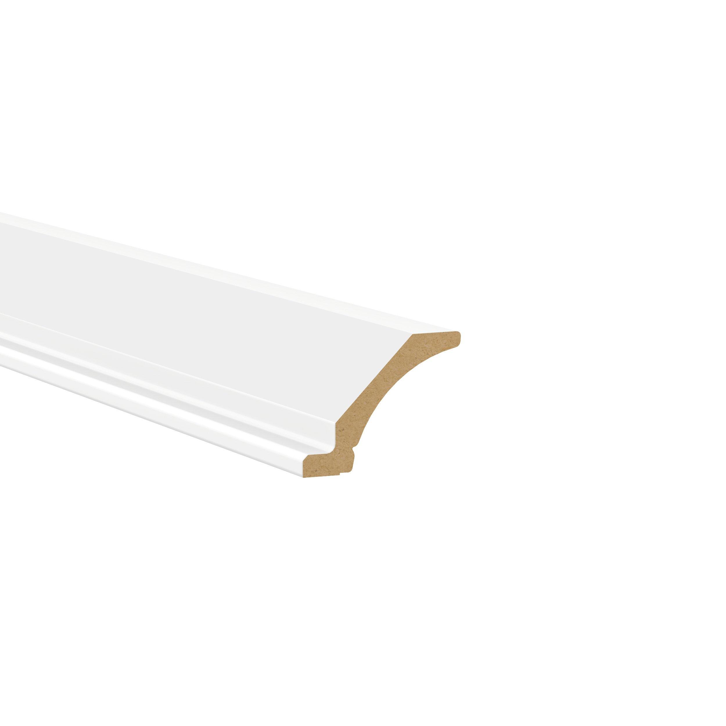 Make a statement with Peachtree premium painted shaker-inspired cabinets, offering both style and durability for years to come. Available in classic bright white and rich midnight blue, this collection is designed to fit seamlessly into both modern and transitional interiors. Crafted from one-piece MDF Studio Design Collection Peachtree 4.98x 96in. Painted Bright White Cabinet Cove Crown Molding with Cleat is designed to resist hairline cracks while the easy-to-clean finish stands up to stains and moisture. Featuring 5-piece doors and dovetail drawer joints, these cabinets offer durability and elegance. This collection combines style with everyday storage solutions.