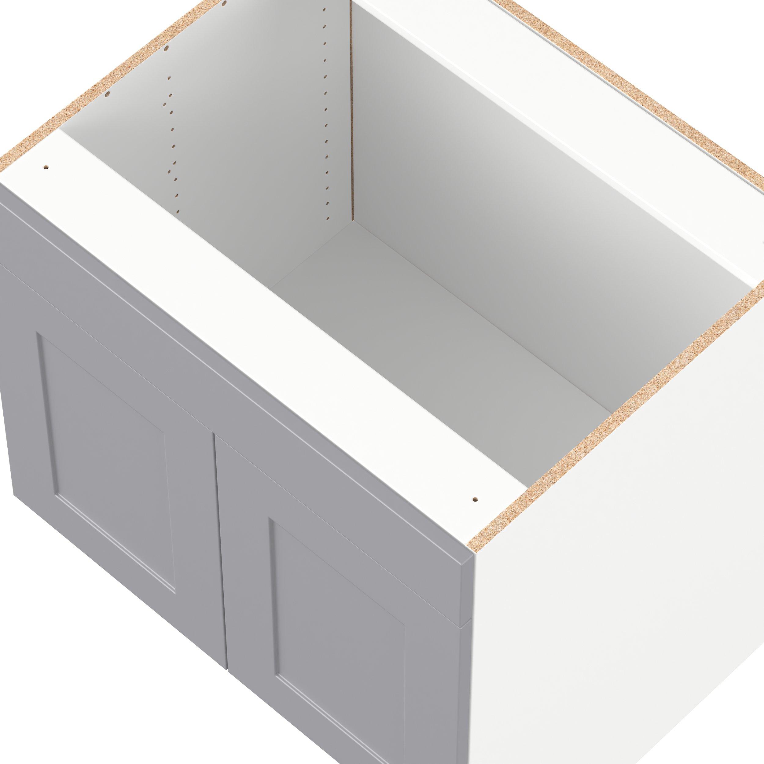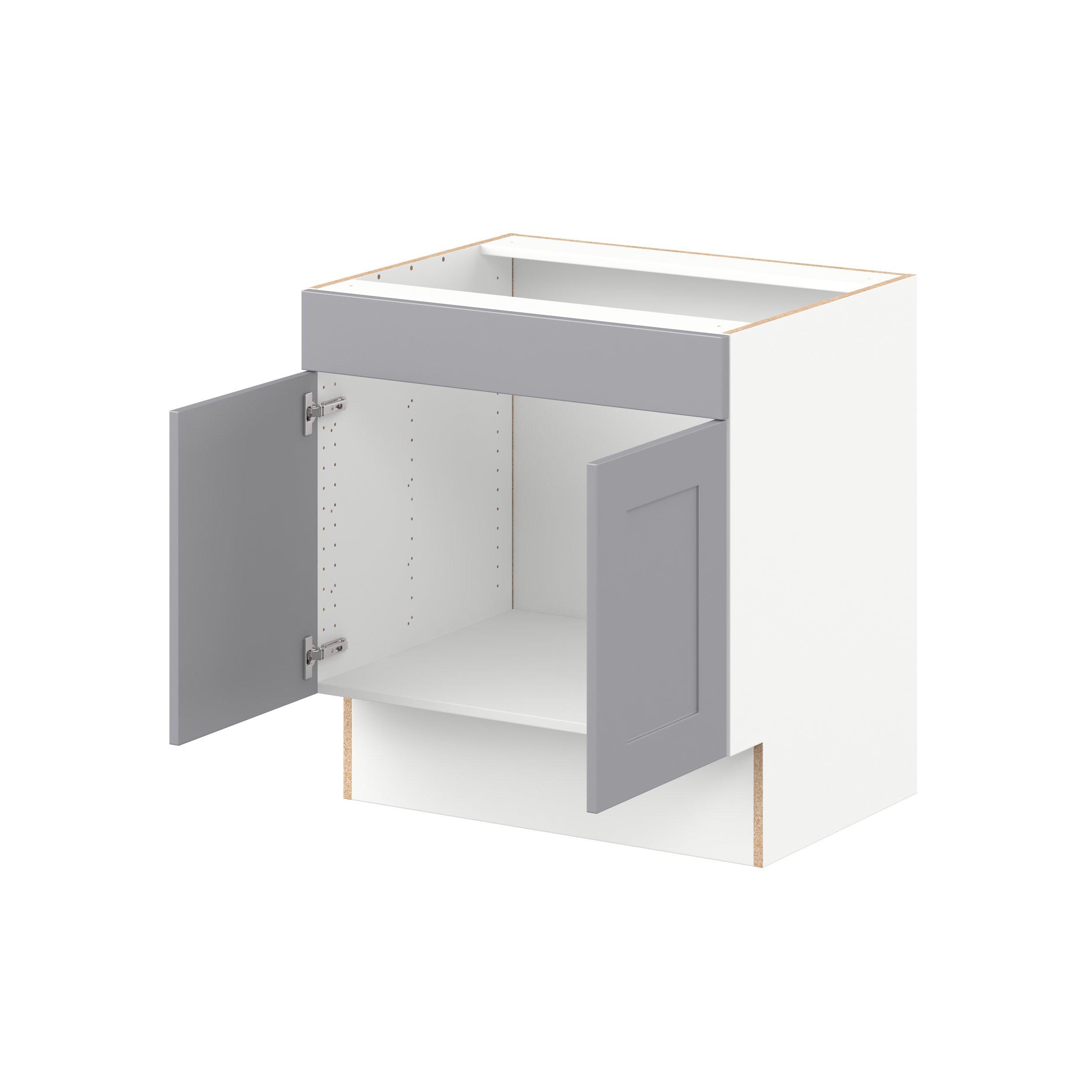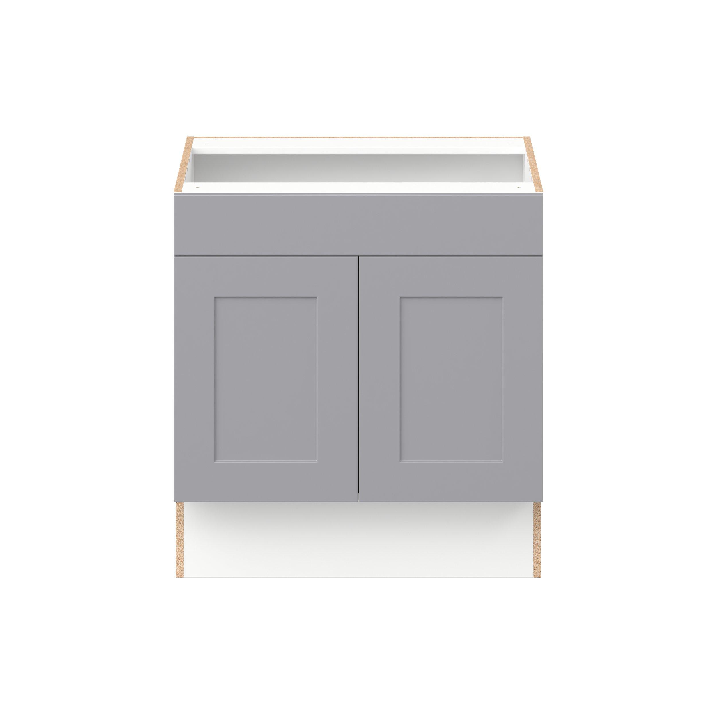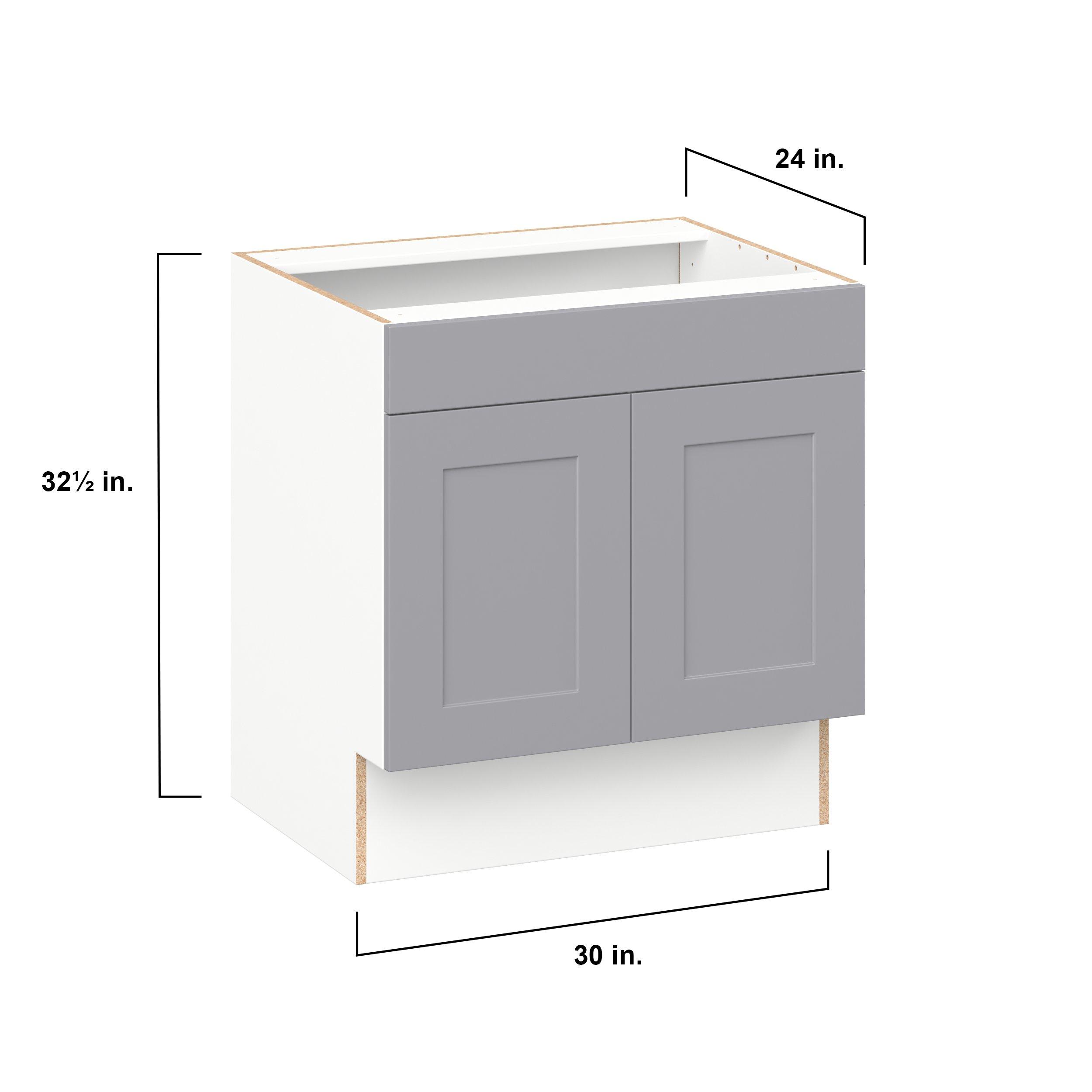 Transform your space with the elegance of Candler wide-rail shaker styles. Both the warm white and slate gray options create a rich transitional backdrop to complement any decor. Crafted from one-piece MDF Studio Design Collection Candler 30 in. Painted Slate Gray Sink Base Cabinet with False Front - ADA is designed to resist hairline cracks while the easy-to-clean finish stands up to stains and moisture. Featuring 5-piece doors and dovetail drawer joints, these cabinets offer durability and elegance. This collection combines style with everyday storage solutions.