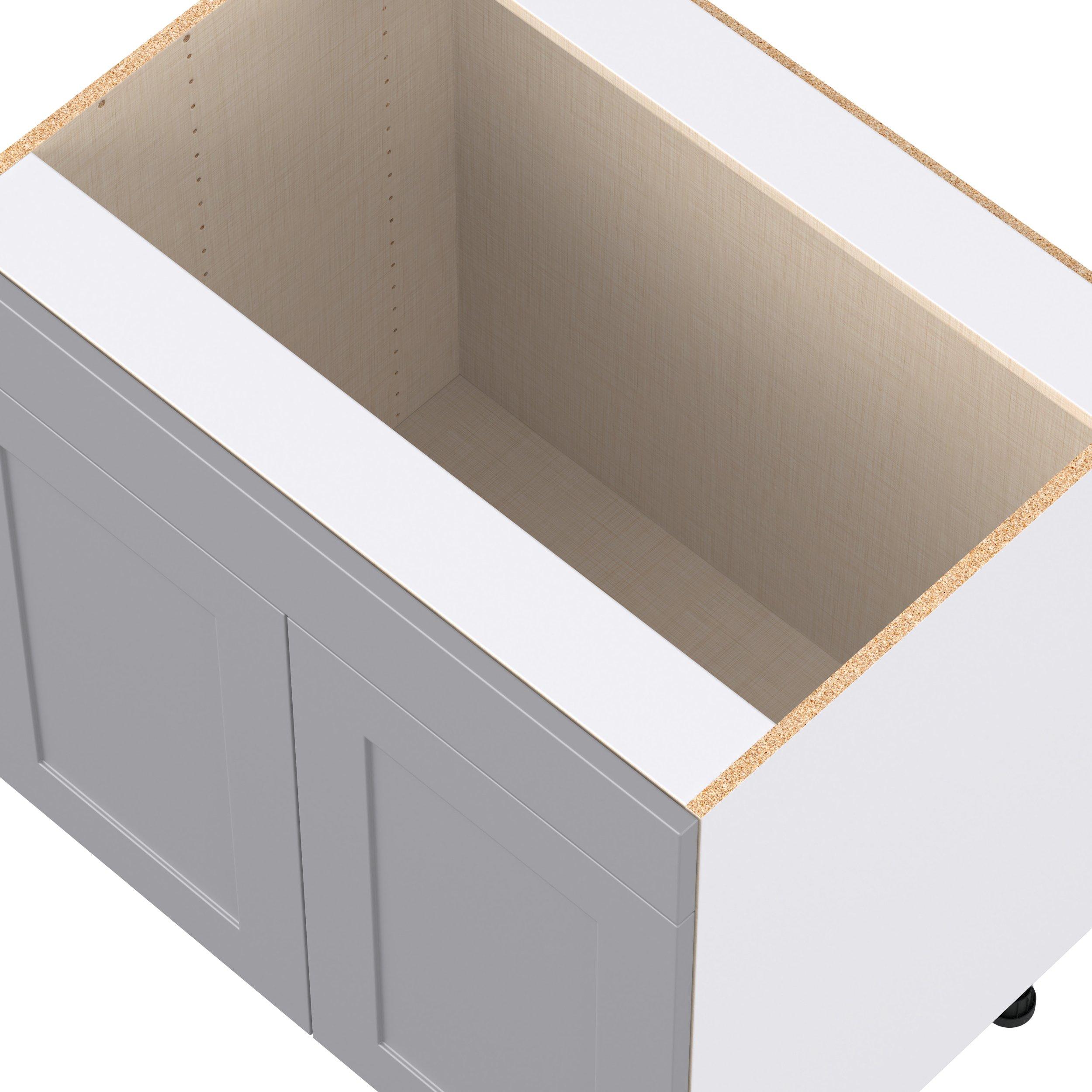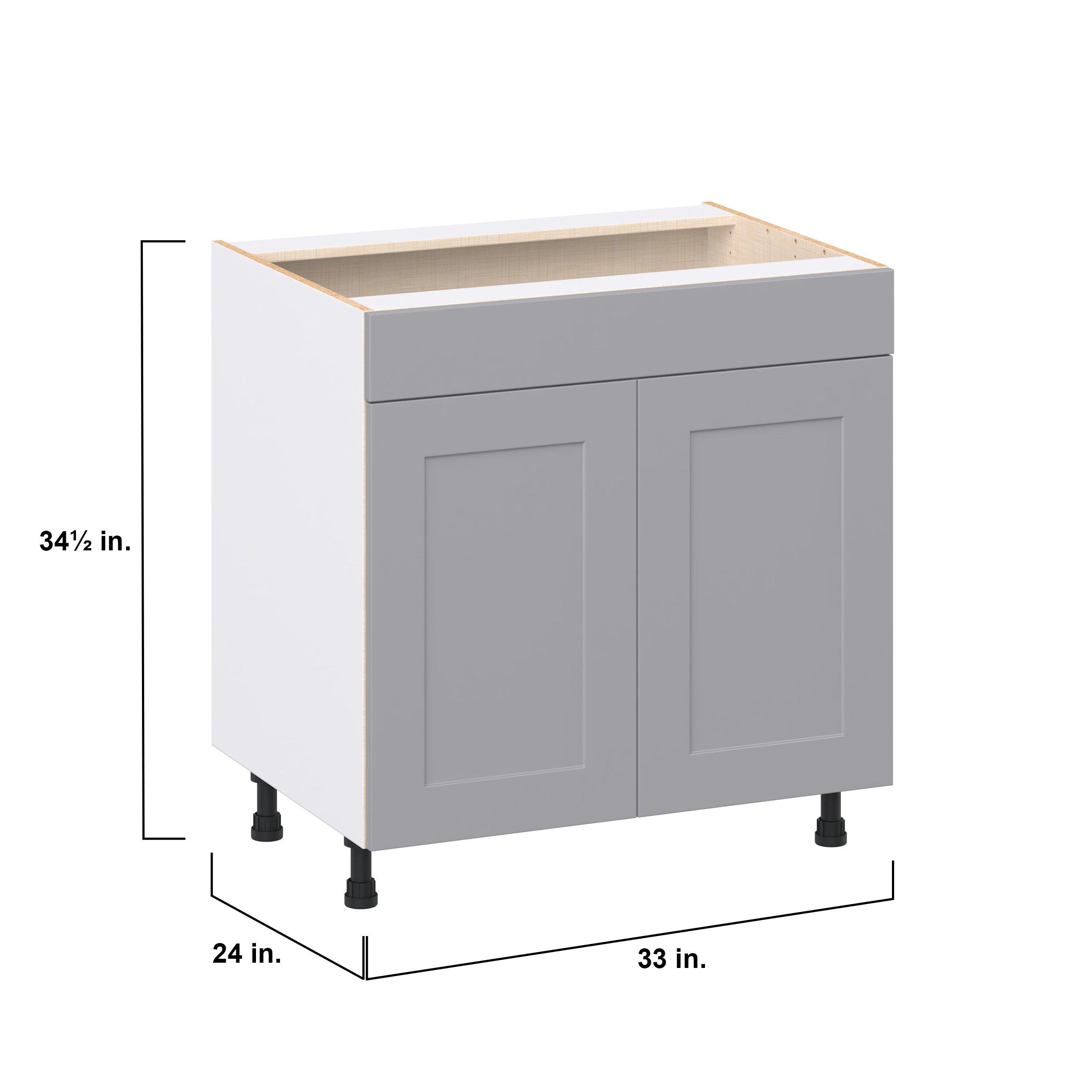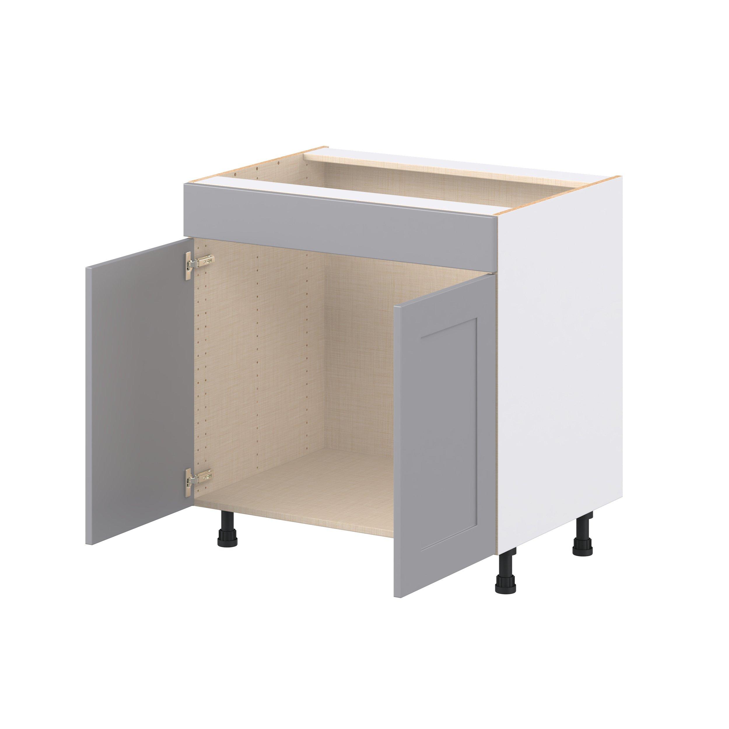 Transform your space with the elegance of Candler wide-rail shaker styles. Both the warm white and slate gray options create a rich transitional backdrop to complement any decor. Crafted from one-piece MDF Studio Design Collection Candler 33 in. Painted Slate Gray Sink Base Cabinet with False Front is designed to resist hairline cracks while the easy-to-clean finish stands up to stains and moisture. Featuring 5-piece doors and dovetail drawer joints, these cabinets offer durability and elegance. This collection combines style with everyday storage solutions.