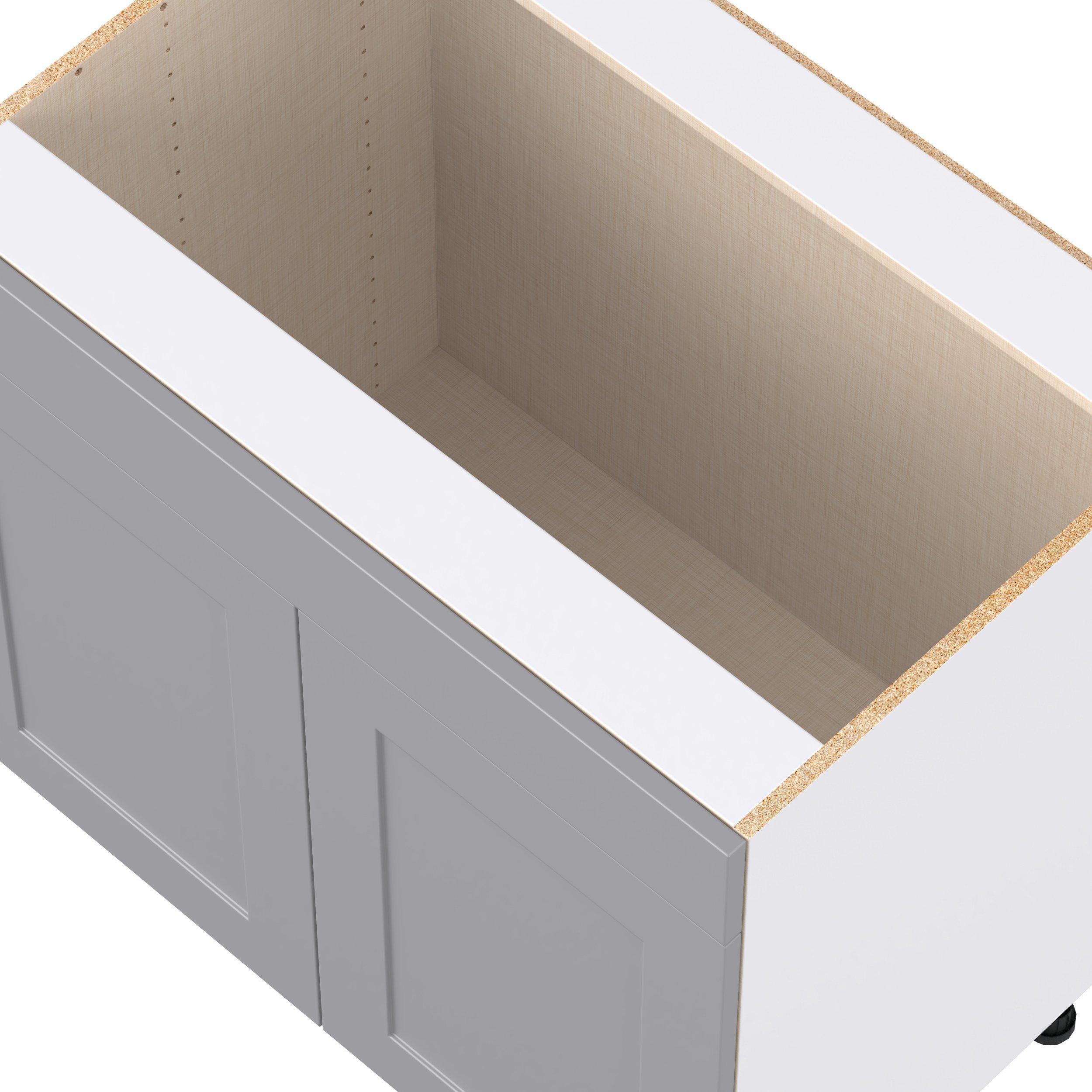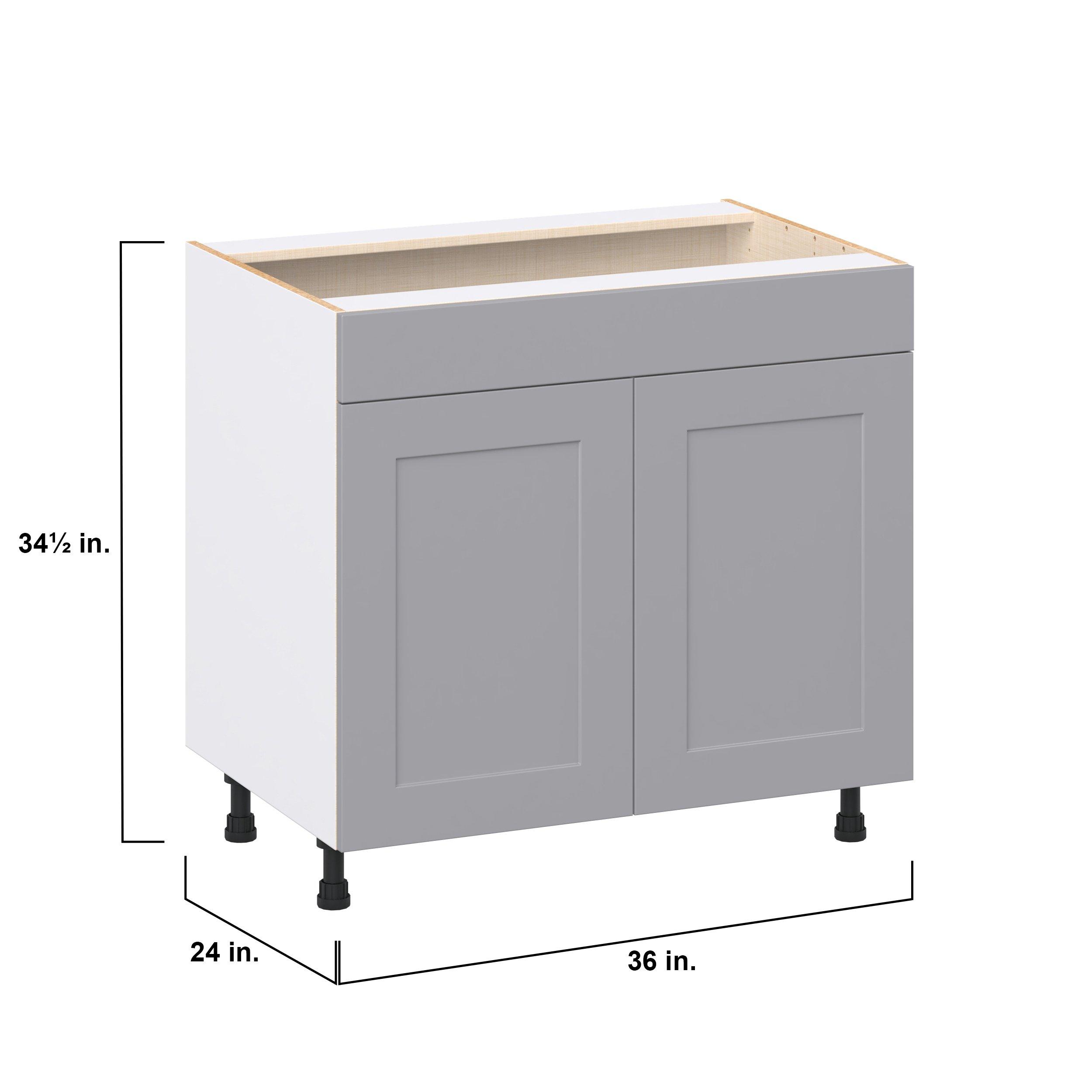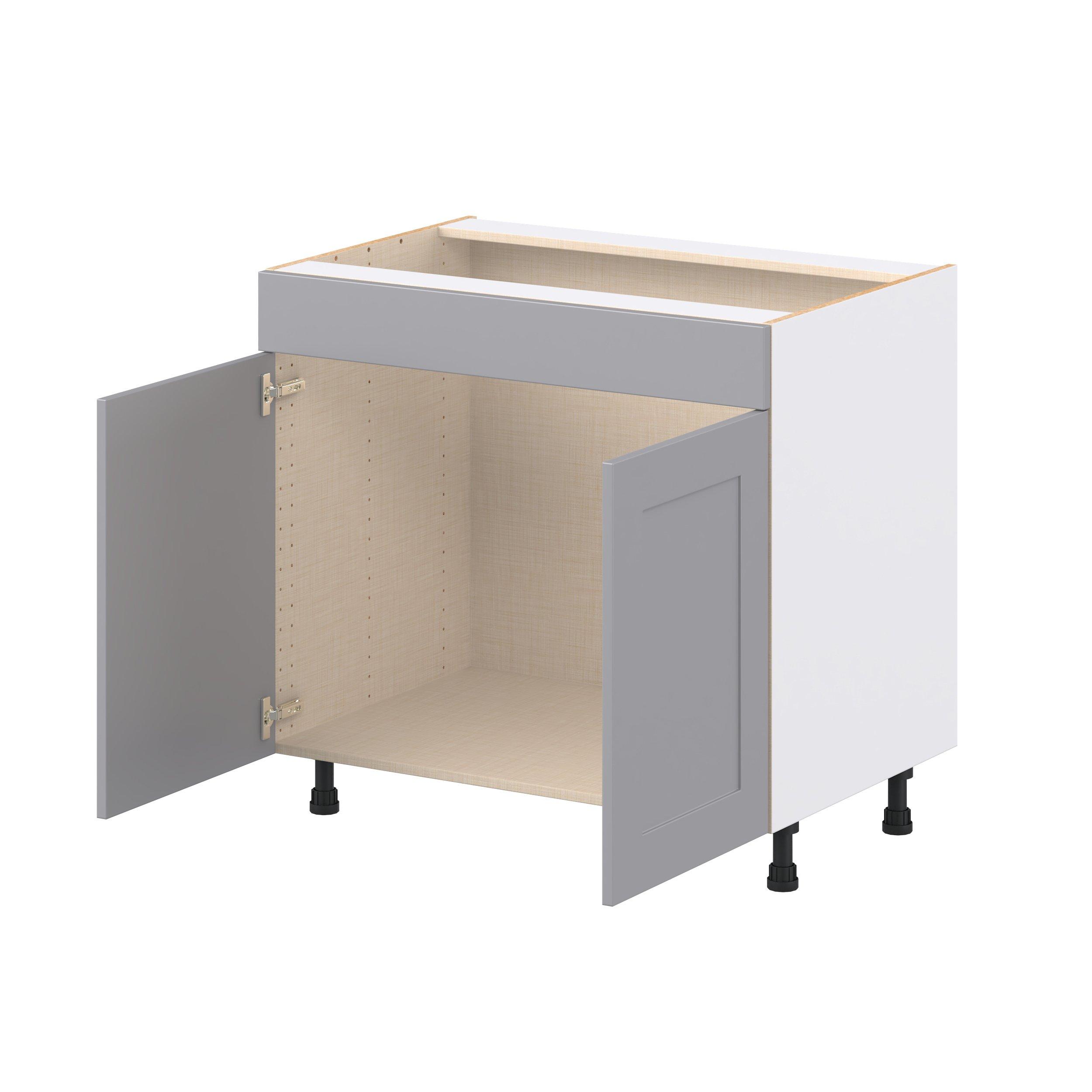 Transform your space with the elegance of Candler wide-rail shaker styles. Both the warm white and slate gray options create a rich transitional backdrop to complement any decor. Crafted from one-piece MDF Studio Design Collection Candler 36 in. Painted Slate Gray Sink Base Cabinet with False Front is designed to resist hairline cracks while the easy-to-clean finish stands up to stains and moisture. Featuring 5-piece doors and dovetail drawer joints, these cabinets offer durability and elegance. This collection combines style with everyday storage solutions.