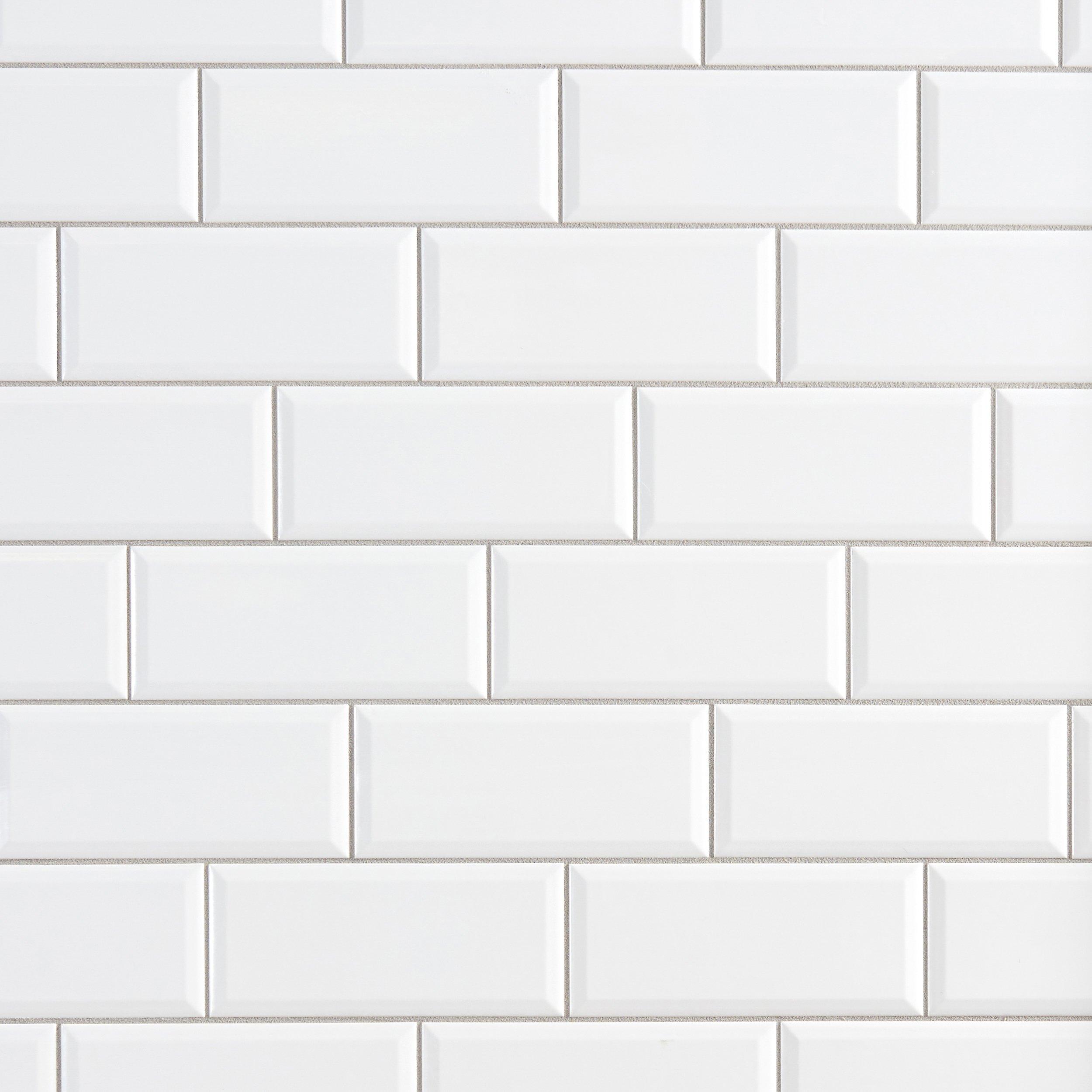 Elevate your space with this contemporary Bright White Ice Beveled Ceramic Wall Tile. Featuring a gorgeous high gloss, it creates a grand piece perfect for walls in a living room, dining room, bathroom or backsplash.