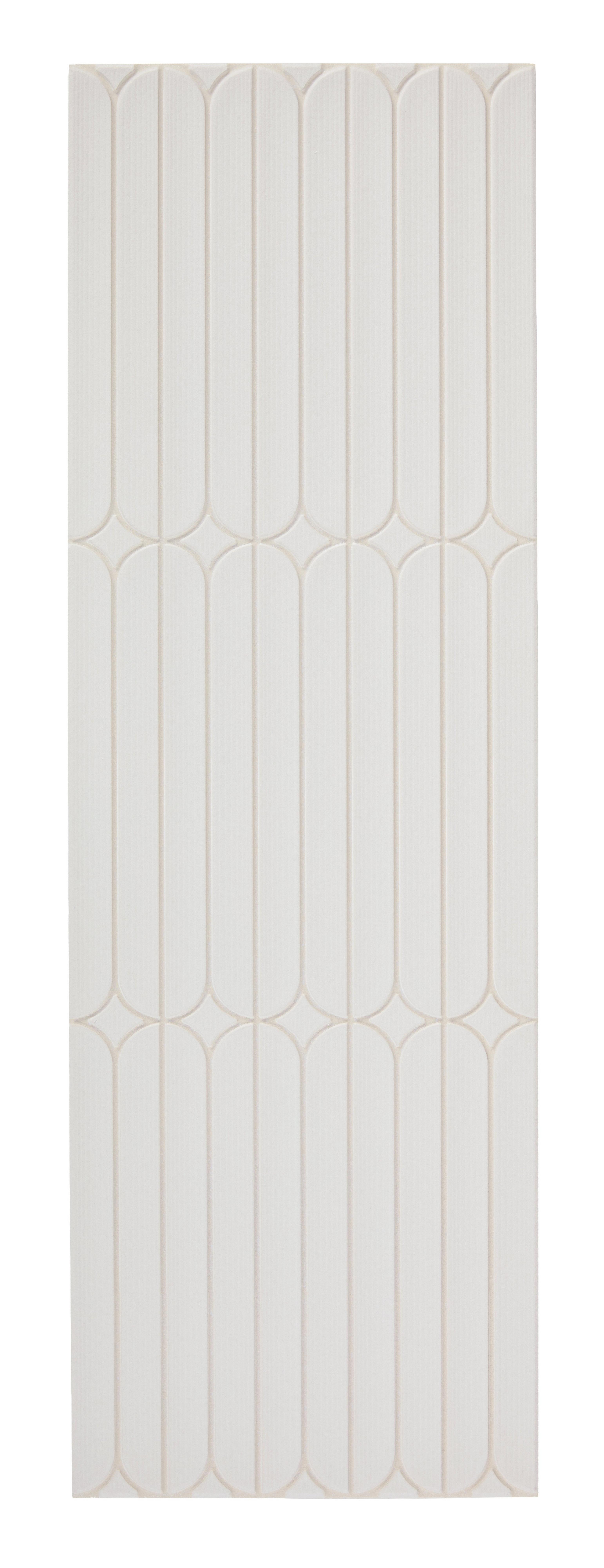 Midcentury Blanc Ceramic Tile combines style and functionality with its 9mm thickness and nominal size of 9 x 29, ensuring durability and easy maintenance.